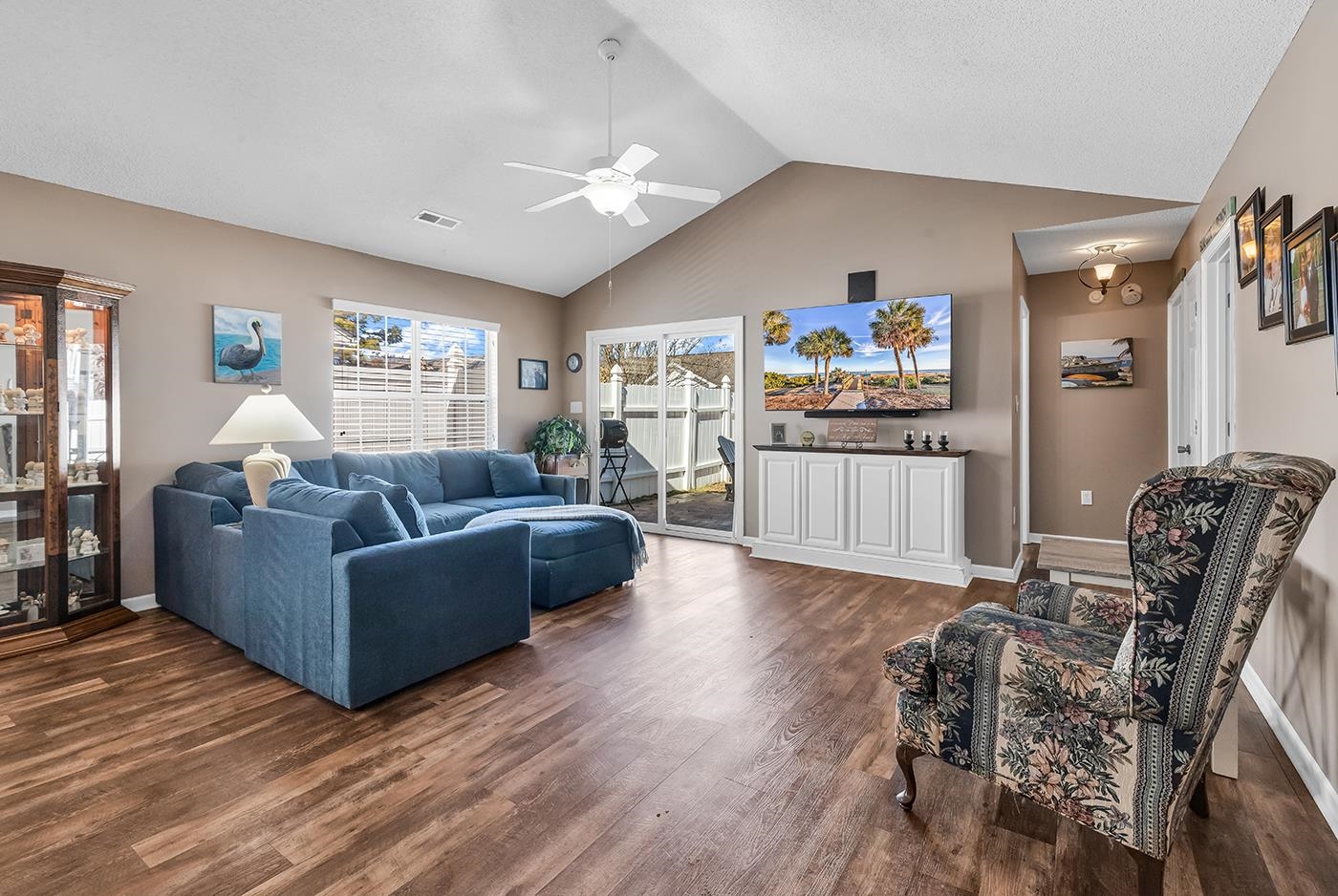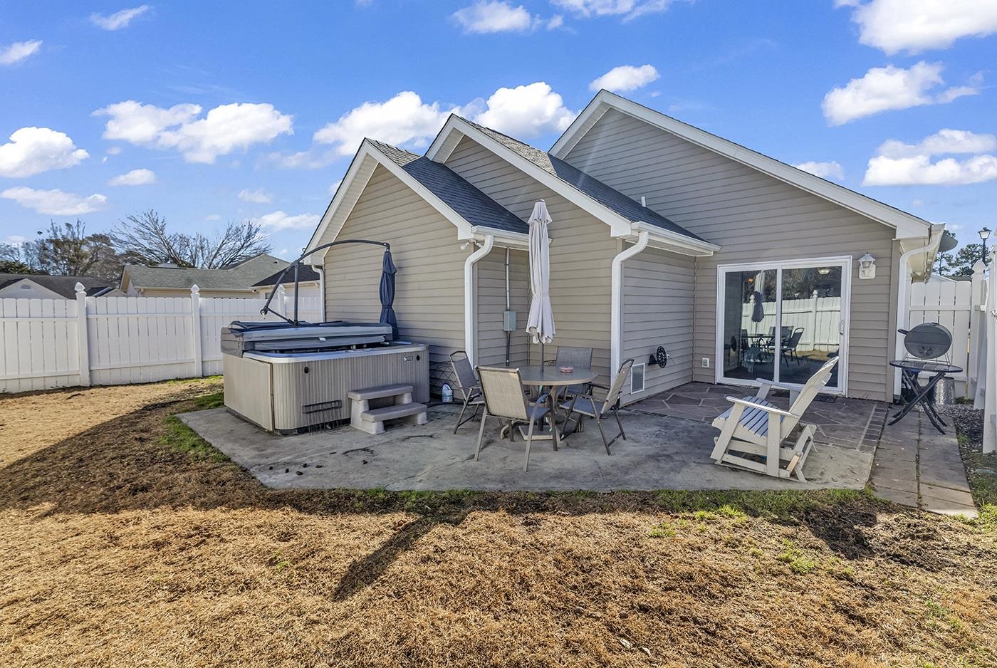 GOLF CART TO THE BEACH from this 3 Bedroom, 2 Bath ranch home that is located less than 2 Miles from the Surfside Beach Pier. Luxury vinyl plank flooring throughout the living areas. Relax on the back patio in your private Hotsprings hot-tub enjoying a privacy-fenced yard in the sub-tropical coastal Carolina weather. Park your car, golf cart & toys in the deep 1-car attached garage. All appliances stay. MOVE IN READY! RUN, don't walk! This is truly a rare opportunity in this price point, this close to the ocean and ""The Family Beach"", where you can enjoy many small town community events and attractions that the Town of Surfside Beach offers. St. James Schools. Low monthly HOA Fees to an ""easygoing"" HOA that includes trash pickup & optional social events. All measurements & sq. footage approximate. Buyer to verify.