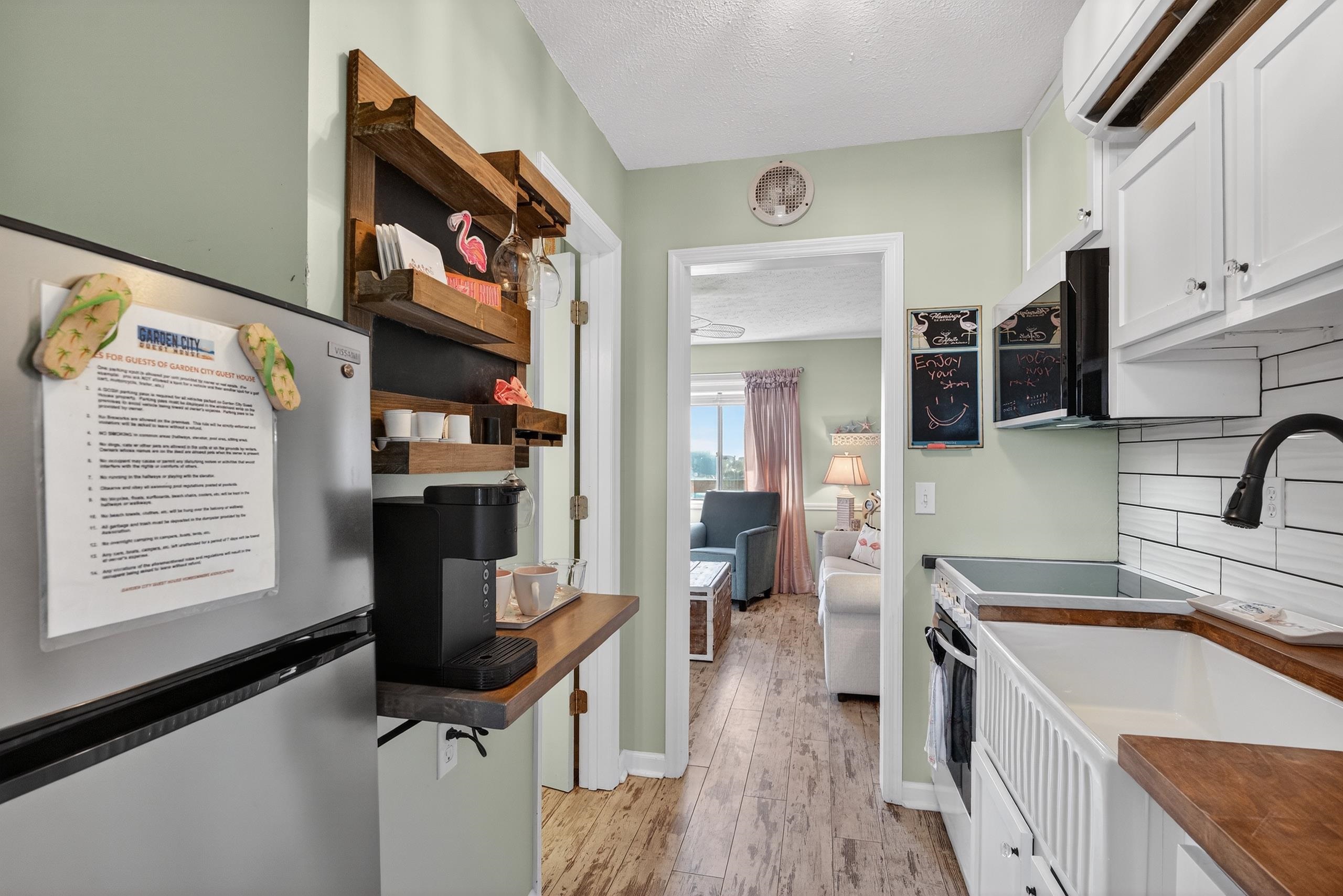 Guest House #313 is a cheerfully updated 1-bedroom, 1-bath condo located in the heart of Garden City Beach. This inviting unit features modern updates throughout, offering a fresh and comfortable coastal retreat. The open living area flows seamlessly into the kitchen, creating a bright and functional space ideal for relaxing or entertaining after a day at the beach. The bedroom features a private balcony, and the updated bathroom complements the units clean, coastal feel. Whether youre searching for a beach retreat, or investment property, this condo offers low-maintenance living in a highly desirable beach community. Conveniently located near shopping, dining, entertainment, and all that Garden City has to offerthis is beach living made easy. Be sure to check out the walking video tour!