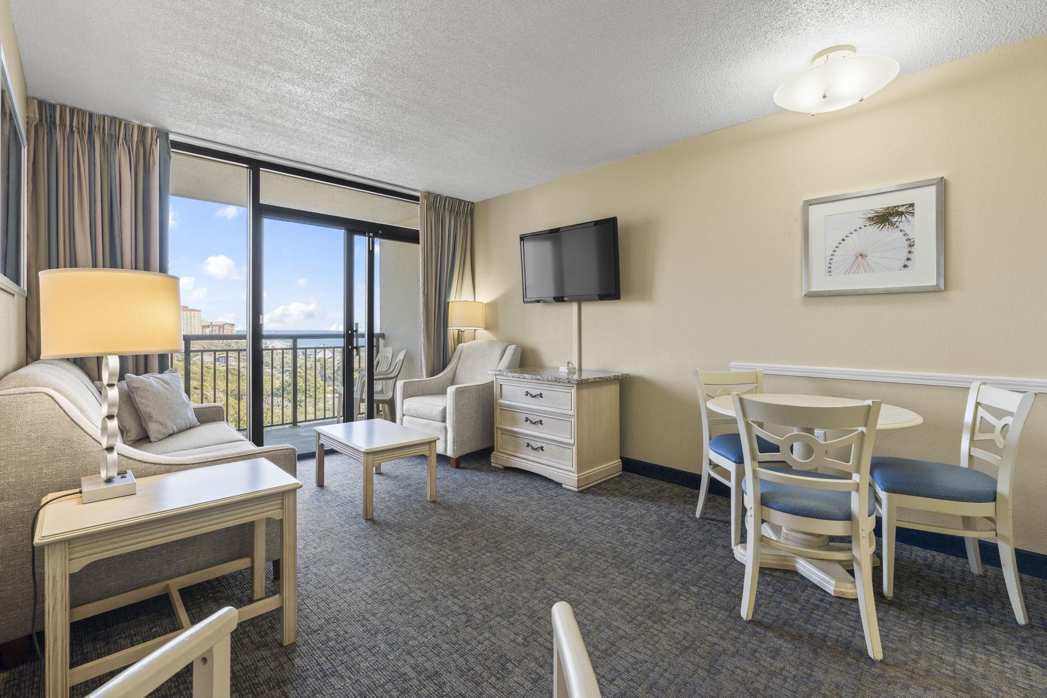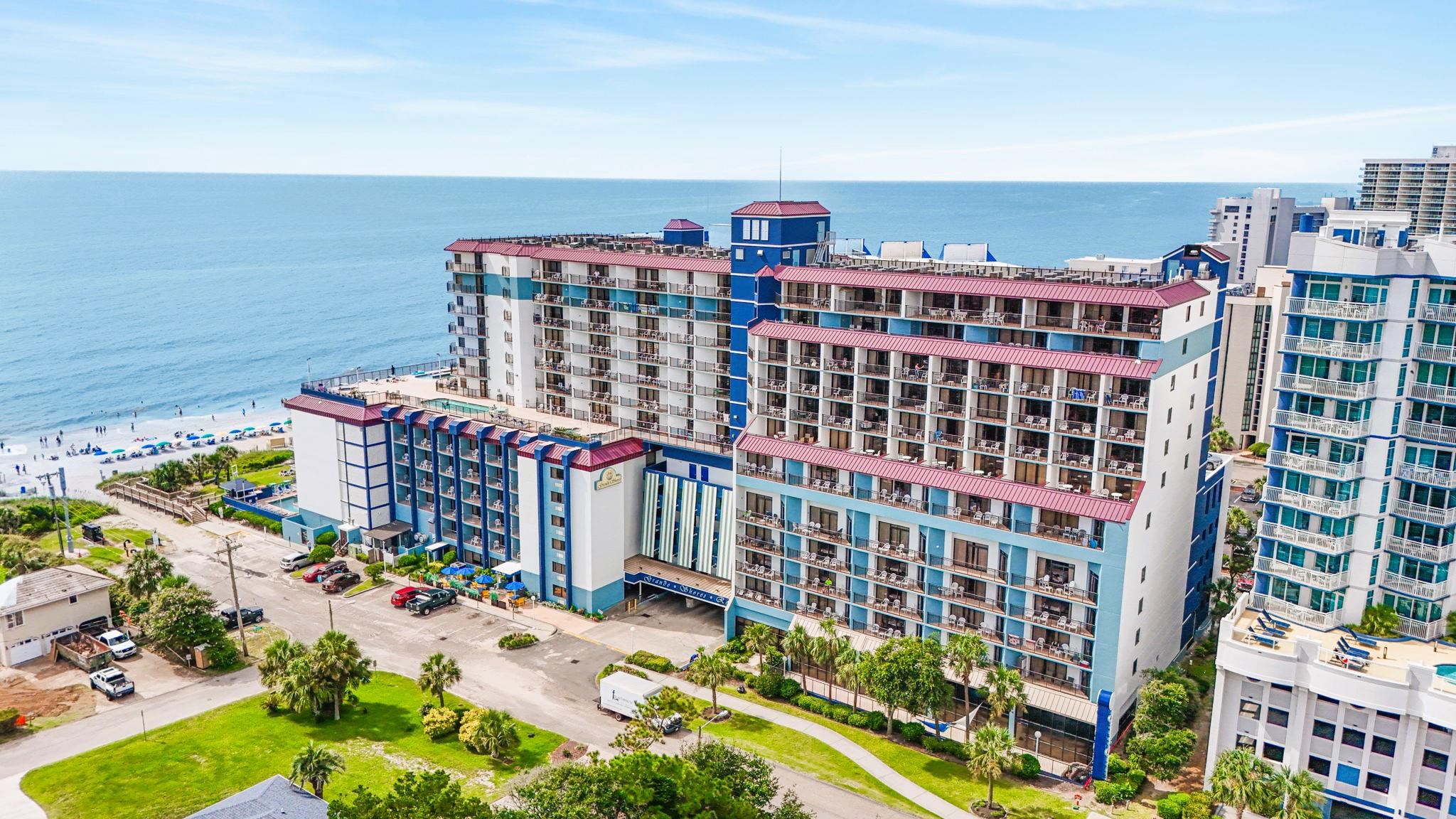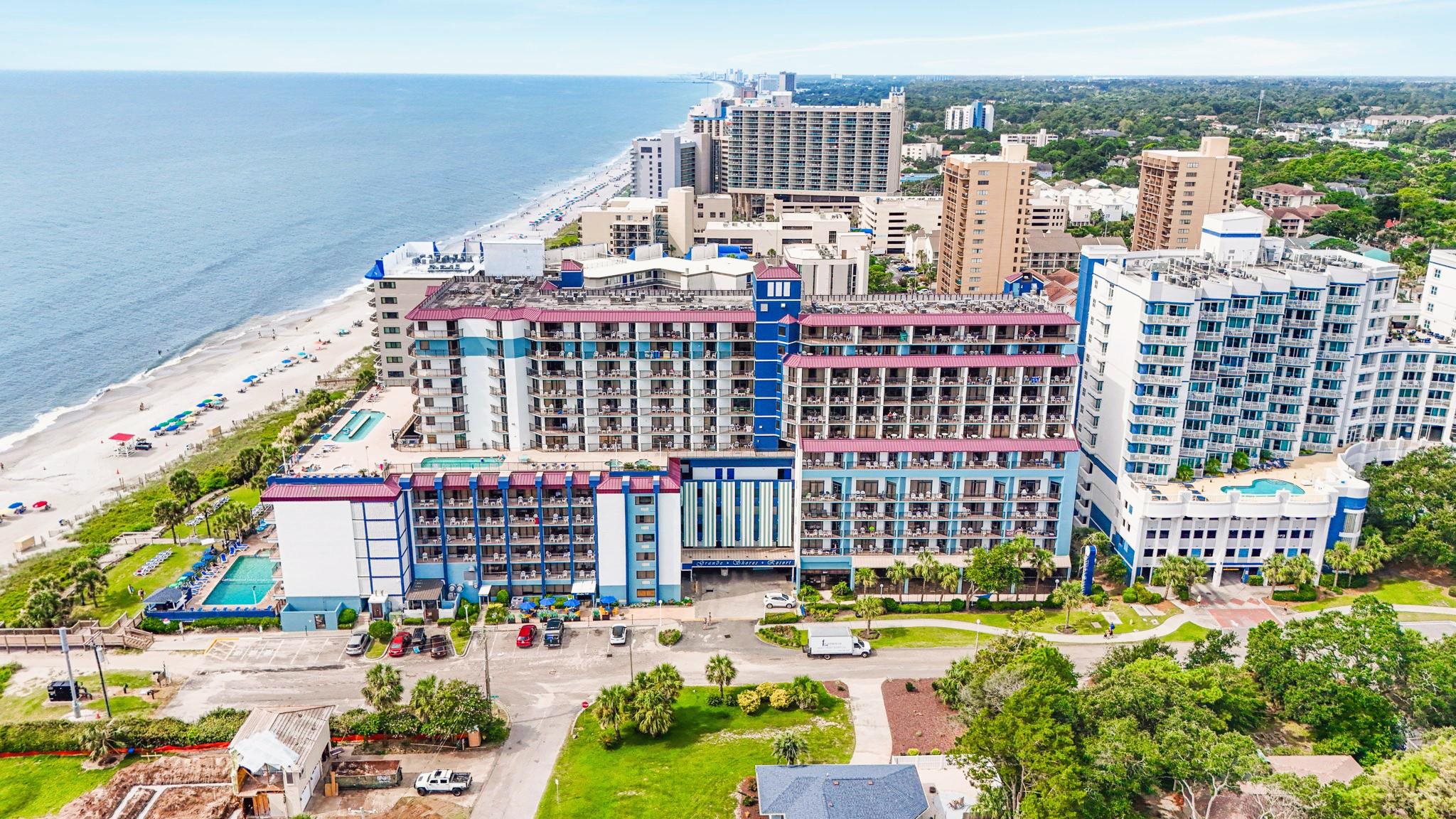Dont miss this incredible opportunity to own a fully furnished oceanfront condo in the sought-after Grande Shores Resort! Unit 1024 is a well-maintained 1-bedroom, 1-bath unit located on the 10th floor, offering beautiful views of the Atlantic Ocean from your private balcony. These units will sleep up to 8 people to maximize rental income. Inside, youll find a bright and open layout featuring 2 queen beds, a comfortable living area with a sleeper sofa and Murphy bed, a kitchenette with full-size, stainless steel appliances, and a spacious bathroommaking it perfect as a vacation getaway or rental investment. The Grande Shores Resort is packed with amenities that keep guests coming back year after year. Enjoy water features including indoor and outdoor pools, lazy rivers, Shoreline Cafe Restaurant, fitness center, business center, conference and banquet spaces and hot tubs galore. Whether you're looking for a turnkey rental property or your own piece of paradise, this is coastal living at its best! Some photos of this listing have been virtually staged.