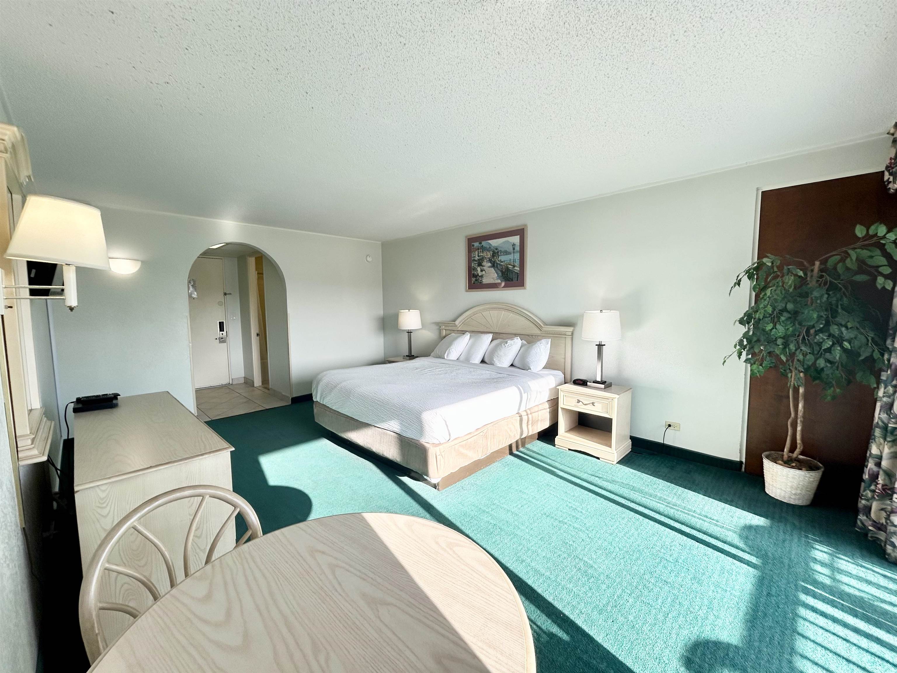 PRICED TO SELL! Welcome to St. Johns Inn, a charming boutique resort located on Myrtle Beachs highly sought-after Golden Mile, known for its quieter stretch of beach, popular dining, and classic coastal appeal. The building features a refreshed, retro-inspired aesthetic that creates a relaxed resort feel just steps from the ocean. This unit offers a side view of the Atlantic, allowing you to enjoy glimpses of the water from your private balcony, without facing the pool or interior courtyard. Situated directly across the street from the beach, the location provides easy access to the sand while maintaining a more private, peaceful setting. Inside, the unit features an open layout, foyer-style entry, and a king-size bed, making it ideal for a beach getaway or income-producing rental. Surrounded by restaurants, cafs, and attractions along the Golden Mile, this property is well-suited for personal use, vacation living, or investment potential.