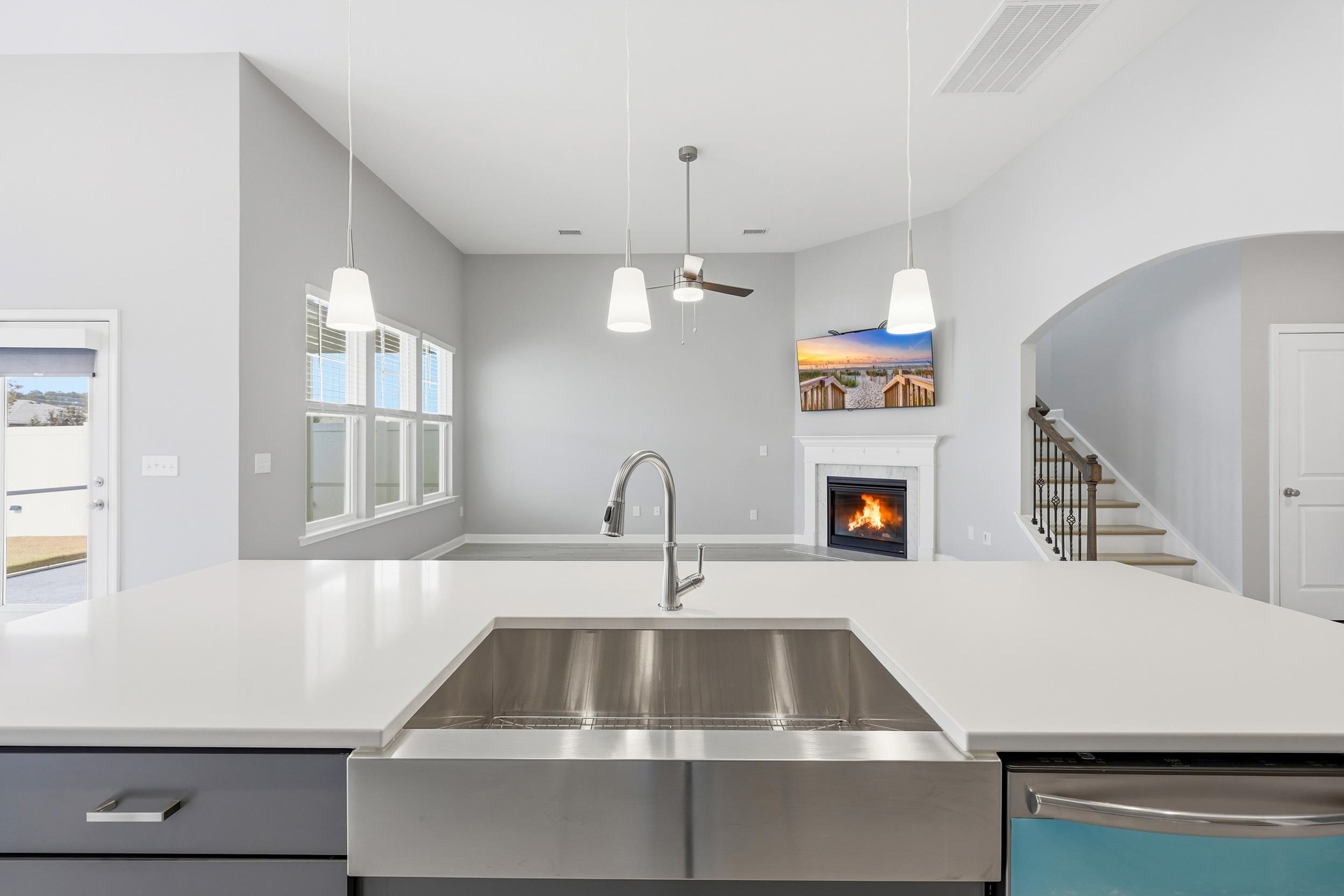 PRICE GENEROUSLY IMPROVED & 1 YEAR HOME WARRANTY INCLUDED! This practically brand-new, beautifully designed 3-bedroom, 3 full-bath home offers a cozy indoor gas fireplace, a wood staircase, and elevated finishes throughout. The living room offers a 70 television that conveys. Located in the highly sought-after Arcadia community, this home features the desirable Fullerton plan with upgrades comparable to the model home. The gourmet kitchen is a chefs dream, showcasing stainless steel Frigidaire appliances (refrigerator conveys), soft-close Greyhound cabinetry, a gas cooktop with hood, built-in wall oven and microwave, and an oversized stainless steel farmhouse apron sink, ideal for everyday living and entertaining. Quartz kitchen countertops and an open-concept floor plan further enhance the homes modern appeal. The primary suite, located on the main level, provides a spa-like retreat with an upgraded 5 x 5 tiled shower, frameless glass enclosure, and a private water closet. Also on the first floor is an additional bedroom and full bath, perfect for guests or a home office. Upstairs, youll find the third bedroom with its own full bath, tucked away for added privacy. Additional highlights include framed bathroom mirrors, double walk-in attic storage, a spacious laundry room with sink that can also function as a butlers pantry, custom roll-down blackout window shades, and washer and dryer conveying. Enjoy outdoor living on the screened-in patio with manual sun-shade, epoxy flooring, a fully fenced backyard, ADT smart home security system with two cameras, permanent Bosso outdoor lighting with smart app control, and a full irrigation system for added convenience and curb appeal. The amenity center, fitness center, and pool are just steps away, offering unmatched convenience. Community amenities include pickleball courts, firepit, playground, walking trails, and more. Energy-efficient construction includes a 15 SEER HVAC system and R-38 ceiling insulation, along with the peace of mind of a 1-2-10 year builder warranty. The home has recently completed its one-year inspection for peace of mind, and has been professionally deep cleanedtruly move-in ready. Ideally located close to shopping, dining, medical facilities, beaches, golf courses, the airport, and more.