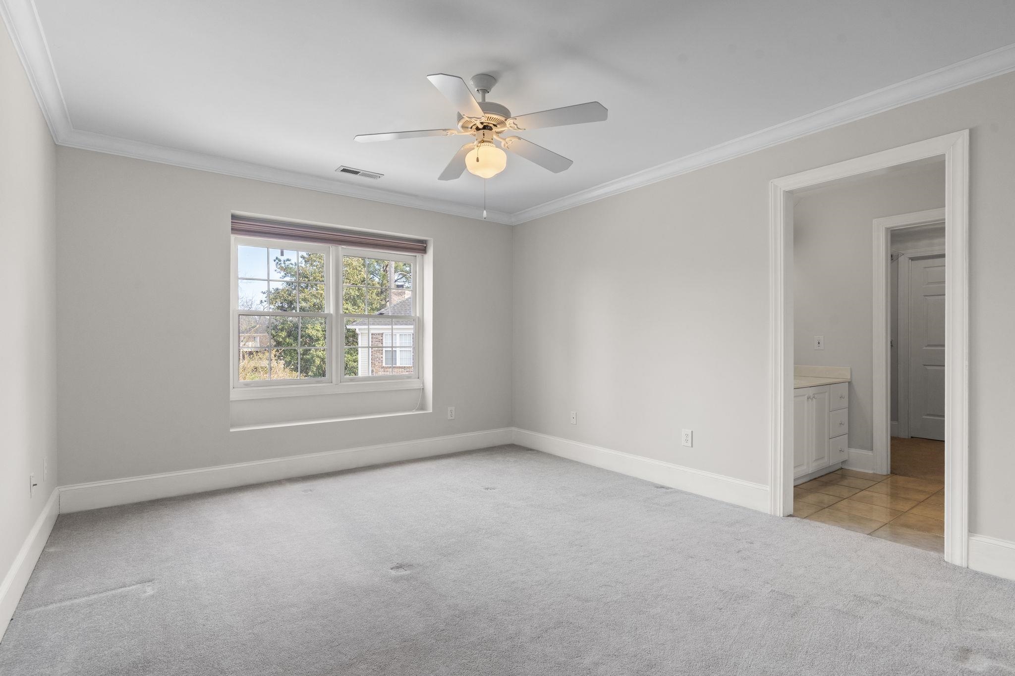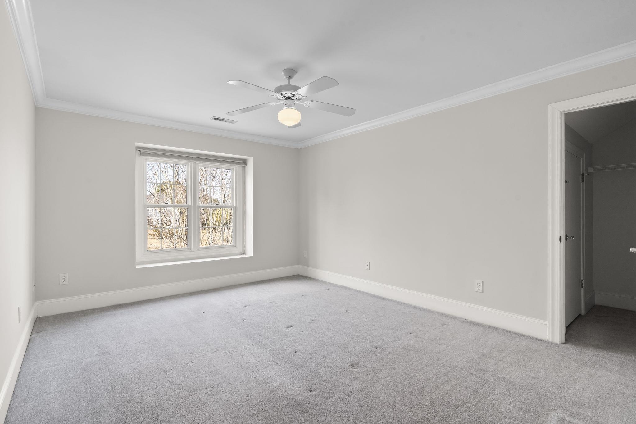 PrimaryBedroom: CeilingFans, LinenCloset, MainLevelPrimary, WalkInClosets