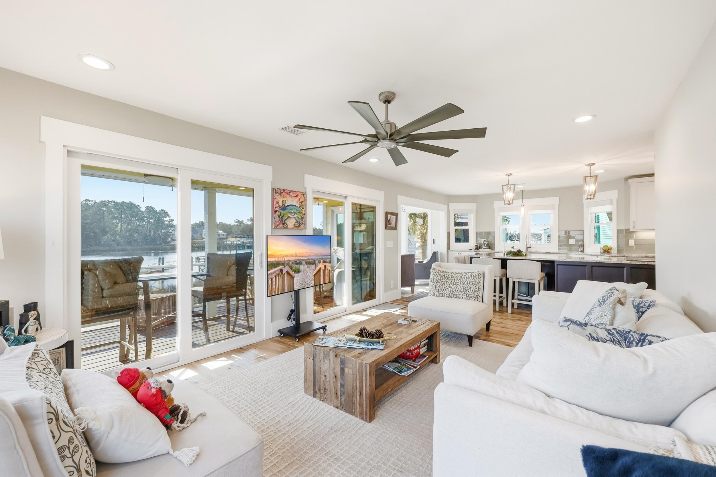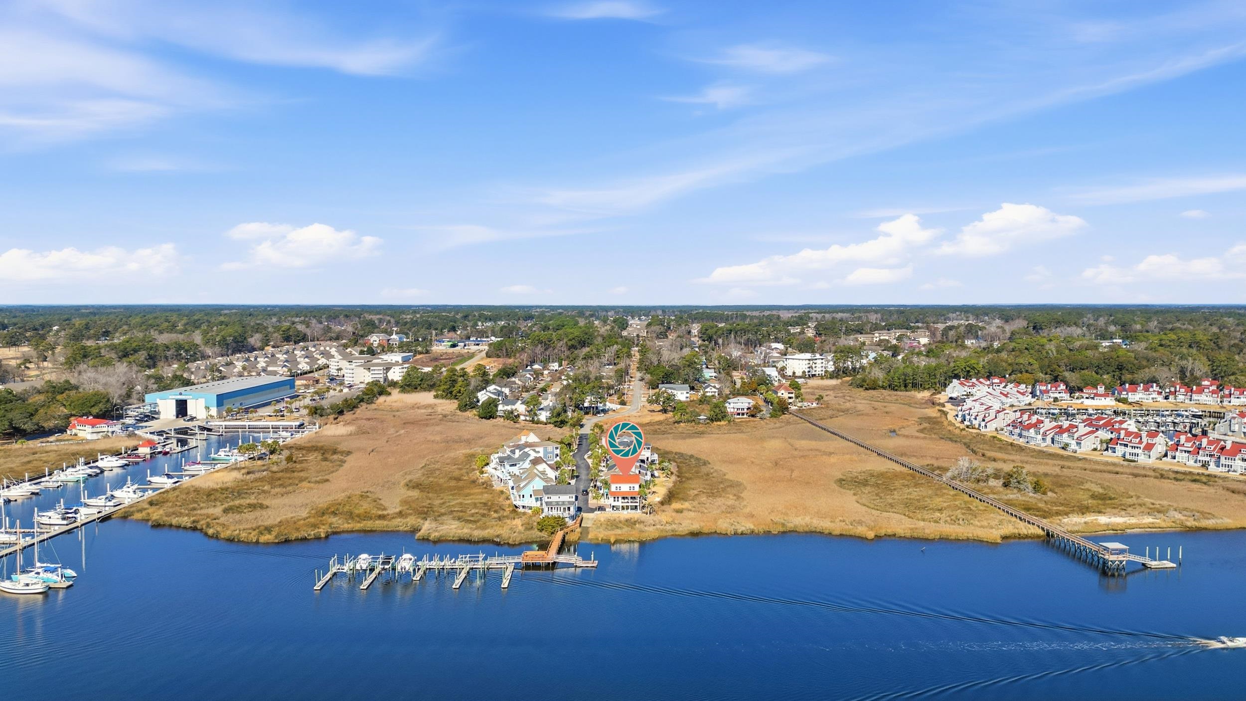 Welcome to 4357 Landing Road, an exceptional waterfront residence located within the prestigious gated community of Crystal Pointe. Perfectly positioned to capture sweeping panoramic views of the Intracoastal Waterway, marshlands, and Crickett Cove Marina, this meticulously designed 3-bedroom, 3.5-bath home blends sophisticated finishes with effortless coastal elegance. The main level showcases a thoughtfully curated open-concept design anchored by a chefs kitchen featuring premium Caf appliances, an induction cooktop, quartz countertops, custom soft-close cabinetry, an oversized island, a walk-in pantry with dedicated coffee bar, and a convenient dish drawer. Expansive living and dining spaces flow seamlessly onto a covered waterfront deck. The primary suite is privately situated on the main floor, along with a spacious laundry room and well-appointed half bath. Upstairs, two beautifully designed guest suites each feature their own private baths. Rich hardwood flooring, designer lighting, custom millwork, and statement barn doors elevate the homes architectural appeal throughout. Designed for exceptional indoor-outdoor living, expansive upper and lower decks provide multiple vantage points to enjoy breathtaking ICW views. The lower-level entertaining space is a true highlight, featuring a custom swing door that opens to a built-in bar with TVan inviting atmosphere for hosting gatherings while embracing the waterfront lifestyle. Additional features include a two-car garage, brick paver driveway, Trex decking, and professionally designed low-maintenance landscaping. Residents of Crystal Pointe enjoy exclusive amenities including a private boat ramp and day dock, with convenient access to Little Rivers waterfront dining, premier golf courses, boutique shopping, medical facilities, and pristine beaches just minutes away. Schedule your showing today!