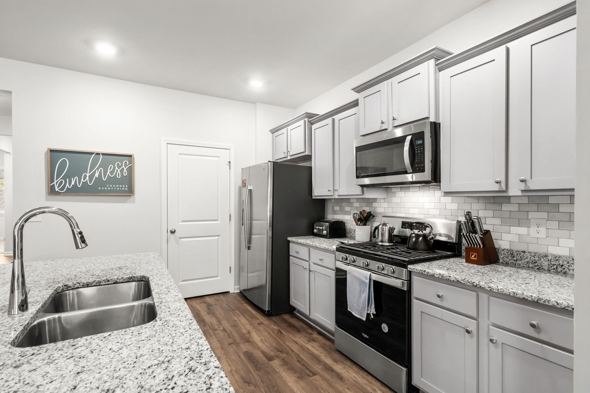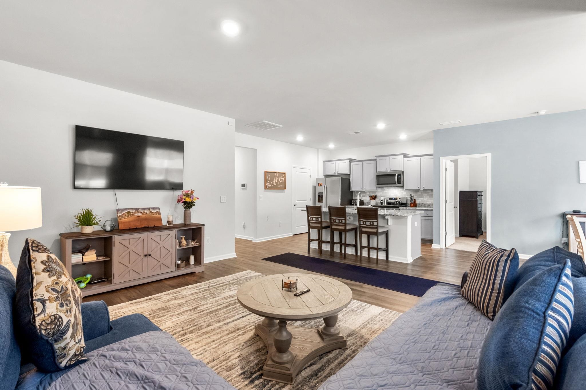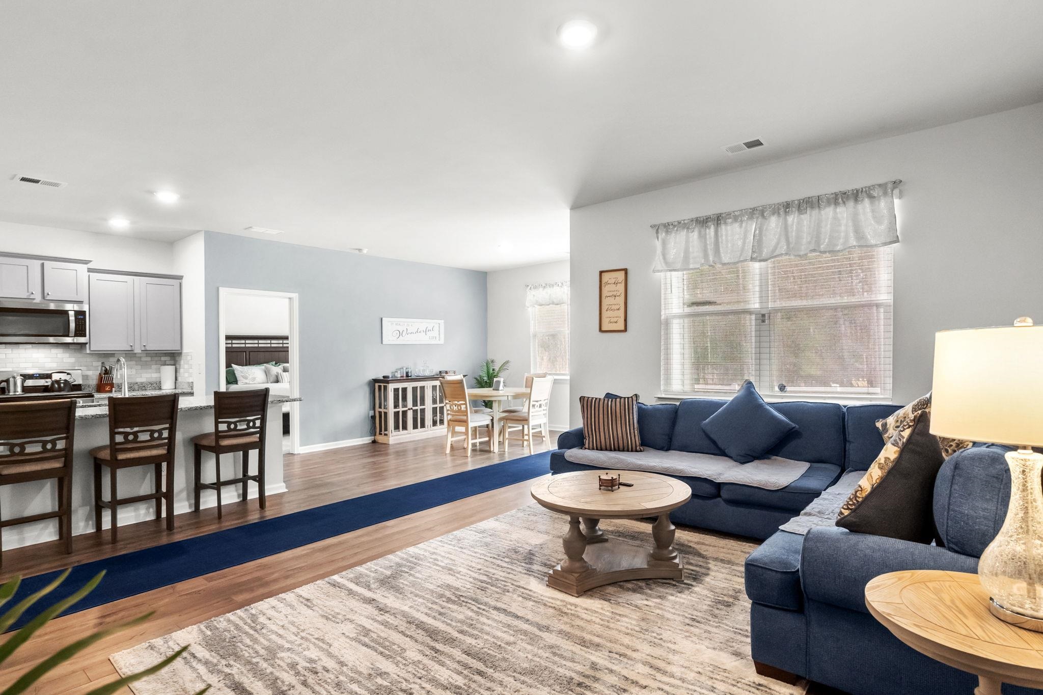 Welcome home to this beautifully maintained, move-in ready single story residence featuring an open concept layout and stylish modern finishes throughout. The bright and spacious living area flows seamlessly into the kitchen, complete with granite countertops, stainless steel appliances, ample cabinet space, and a large island with bar seating, perfect for entertaining or everyday living. Luxury plank flooring runs through the main areas, while neutral tones create a warm, inviting feel. The exterior offers charming curb appeal with low-maintenance landscaping, an attached two-car garage, fenced in yard and screened in back porch. Conveniently located near shopping, dining, and local amenities, this home combines comfort, functionality, and style. Dont miss your opportunity to make it yours!