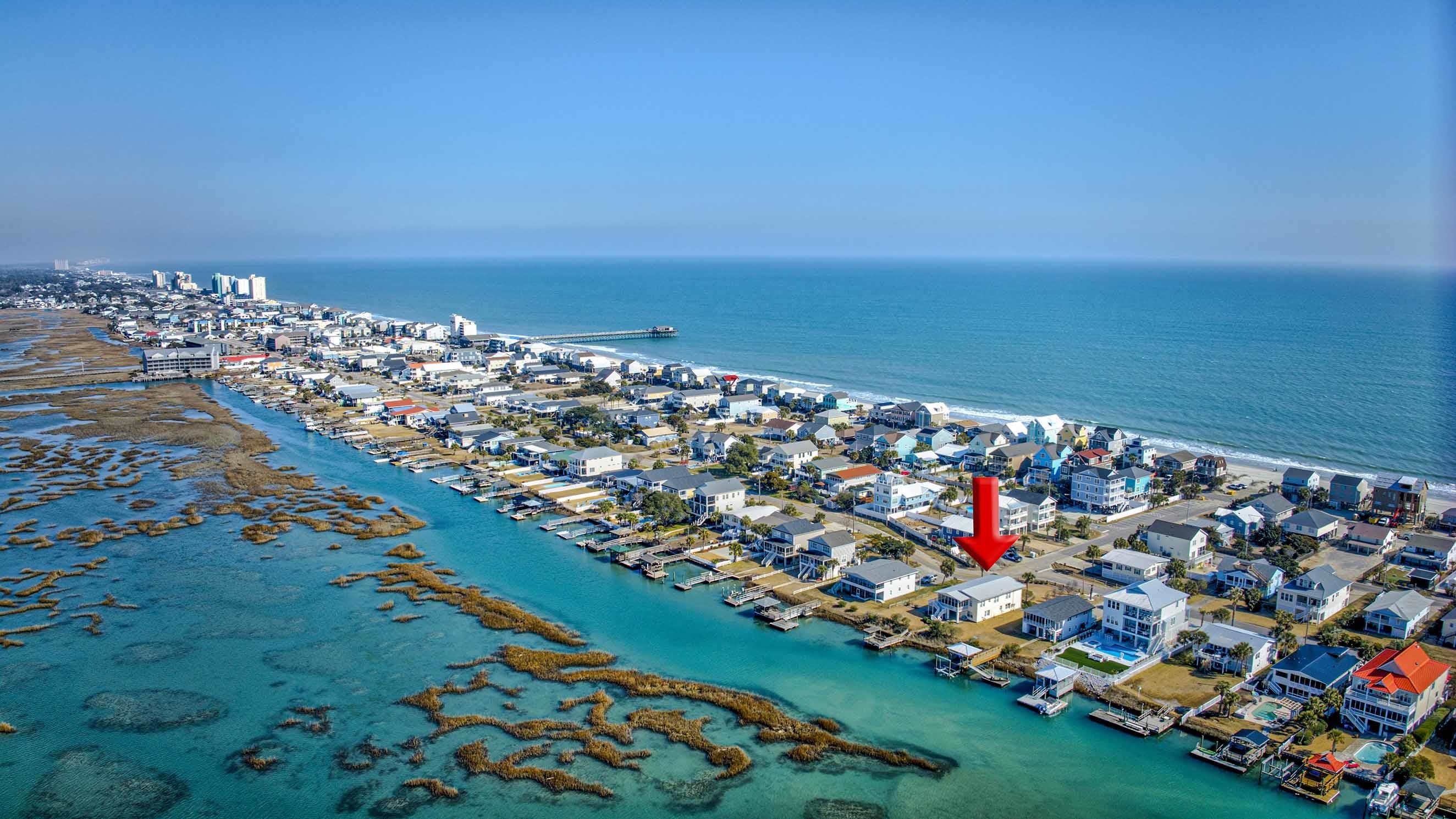 Head south from the Garden City Pier on South Waccamaw Drive. Drive 3/4 of a mile and turn right onto Yucca Avenue. Go toward the creek and look for the yard sign.Courtesy of Peace Sotheby's Intl Realty Pi
