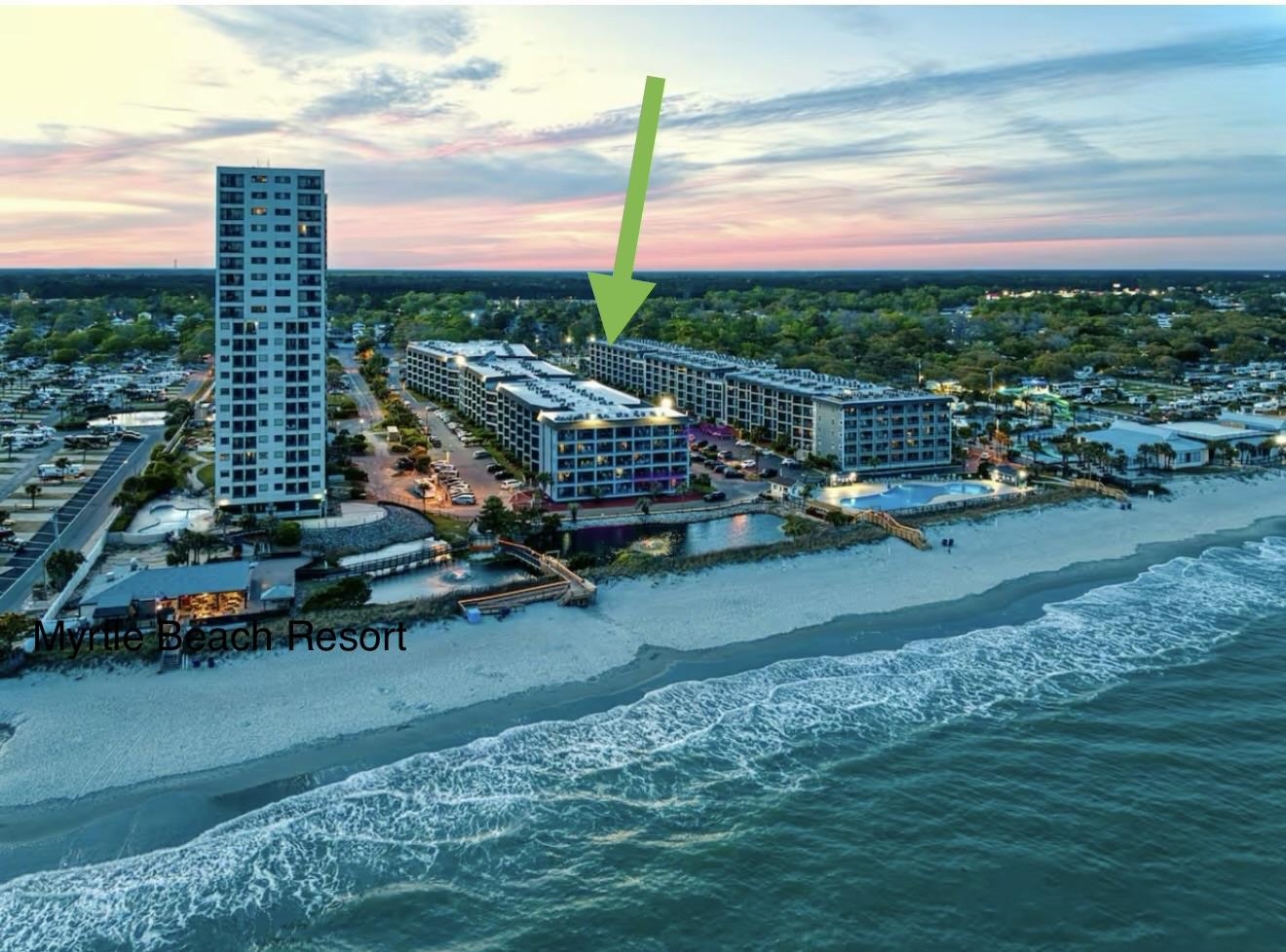 Myrtle Beach Resort is located east of business 17 on the Oceanfront. It is between Ocean Lakes campground and Lakewood campground. Use 544 east if coming from bypass 17. From Bypass 17 to 544 East. Turn left onto business 17 and turn right into Myrtle Beach Resort.Courtesy of Realty One Group Docksidesouth