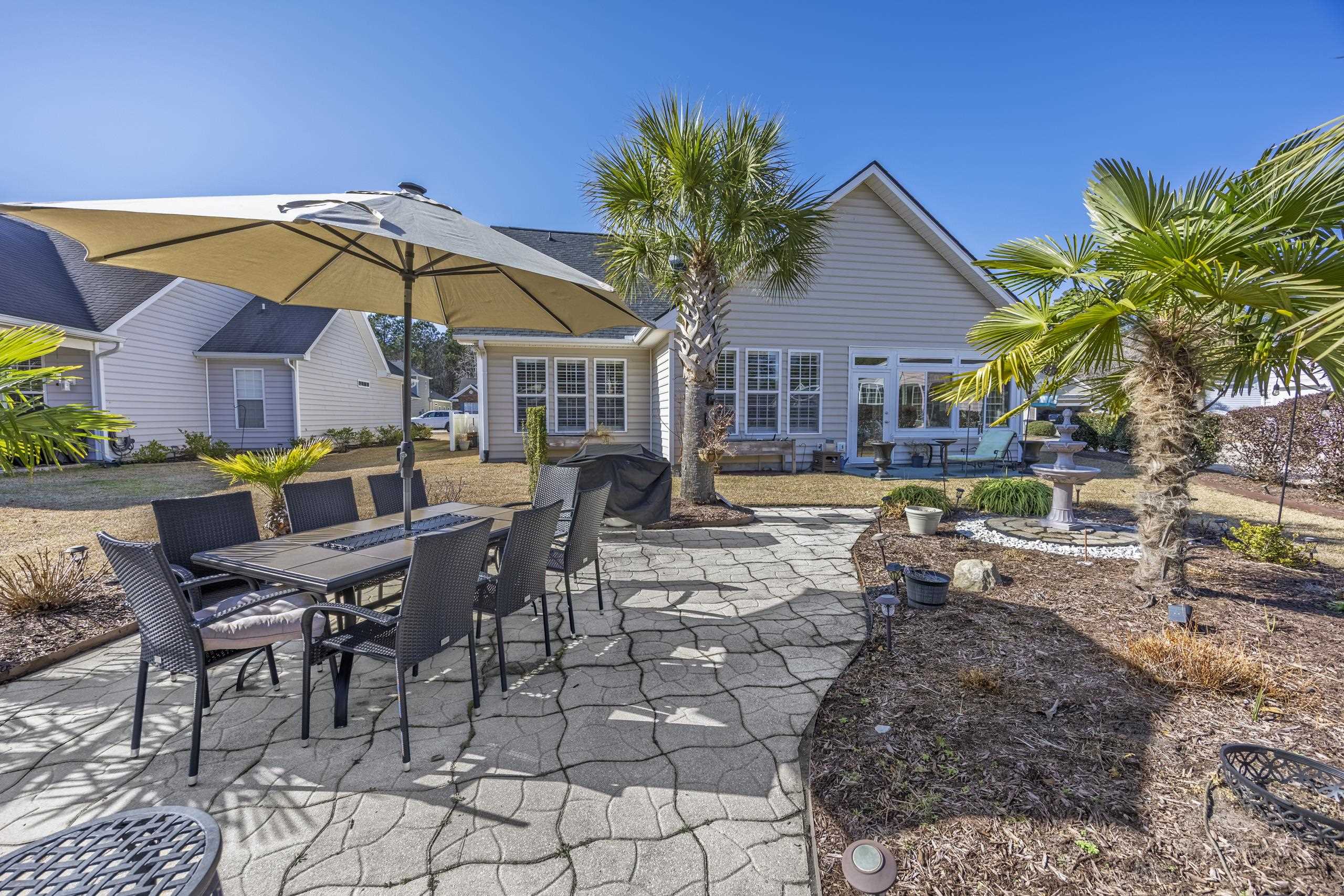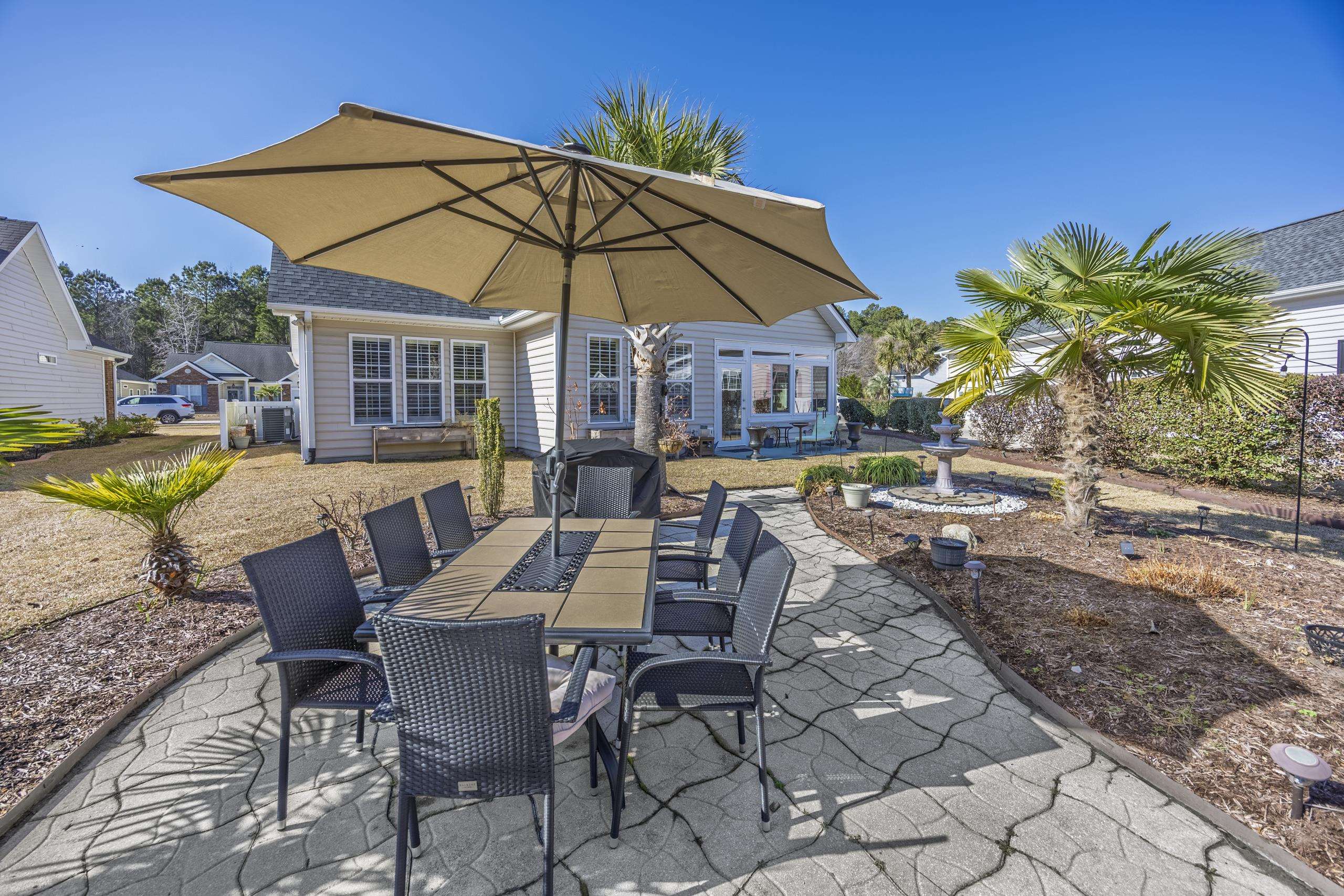 Welcome to 1011 Rudder Court, perfectly situated in one of the area's premier 55+ communities Myrtle Trace South. Ideally located on the border of Myrtle Beach and Conway, this home offers exceptional convenience. The community pool is just around the corner, and youre minutes from grocery stores, shopping, golf courses, medical facilities, restaurants, and more. Its truly a fantastic place to call home. This beautifully designed 3-bedroom, 2-bath residence features a desirable split-bedroom, open-concept floor plan with a natural, easy flow. Gorgeous wood flooring extends throughout the main living areas, while abundant windows and vaulted ceilings create a bright, airy, and spacious feel. A pocket door near the guest wing allows you to create a private retreat for visitors, complete with a full bath and a generously sized bedroom large enough to comfortably accommodate a king-size bed. Home chefs will appreciate the well-appointed kitchen featuring granite countertops, ample cabinetry, and a charming breakfast area enhanced by beautifully crafted built-ins for additional storage. The sunroom, recently updated with new flooring, serves as a peaceful haven perfect for bird watching, morning coffee, or simply relaxing. The spacious primary suite offers comfort and style, while the adjoining ensuite bath boasts several upgrades, highlighted by a tiled shower that truly stands out. Additional features include: Utility sink Lawn irrigation system Extended garage for extra storage or workspace & built-in storage within the garage will convey. And a HUGE BONUS the HOA cuts the lawn for you! Enjoy low-maintenance living in a vibrant, convenient, and welcoming community.