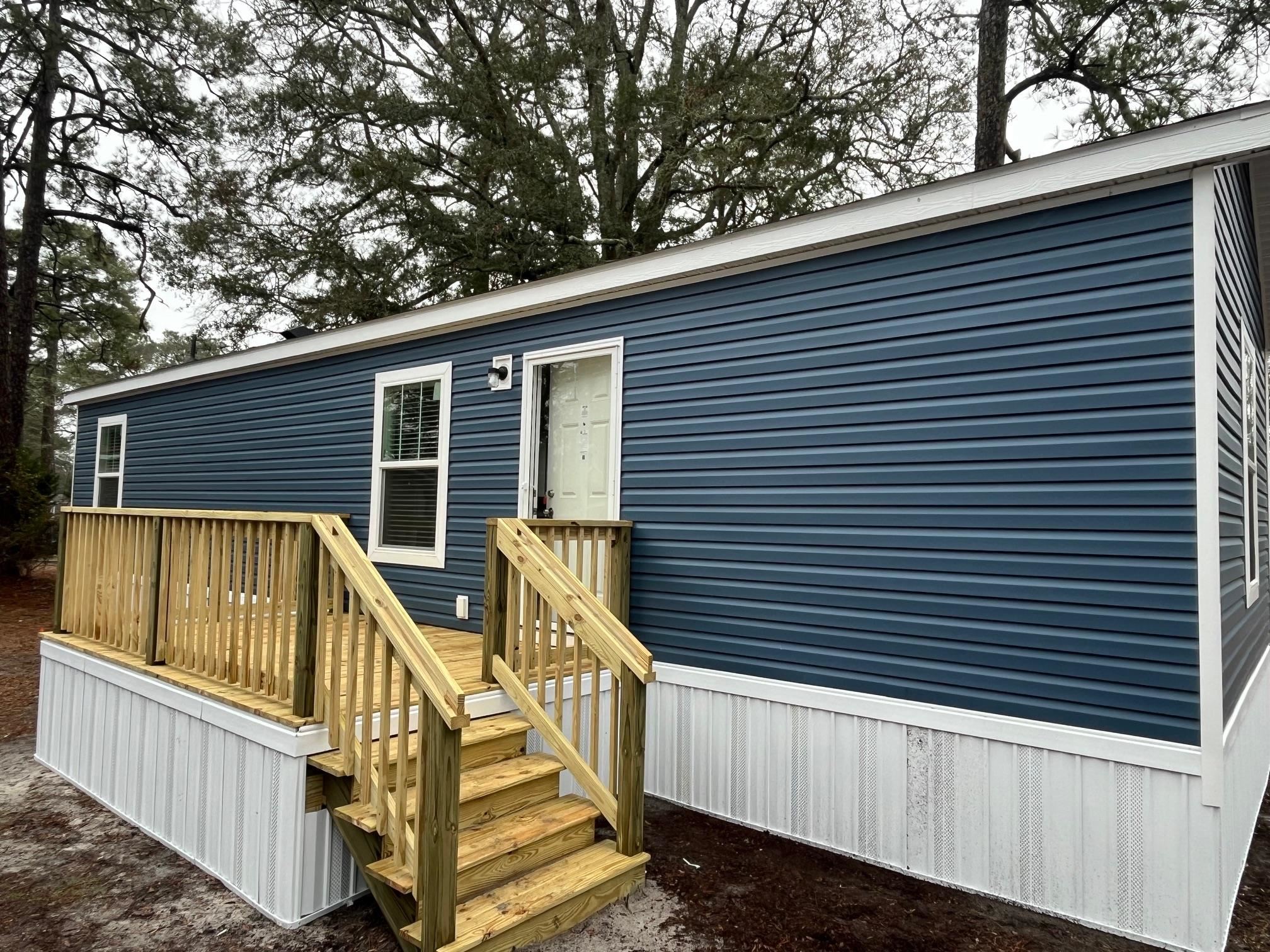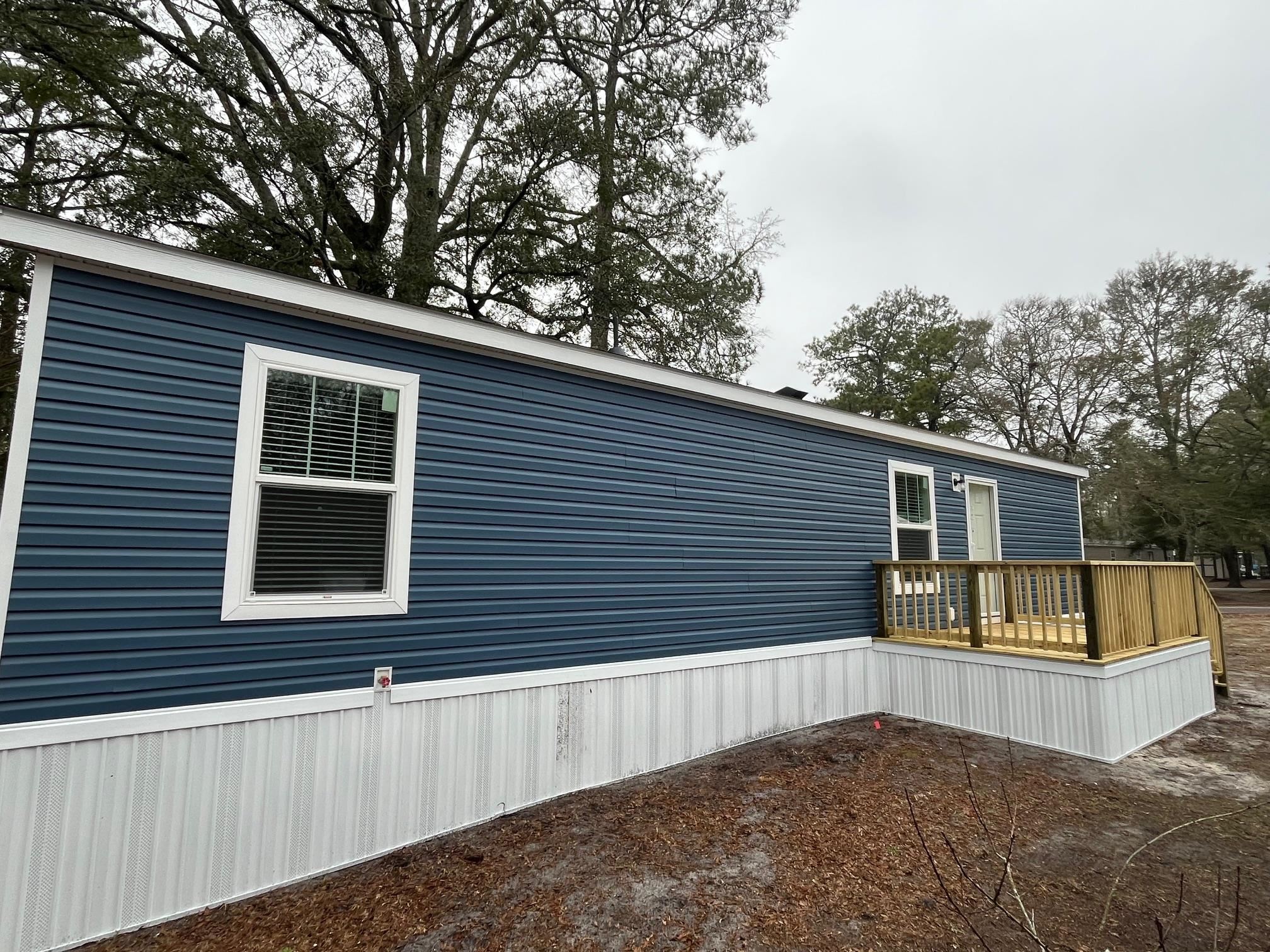 This lovely brand new 2 bedroom 1 bathroom 2025 Clayton manufactured home is located in the very desirable neighborhood of Creekside in North Myrtle Beach. The home is set up on leased land with lots of shade trees surrounding the quiet dead end street. There is plenty of parking and enough yard space for a fence if desired. The home comes with a Whirlpool appliance package to include a stainless steel refrigerator, stainless steel dishwasher, electric smooth top range, stainless steel microwave and upgraded stainless faucet. It also features top of line manufacturing with sheetrock walls, ceiling fans, upgraded cabinetry and hardware with island bar, crown molding, large primary bedroom with walk in closet and easily maintained vinyl flooring. The utility room includes the electric furnace, washer and dryer hook ups and water shut off valve for the whole house. There are also 2 wooden decks at both the front and back doors of the home with the front deck having additional space for entertainment. This community offers a large swimming pool for residents and guests, onsite mailboxes, clubhouse, playground and picnic area as well as additional seating along the creeks and marshes of Cherry Grove. The home would make a great permanent residence or vacation home and meets all local Wind Zone II standards. Golf carts, pets, fencing allowed in this community. Call for more details and your private showing today.