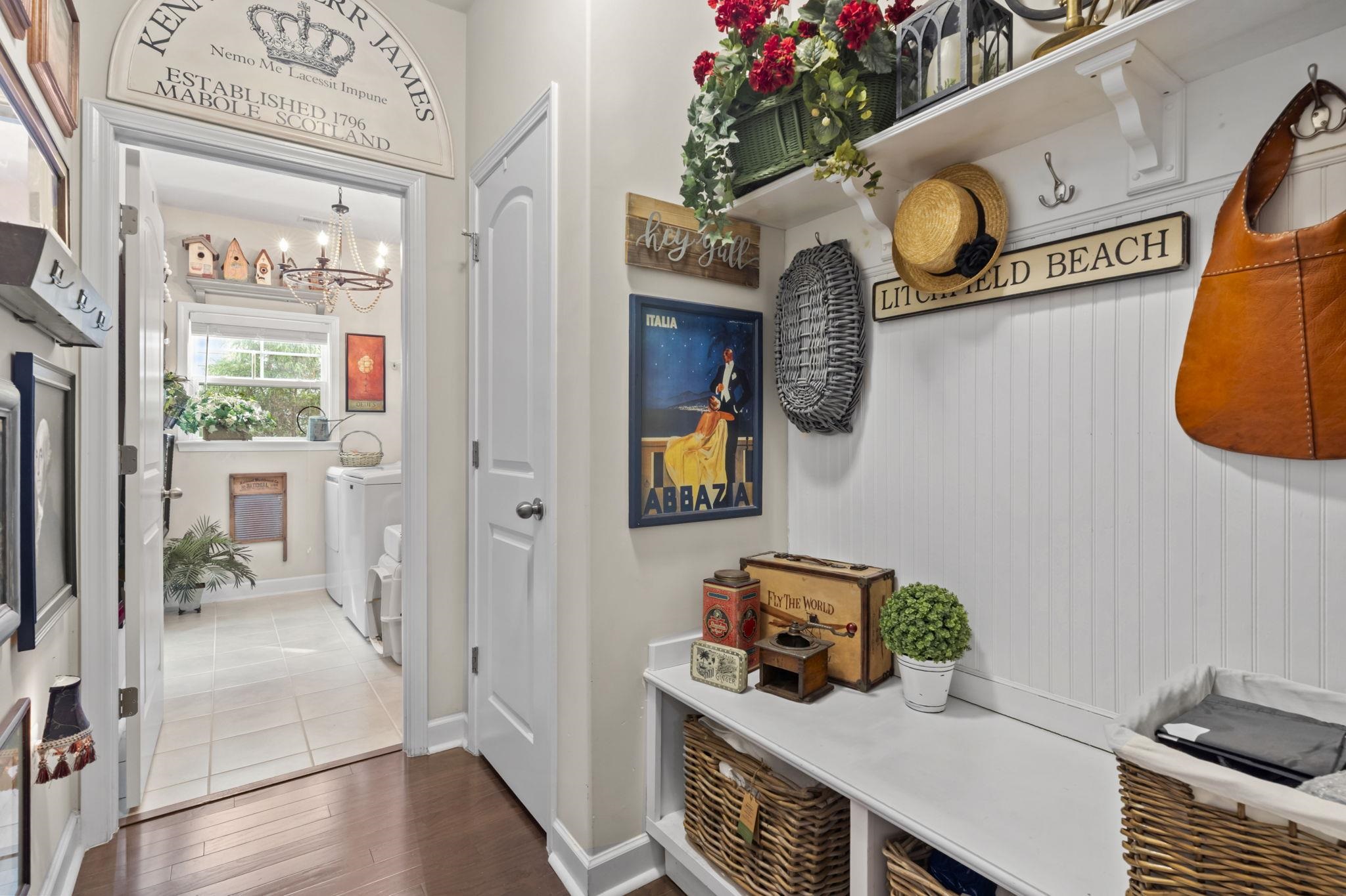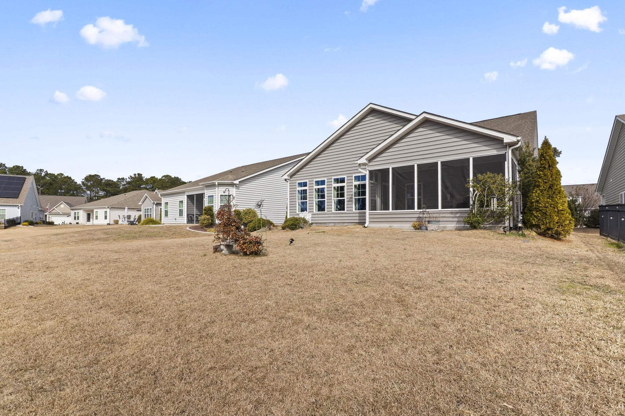 Designed by an interior designer, this gorgeous 3-bed, 2-bath single-story home is located in the exclusive Brookberry section of The Farman intimate enclave of only 55 homes built by RS Parker where neighbors truly feel like family. From the moment you arrive, the immaculate design and thoughtful upgrades are impossible to miss, highlighted by lush landscaping, an irrigation system, and a beautifully tiled front entry. Step into the foyer and youre welcomed by real hardwood flooring with a factory white oak French finish, setting the tone for the elevated design throughout. The interior features a formal dining room with two show-stopping chandeliers, a spacious laundry room, and a two-car garage. The main living area offers breathtaking views through four tall windows overlooking the pond and natural preserve, all framed by vaulted ceilings and a dramatic bronze hanging light fixture that instantly becomes a conversation piece. The upgraded kitchen boasts the largest granite countertop the builder offered, stainless steel appliances, a new washer and dryer, upgraded fixtures and lighting, and an air purification system. The primary suite provides peaceful pond and preserve views, enhanced by two additional windows for a wall-to-wall panorama, along with safety handrails in the tiled step-in shower for added comfort. Unwind on the screened-in porchcomplete with a knee walland enjoy the serenity of your private backyard and the surrounding nature. This home is truly one-of-a-kind. Great community Amenities include, two pools, playground, fitness room and basketball court. Only 10 minutes to Tanger Outlets, Post Office, Banks, Restaurants and Medical Offices. Best of all....Only 20 minutes to the BEACH!