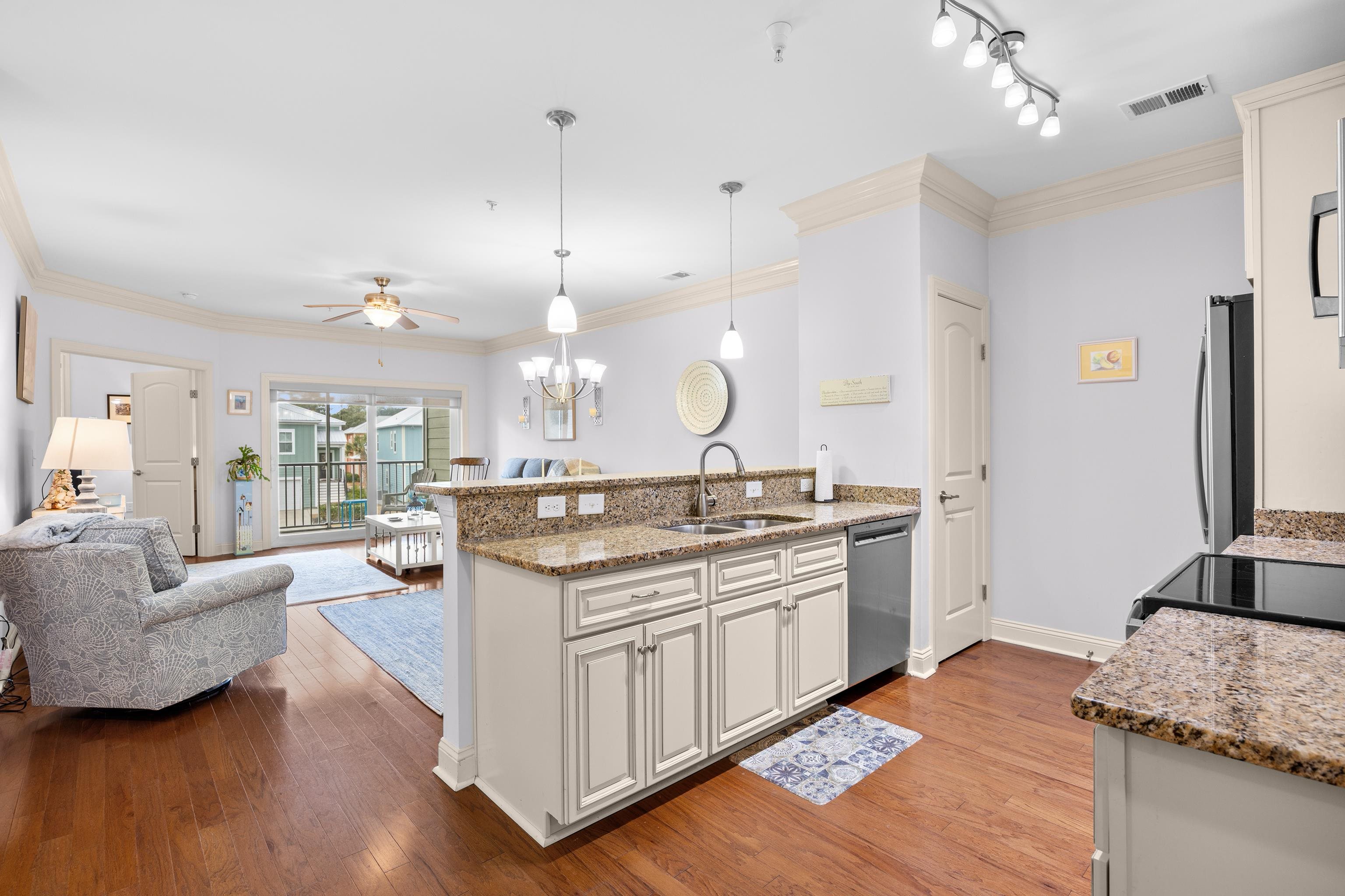 Charming and efficient, this lovely 3-bedroom, 2-bath Mingo condo offers affordable easy living near the beach. Additional features to love include the modern kitchen with stainless steel appliances, open concept split-bedroom floor plan, beautiful wood and tile floors, ceiling fans throughout, and screened porch with pond view. Finishing touches include plantation shutters, custom slider door shades, and custom-designed closet in the primary bedroom. New HVAC one year ago. The second floor location in this low-rise complex provides access via an elevator as well as exterior covered stairs. Common area parking in front. Community pool and picnic grilling area nearby. The Village at Mingo is right along the Waccamaw Bikeway and walkable to popular local eateries, a grocery store, gym, bakery, salons, and the Waccamaw Library. Convenient driving distance to nationally recognized golf courses, fine local shops and art galleries, Brookgreen Gardens, and Huntington Beach State Park - all right in your own backyard. Myrtle Beach is 20 miles north and Charleston is an easy day trip away. Fine Coastal Living made possible.