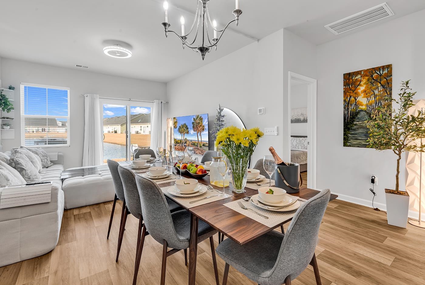 Turnkey Pond-View Townhome in Victory Point | STR-Approved | 3BR / 3BA | Fully Furnished Alternative (more lifestyle-focused): Victory Point Gem - Fully Furnished Pond-View Townhome with Proven Short-Term Rental Income Welcome to Victory Point, one of Myrtle Beachs very limited communities that officially allow short-term rentals, offering a rare opportunity to combine immediate income potential with refined personal use. This fully upgraded, 3-bedroom, 3-bathroom townhome was completed and professionally furnished on February 1, 2026, and is offered truly turnkey. Unlike most comparable properties with only 2.5 bathrooms, this home provides a full bathroom for every bedrooma layout strongly preferred by vacation guests and a proven driver of higher occupancy. Designed with a European-inspired aesthetic, the interior features carefully planned LED lighting, premium furnishings, and exceptional flexibility for hosting families and larger groupswithout compromising elegance or comfort. The modern kitchen is equipped with a touchless high-performance range hood, full stainless steel appliance package, granite countertops, white cabinetry, a pantry. An oversized island and an extendable dining table seating up to eight guests. The open living area features durable LVP flooring and a contemporary sectional sofa that converts effortlessly to a king-size sleeping space, with an optional privacy curtain separating dining and living areas for spontaneous guest stays. Sleeping accommodations include two king bedrooms and one queen bedroom, complemented by additional folding beds discreetly stored for larger groups. Baby-friendly amenities, fitness equipment, yoga accessories, and family games further enhance appeal for extended stays and repeat bookings. The primary suite features a spa-inspired European glass split-door shower, delivering both visual impact and hotel-quality comfort. Outdoors, the home enjoys a private pond-view backyard, where water reflections and natural light create a serene setting rarely available within the community. A fully equipped outdoor grill, solar exterior lighting, and security features complete the experience. Smart and energy-conscious upgrades include a Yale digital lock, garage door opener with keypad, solar-powered security cameras, motion-sensor and wall-mounted solar LED lighting, and timed interior LED lighting throughout. The property conveys fully furnished and stocked, including washer, dryer, new linens, towels, bedding, cleaning supplies, and cordless vacuumallowing the next owner to rent or enjoy immediately with no additional setup. Located directly beside Tanger Outlets, surrounded by supermarkets and wholesale stores, near Coastal Carolina University, and approximately 10 minutes to Myrtle Beach city center, beaches, golf, and entertainment, this home combines convenience with investment-grade performance. Notably, three bookings were secured within just two days of initial listing, demonstrating immediate demand ahead of peak season. Whether held as a luxury vacation retreat, a high-performing short-term rental, or a strategic combination of both, this Victory Point residence represents one of the most complete and compelling townhome offerings currently available in Myrtle Beach.