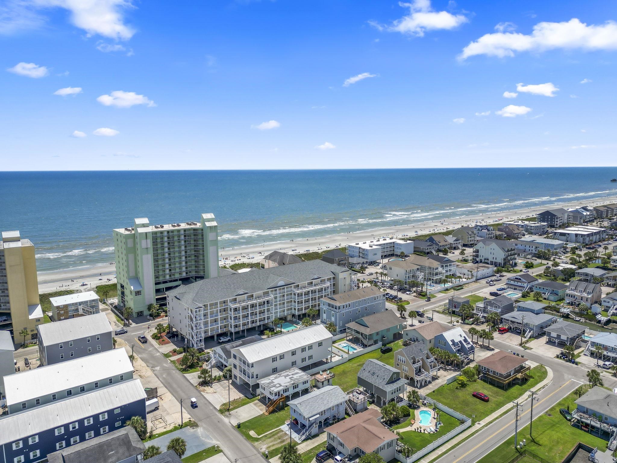 Discover coastal luxury at Cherry Grove Villas! This fully furnished, two-level 6BR/5BA condo at 200 N 53rd Ave N #205 offers stunning inlet and ocean views, modern updates, and an ideal North Myrtle Beach location. Enjoy an open-concept layout with stainless appliances (range 2023, dishwasher 2022), fresh paint, LED lighting, and two high-efficiency heat pumps. Community amenities include a pool, hot tub, outdoor grills, and elevators. Steps from the beach, dining, golf, and entertainment perfect as a primary home, vacation retreat, or rental investment! Cherry Grove is renowned for its pristine beaches, charming fishing pier, and tranquil inlet waterways, ideal for kayaking, fishing, or simply soaking in the coastal beauty. Just minutes away, you'll find world-class dining, shopping, and entertainment at Barefoot Landing, as well as championship golf courses that dot the Grand Strand. For family-friendly fun, explore nearby attractions like the Alabama Theatre, Alligator Adventure, or the thrilling rides at Family Kingdom Amusement Park. With easy access to Highway 17, you're also a short drive from the bustling energy of Myrtle Beach and its iconic boardwalk and SkyWheel.