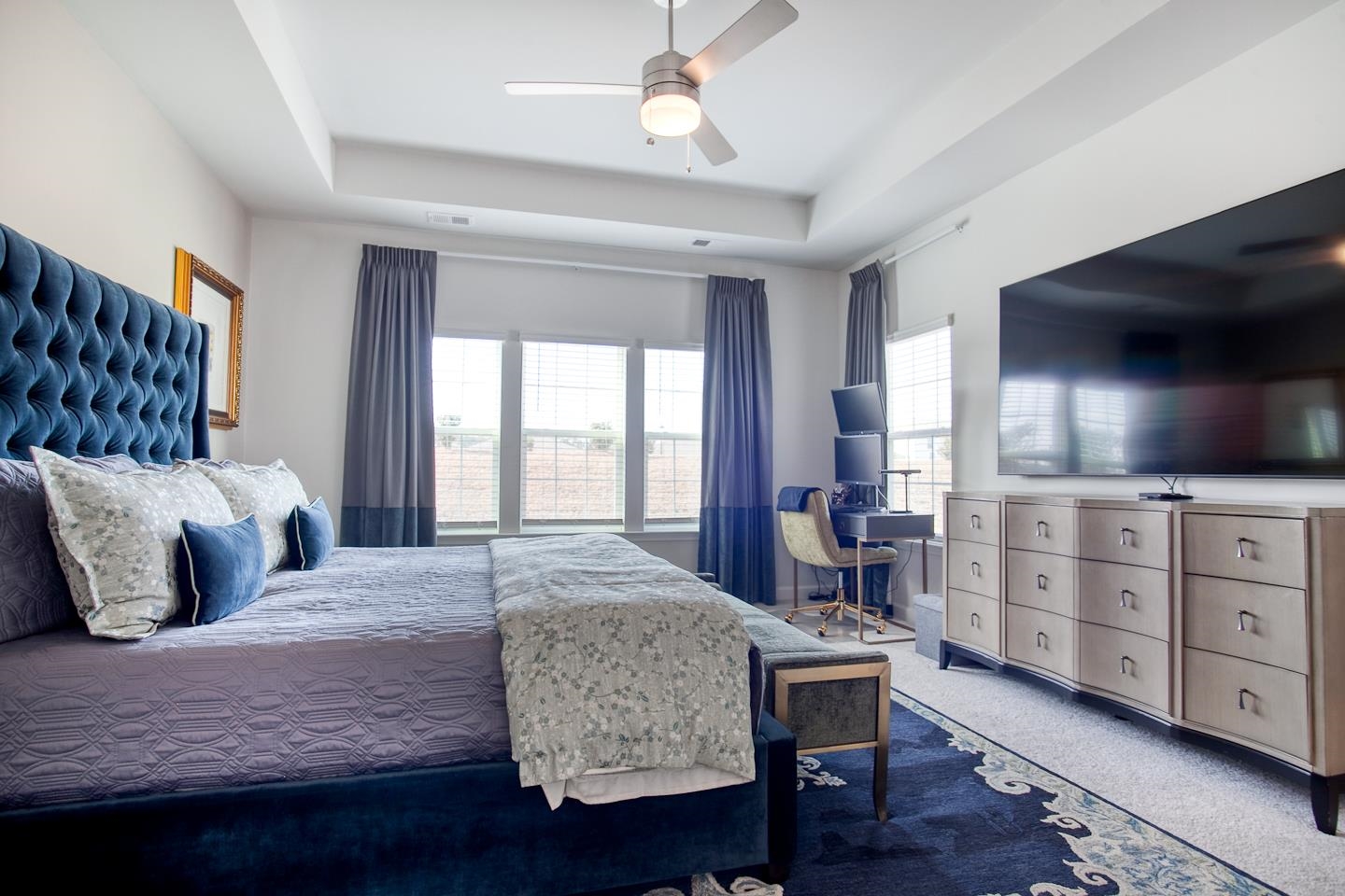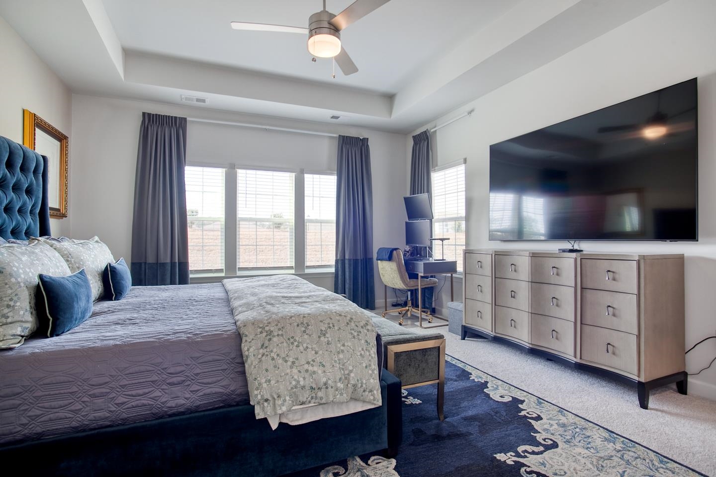 Interior Features: TrayCeilings, CeilingFans, DualSinks, Fireplace, LinenCloset, MainLevelPrimary, SplitBedrooms, SeparateShower, Vanity, WalkInClosets, BreakfastBar, BedroomOnMainLevel, EntranceFoyer, KitchenIsland, StainlessSteelAppliances, SolidSurfaceCounters