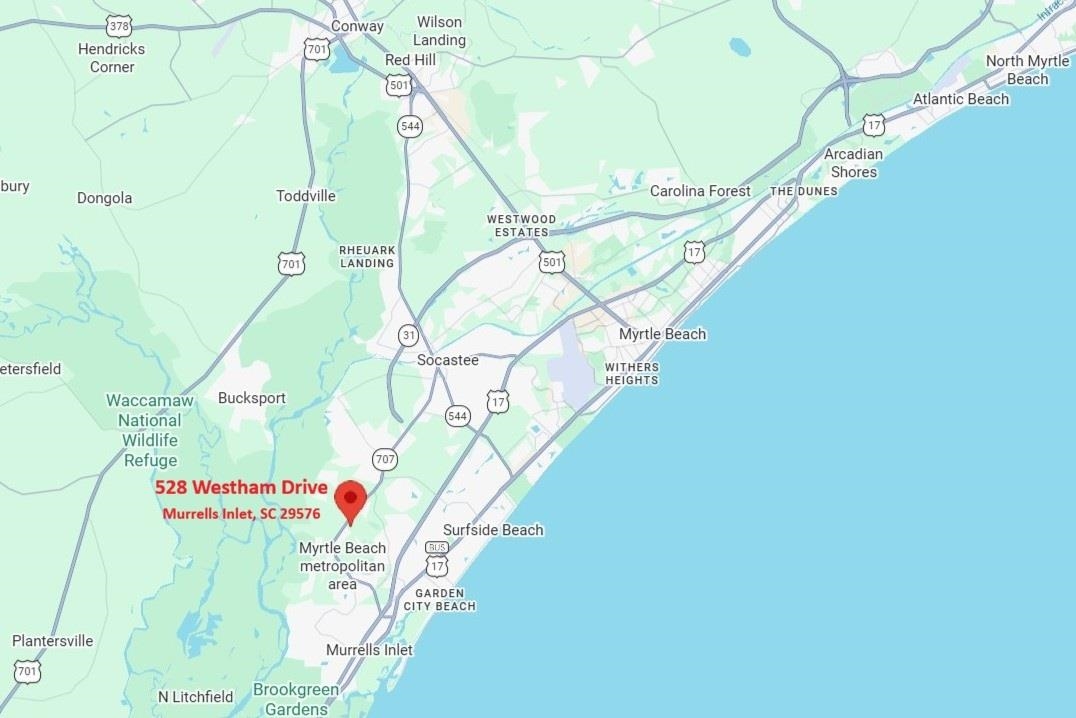 Travel South on SC Hwy 707 & pass St. James High School. Turn left onto Fenway Drive to enter the Collins Glenn neighborhood. Turn left onto Westham Drive. The home is on the right-hand side - 528 Westham Drive, MISC 29576. GPS 33.608782, -79.051756Courtesy of Re/max Southern Shores Gc - Cell: 843-450-8760
