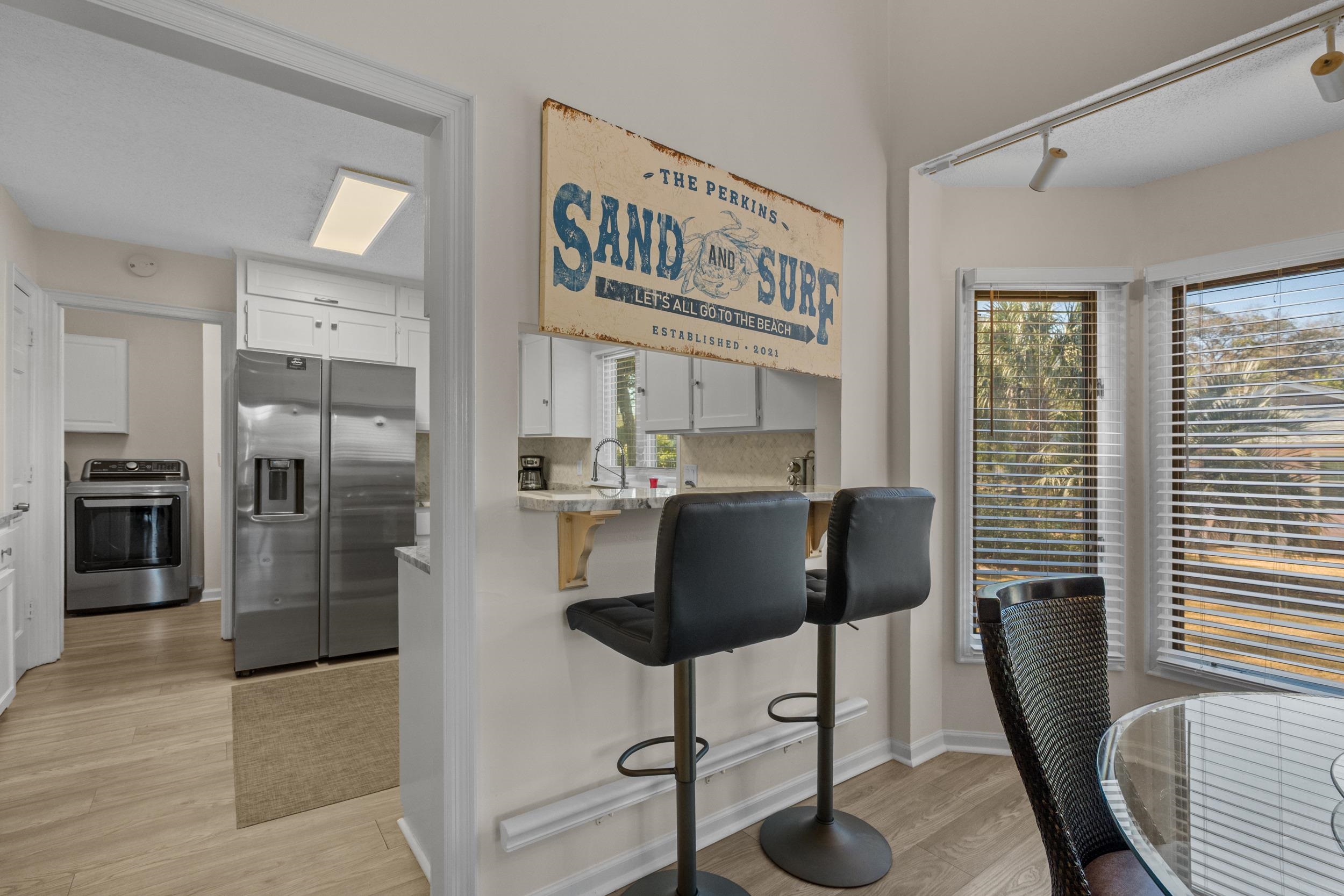 Southern charm by the coast! Welcome to Arcadian Shores, a custom community just steps to the beach where the streets are lined with trees and curb appeal. Situated on nearly a half acre lot, this well maintained home offers 4 bedrooms plus an office/flex space, 3 and a half bathrooms, vaulted ceilings, and all the natural light! The fresh modern design blends effortlessly with traditional elements like the massive stone fireplace, giving the home welcoming and cozy vibes. Love all the furnishings? This property is offered fully furnished - down to the 3 arcade games! The location within the community and large lot with completely fenced backyard provides endless options for gardening, adding a pool, or outdoor entertaining! Arcadian Shores is a unique community without rental restrictions - making this one of the few opportunities for a highly lucrative vacation home or short term rental. Lafayette Drive is located just minutes from shopping, dining, medical facilities, schools, and a short walk to the community pier and of course the sparkling Atlantic Ocean.
