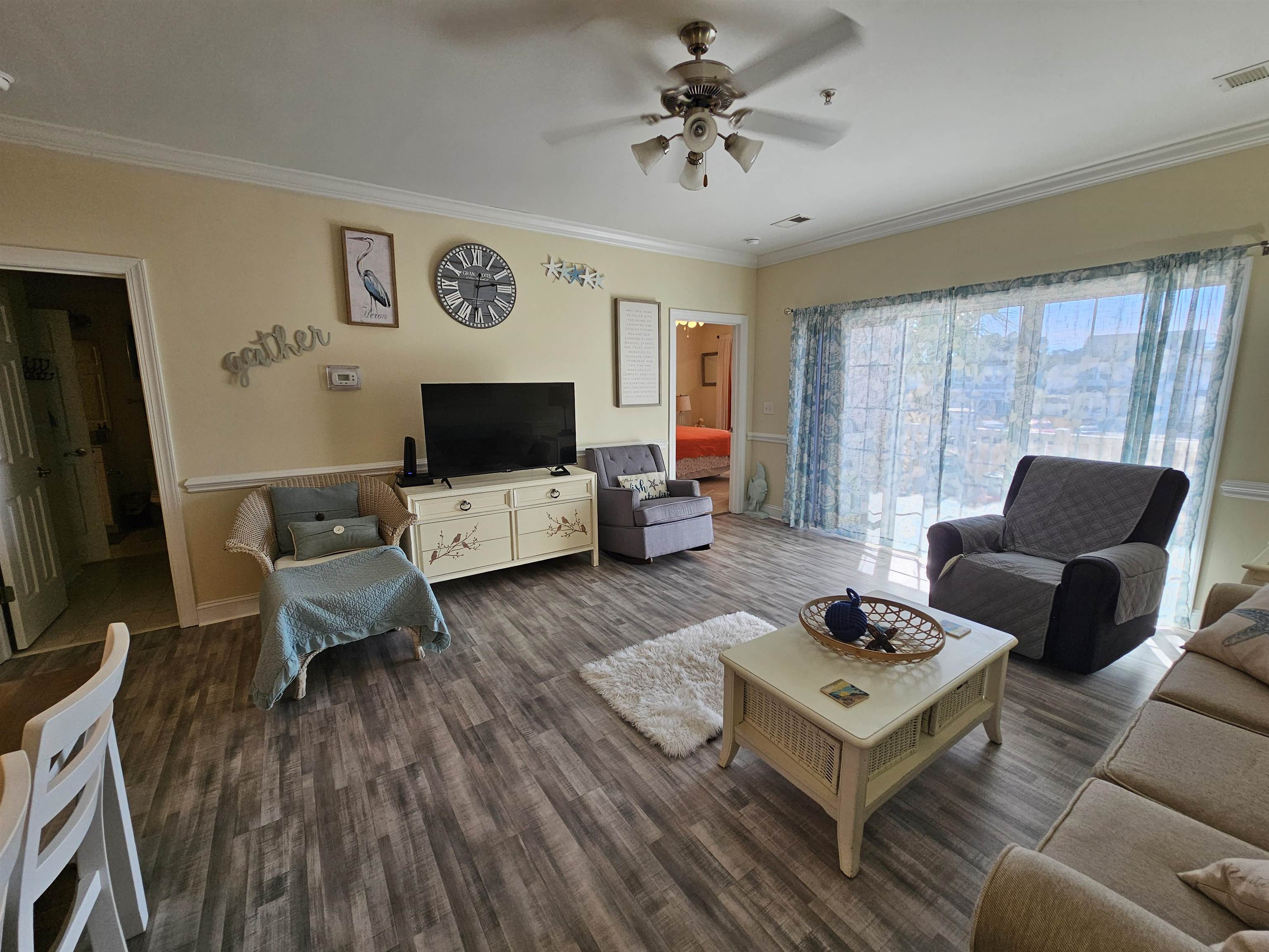 Its all about LOCATION! This beautiful two-bedroom two bath villa is in the peaceful community of The Gardens at Cypress Bay and is located on a tranquil pond next to the pool and barbecue area for easy access. This fully furnished second floor unit is located less than six miles to the beach and is close to all the restaurants, shopping and golf that Little River and the Grand Strand offer. The open floor plan provides plenty of natural light. The bedrooms are spacious and offer appeal storage space. The primary suite has views of the pond and a walk-in closet. The LVP flooring is not only stylish but low maintenance. Used as a second home with some rentals, it has been well maintained. If you are looking for a primary residence, second home or investment property, make sure to add this amazing unit to your must-see list.