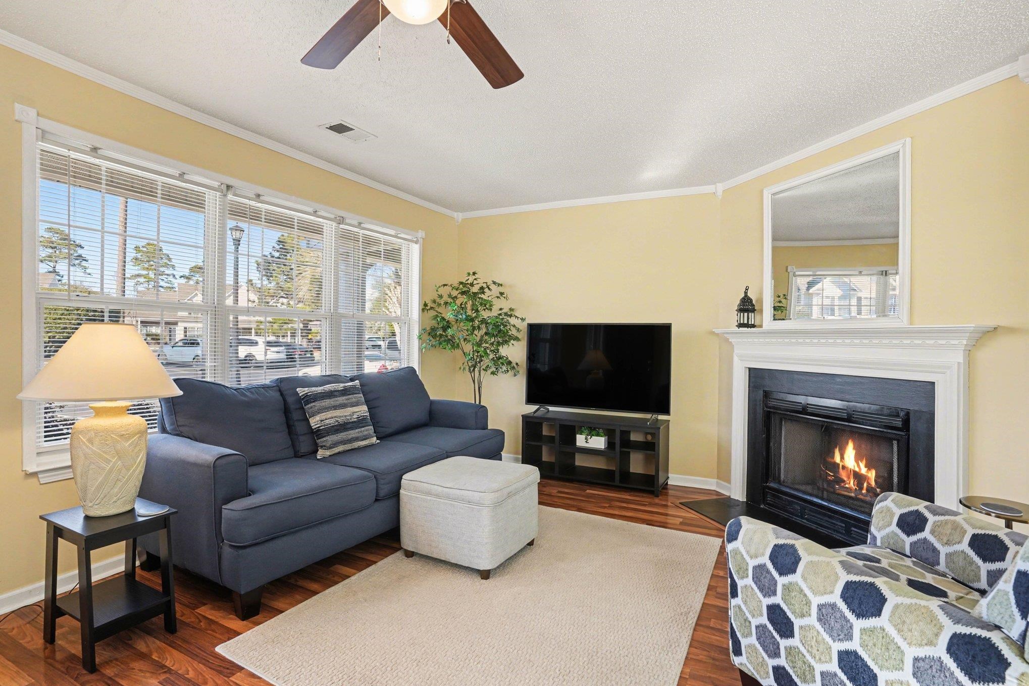 Experience comfort, convenience, and coastal charm in this beautifully furnished 3-bedroom, 2.5-bath townhome located within a short distance to the shops, dining, and entertainment of The Market Common. Inside, you'll find a bright open-concept living and dining area filled with natural light from large windows. The living room fireplace creates a warm and inviting focal point, perfect for cozy evenings. The kitchen features a convenient breakfast bar along with ample cabinet and counter space for everyday living. The main level includes a half bath for guests and a separate laundry room for added convenience and functionality. Washer and dryer replaced in 2022 are included. Upstairs, three spacious bedrooms provide comfortable accommodations, including a primary suite complete with a private bath and a generous walk-in closet. The additional bedrooms offer flexibility for guests, family, or a home office. Outdoor living is just as appealing, with a charming front porch and rear covered patio, with an additional grilling area. A fenced backyard for added privacy and an attached outside storage provides the perfect space for beach gear and seasonal items. Myrtle Beach State Park less than a mile away. Walk-in shower was installed in both bathrooms in 2023 and the HVAC replaced in 2022. Being sold furnished, this move-in-ready townhome is an excellent opportunity as a primary residence, second home, or investment property in one of Myrtle Beach's most desirable locations.