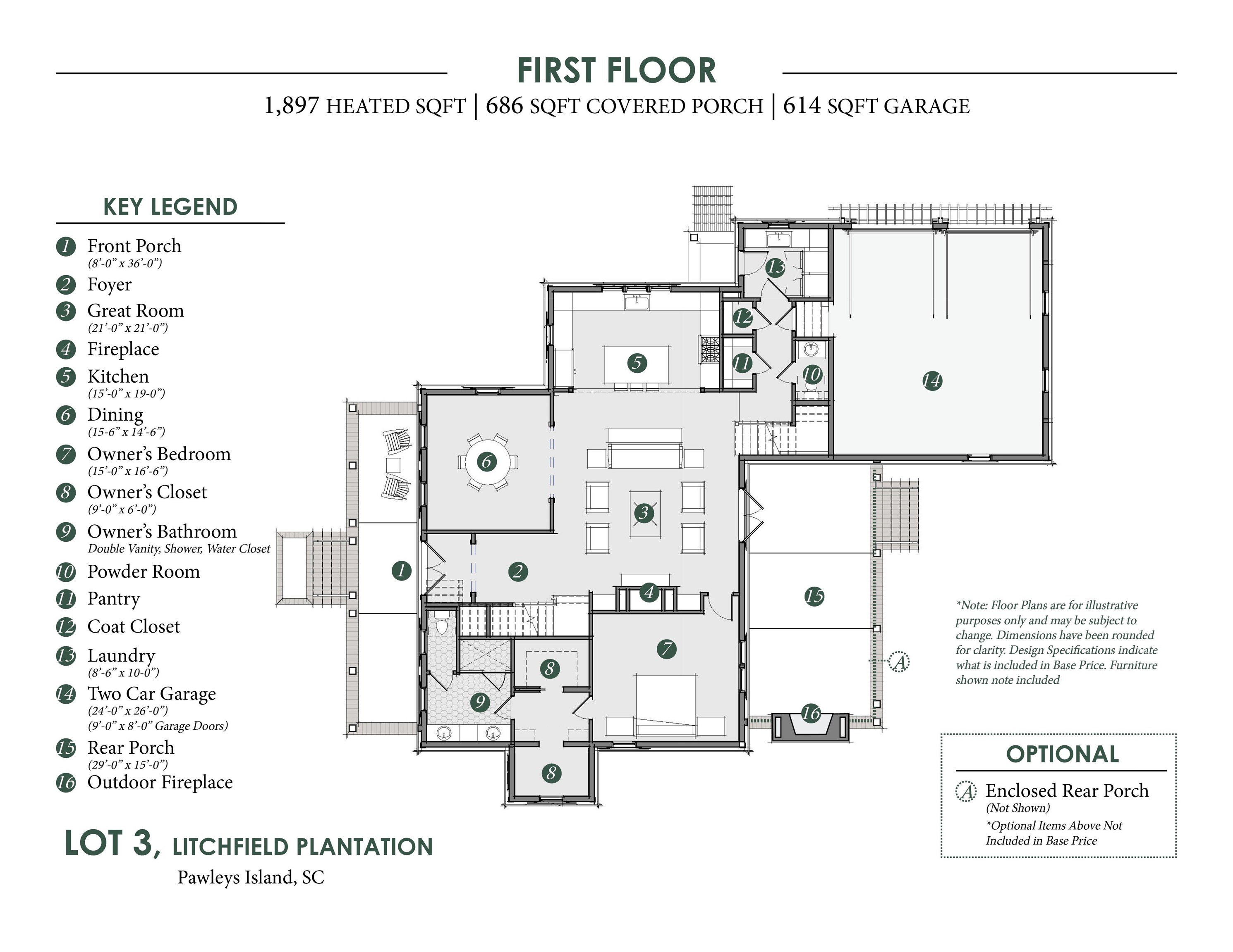 Why compromise with a tired, worn resale needing renovation and upgrades? Have the best of South Carolina Low Country Coastal Living with the purchase of this new four bedroom home designed by Goggans Architecture and constructed by Paragon Custom Construction at Lot 3 Makepeace Place in historic Litchfield Plantation in Pawleys Island SC. The Makepeace Place address provides an outstanding wooded home site on a quiet side street backing to a serene pond; but all the while, located in the heart of Litchfield/Pawleys Island, SC. A beautiful circular drive provides a captivating entrance to the property with an inviting covered front porch sheltering access to the home thru handsome double doors opening to a lovely formal foyer. Impeccable design creates a beautiful low country coastal home that features a warm, open floor plan with spacious gathering areas of the living, dining and kitchen areas all flowing to a phenomenal rear porch overlooking the yard, pond and natural wildlife of the area. This main living area is anchored by a stunning chefs kitchen with Bosch stainless appliances, a 6 burner Bosch gas oven, beautiful semi custom cabinets, solid surface counter tops, and a wonderful large island over looking the main living area. The first level of the home conveniently includes a spacious primary bedroom suite with two large walk-in closets and ensuite bath featuring double vanity, large shower and private water closet. Goggans Architecture design provides many extras with a beautiful fireplace in the Great Room, engineered wood flooring, elegant stairways with metal pickets and 10"" ceilings thru out the first floor. Just up the main stairs of this lovely home are 2 large bedrooms each with private bath with gracious closets and storage plus a delightful sitting/TV area. Additionally, a finished bonus/ office/ 4th bedroom with ensuite bath is located up the interior back stair over the garage. Other features of this spectacular home include a side load 2 car garage, large laundry/mud room, coat closet, pantry and powder room. With all this, your favorite ""room"" in the house may well be the broad rear porch with space for dining and gathering around a beautiful wood burning fireplace. Just a few of the other pluses of a a Goggans/Paragon Home include: 10"" ceilings on the main level, raised slab foundation, 2""x 6"" exterior framing, fiber cement siding, tankless water heater, 16 seer HVAC, beautiful engineered wood and tile flooring, low E insulated windows, solid surface counter tops, semi-custom cabinetry, irrigation, professional landscaping....and so much more! Homeowners of Litchfield Plantation enjoy the best in low country living exemplified with entrance by the gate house down the magnificent Avenue of the Oaks to the old Plantation House which now serves as the neighborhood Club House. Other wonderful amenities include swimming pool complex overlooking the rice fields, private ocean front beach house at Pawleys Island, and a marina with access to the ICW / Waccamaw River. Litchfield Planation is located with easy access to all the laid-back lifestyle of Pawleys Island with great shopping, sumptuous restaurants, terrific golf just outside the gates. All the fun of Myrtle Beach is located just 20 miles north and the historic beauty of Charleston SC only 60 miles south.