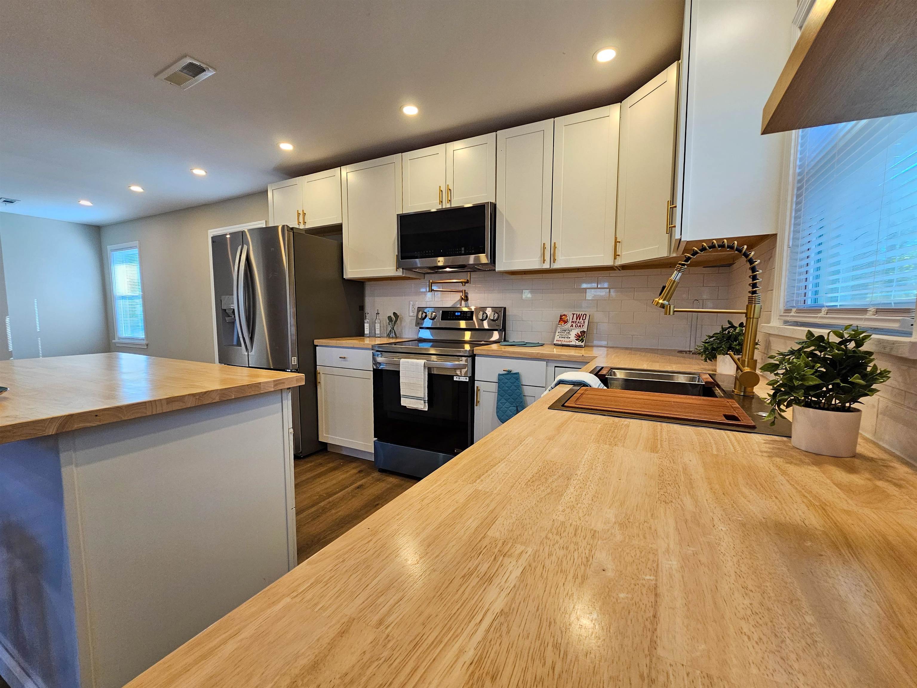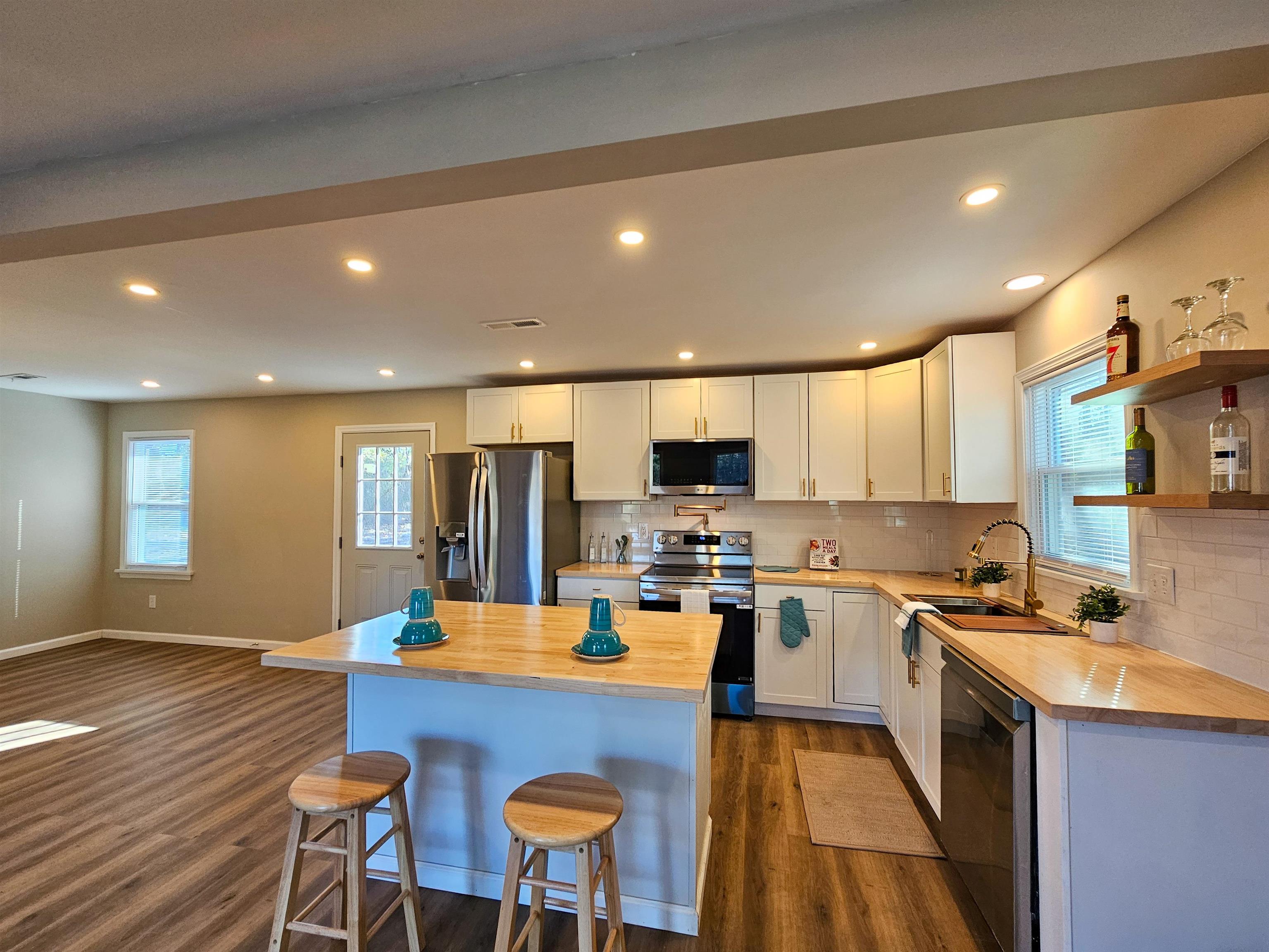 Welcome home to peaceful country living just outside the Marion city limits! This beautifully renovated brick home sits on a sprawling 1.18-acre lot, offering the space and privacy youve been searching for with all the upgrades already completed for you. Step inside to discover brand-new wood laminate flooring flowing seamlessly through the living room, kitchen, dining area, hallway, and all three bedrooms. The fully updated kitchen is both stylish and functional, featuring new stainless steel appliances (refrigerator, range, microwave, and dishwasher), sleek new cabinetry, butcher block countertops, a center island, and an upscale modern faucet making meal prep efficient and enjoyable. Both bathrooms have been thoughtfully remodeled with new tile floors and updated vanities. The spacious primary suite features a beautifully tiled walk-in shower, while the guest bath offers a tub/shower combo plus a convenient washer and dryer hookup stackable units make this an ideal space-saving solution. Additional upgrades include new windows, a new heat pump, and a new roof giving buyers peace of mind for years to come. The water heater is conveniently located in the attached exterior storage building for added functionality. Relax on the cozy front porch or step out back onto the patio and unwind while enjoying the open country setting. The landscaped yard offers room to roam, garden, entertain, or simply enjoy the outdoors. Even better this home is USDA eligible for 100% financing, making homeownership more attainable than ever. Move-in ready, fully updated, and perfectly positioned for quiet country living this one checks all the boxes.