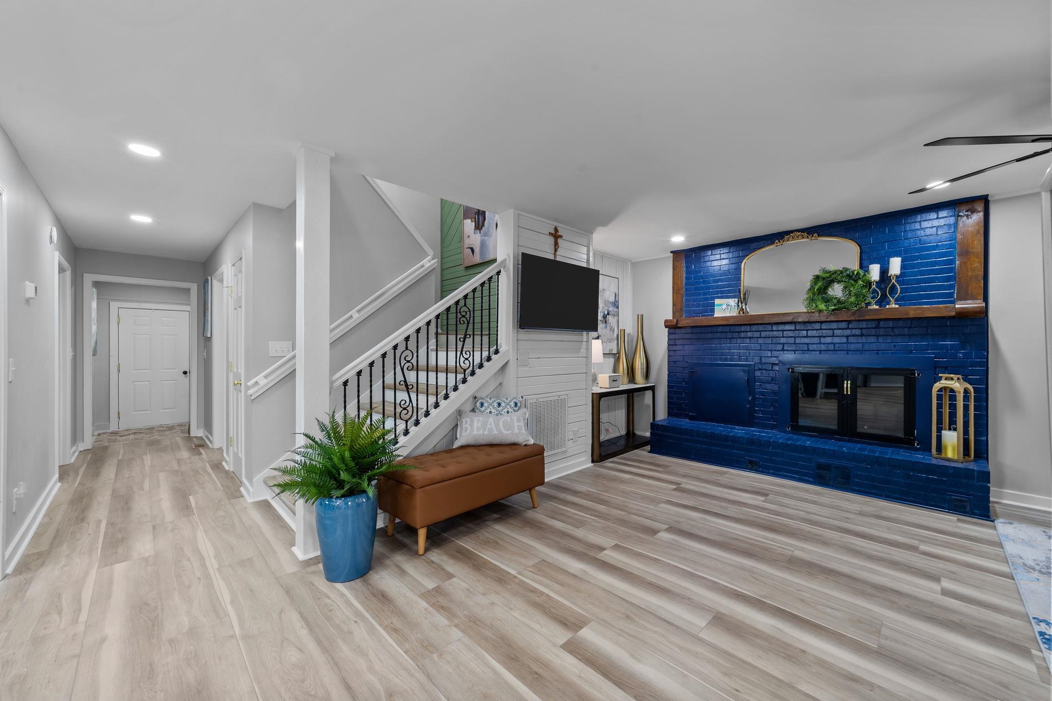 Freshly updated and fully furnished, this spacious North Myrtle Beach home offers exceptional comfort, style, and versatilityperfect as a primary residence, vacation getaway, or investment property. Just blocks to the beach. Designed to sleep up to 18 guests, this sizable home features an elegant open-concept layout with quartz countertops, a JennAir range, accent walls, and a cozy fireplace that anchors the inviting living space. The home offers 5 bedrooms and 4 full bathrooms, thoughtfully arranged across two levels. Upstairs features three bedrooms, including a primary suite, plus two full baths. One oversized upstairs bedroom includes a seating area and comfortably sleeps six, while another bedroom offers two queen beds and generous closet space. Downstairs includes two additional bedrooms, including a second primary suite with a stylish accent wall, along with two full bathrooms. The bonus room showcases rich, dark tones, a TV lounge area, which affords a relaxed, comfortable atmosphere ideal for entertaining. Beautiful brick paver flooring adds character in the rear entry, while luxury plank vinyl flooring runs throughout most of the home. Several bathrooms feature pocket doors for added space and convenience. Additional highlights include: Pull-down attic storage, storage space under the stairs, artwork throughout, vinyl siding exterior, Bahama shutters on most windows, detached one-car garage with dedicated shop area, expansive driveway accommodating up to 8 vehicles. Located in highly sought-after North Myrtle Beach and just minutes from the ocean, this property offers outstanding flexibility and income potential. Whether youre looking for a full-time residence, vacation retreat, or rental investment, this beautifully updated home is ready to impress. Schedule your showing today!