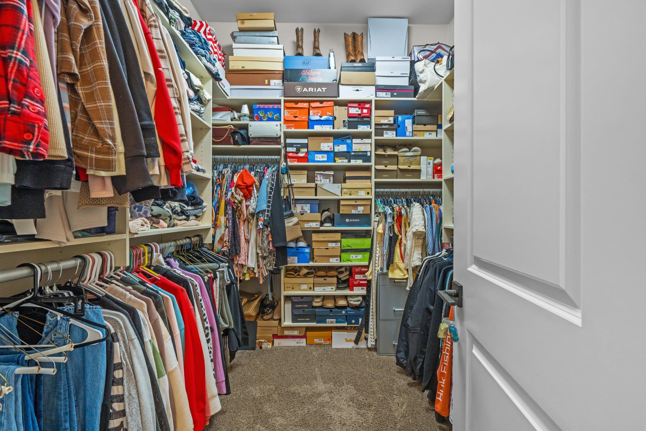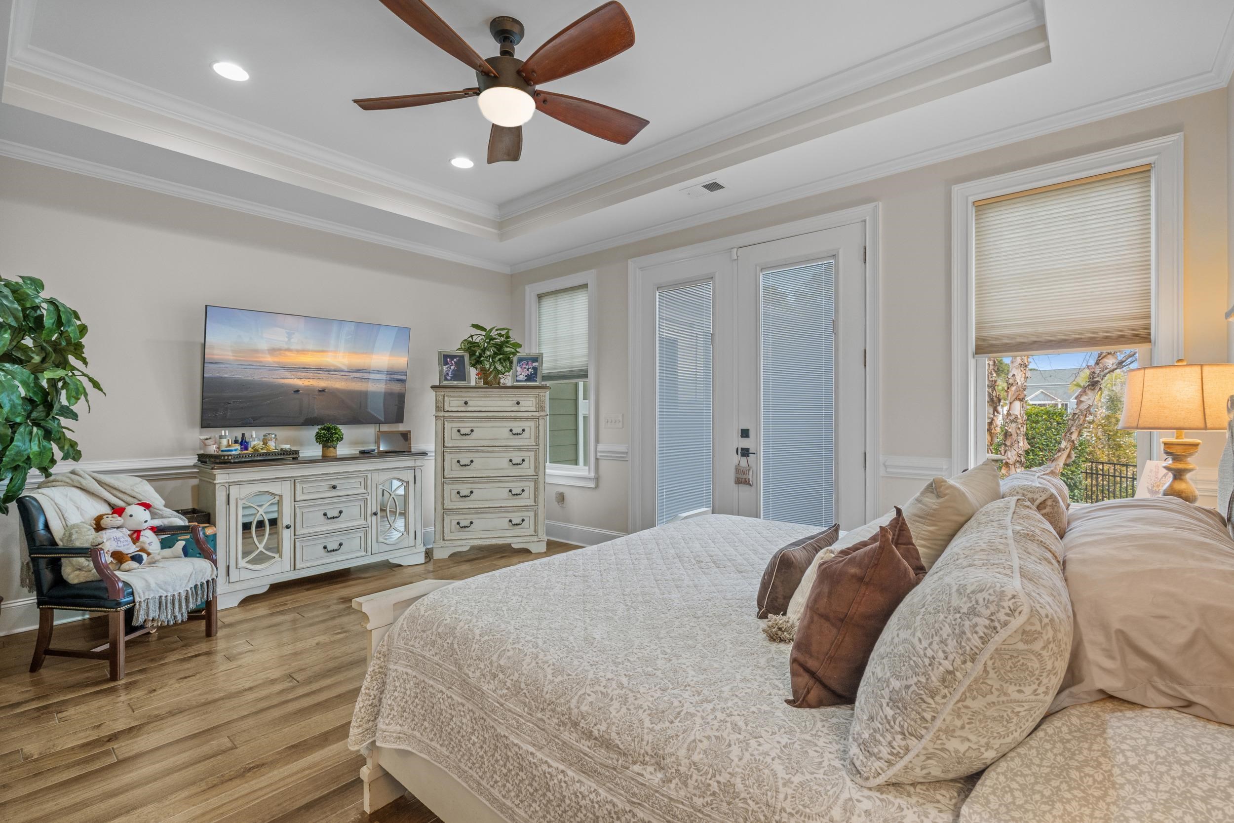 PrimaryBedroom: TrayCeilings, CeilingFans, MainLevelPrimary, WalkInClosets