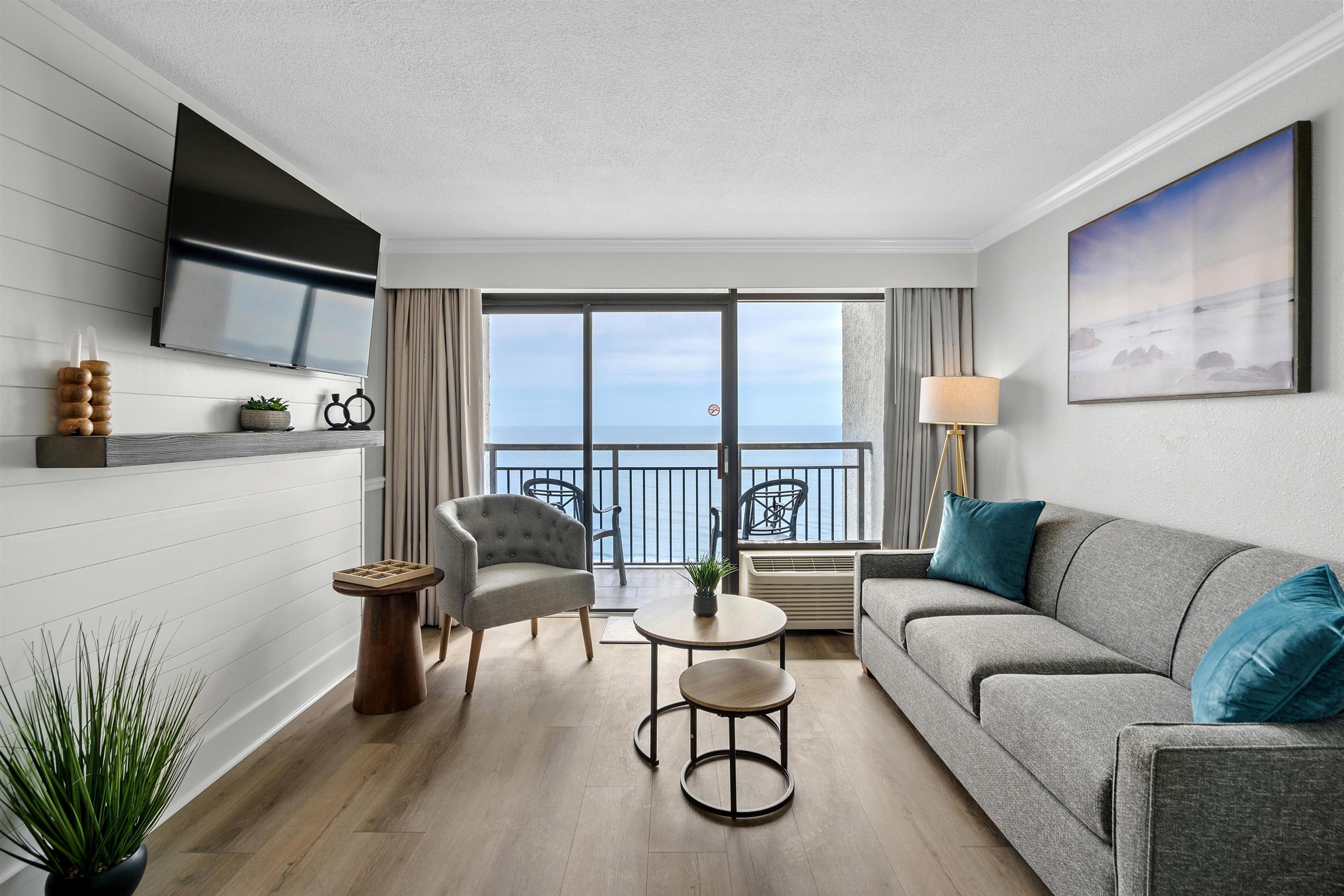 **Stunning Oceanfront 1 Bedroom Condo - Your Beach Getaway!** This beautifully updated 1 bedroom, 1 bathroom oceanfront condo offers breathtaking views and a luxurious coastal lifestyle. Walking through your notice granite countertops in both the kitchen and bathroom, complemented by luxury vinyl plank flooring throughout. With Modern furnishings, this condo features a Murphy Bed, perfect for accommodating guests while maximizing space. Enjoy the convenience of being within walking distance to fantastic restaurants and shopping, making every outing a delightful experience. Dive into relaxation with access to multiple outdoor pools and hot tubs, plus an inviting indoor pool for year-round enjoyment. Kids (and adults) will love the on-site waterpark, providing endless fun right at your doorstep! With direct beach access, you can soak up the sun and listen to the waves anytime you please. Dont miss out on this incredible opportunity to own your piece of paradise!