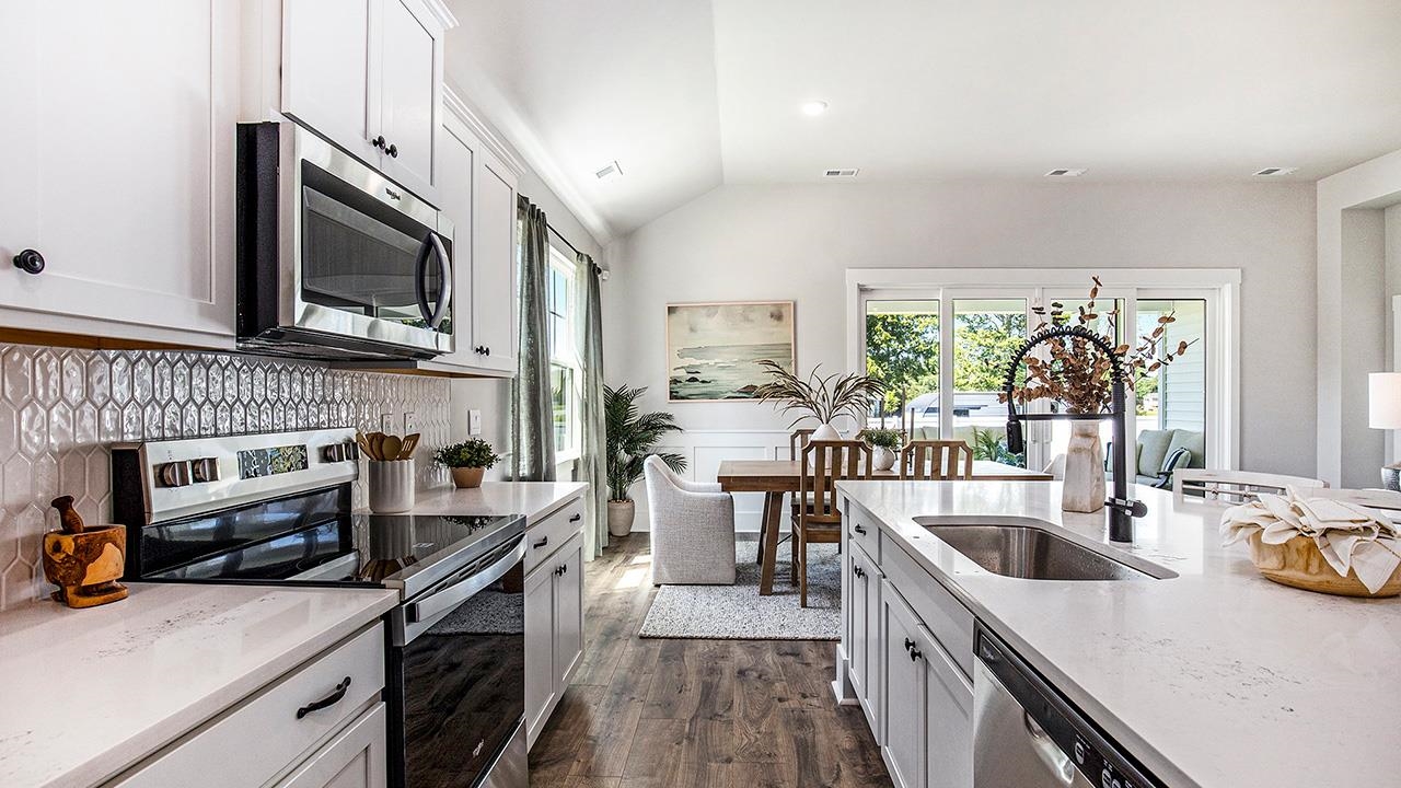 The Litchfield Plan - Where Style Meets Smart Living Welcome to The Litchfield, a thoughtfully crafted single-level home blending comfort, elegance, and modern convenience. From the moment you step onto the inviting front porch, youll feel the warmth and charm that make this home so desirable. Step inside to a stunning open-concept layout featuring soaring 11' ceilings, a spacious great room, and a seamless flow into the gourmet kitchen and dining area. Perfect for entertaining or everyday living, this space is filled with natural light thanks to a 4-panel sliding glass door that opens to a covered rear porchan ideal spot to relax and enjoy the outdoors. The chef-inspired kitchen is both stylish and functional, boasting a large island with breakfast bar, granite countertops, stainless steel appliances, and a corner walk-in pantry for all your storage needs. The private owners suite, tucked away at the back of the home, is a true retreat. Featuring a tray ceiling, dual walk-in closets, a double vanity, separate linen closet, and a luxurious 5' tile shower, this suite offers space and serenity. Three additional bedrooms are thoughtfully positioned at the front of the home to provide separation and privacy. This home has a spacious 2-car garage with opener. And with Americas Smart Home technology package included, youll enjoy ultimate convenience and peace of mindcontrol your thermostat, front door light and lock, and video doorbell right from your smartphone. The Litchfield Plan - Timeless design. Smart living. Welcome home. *Photos are of a similar Litchfield home. (Home and community information, including pricing, included features, terms, availability and amenities, are subject to change prior to sale at any time without notice or obligation. Square footages are approximate. Pictures, photographs, colors, features, and sizes are for illustration purposes only and will vary from the homes as built. Equal housing opportunity builder.)
