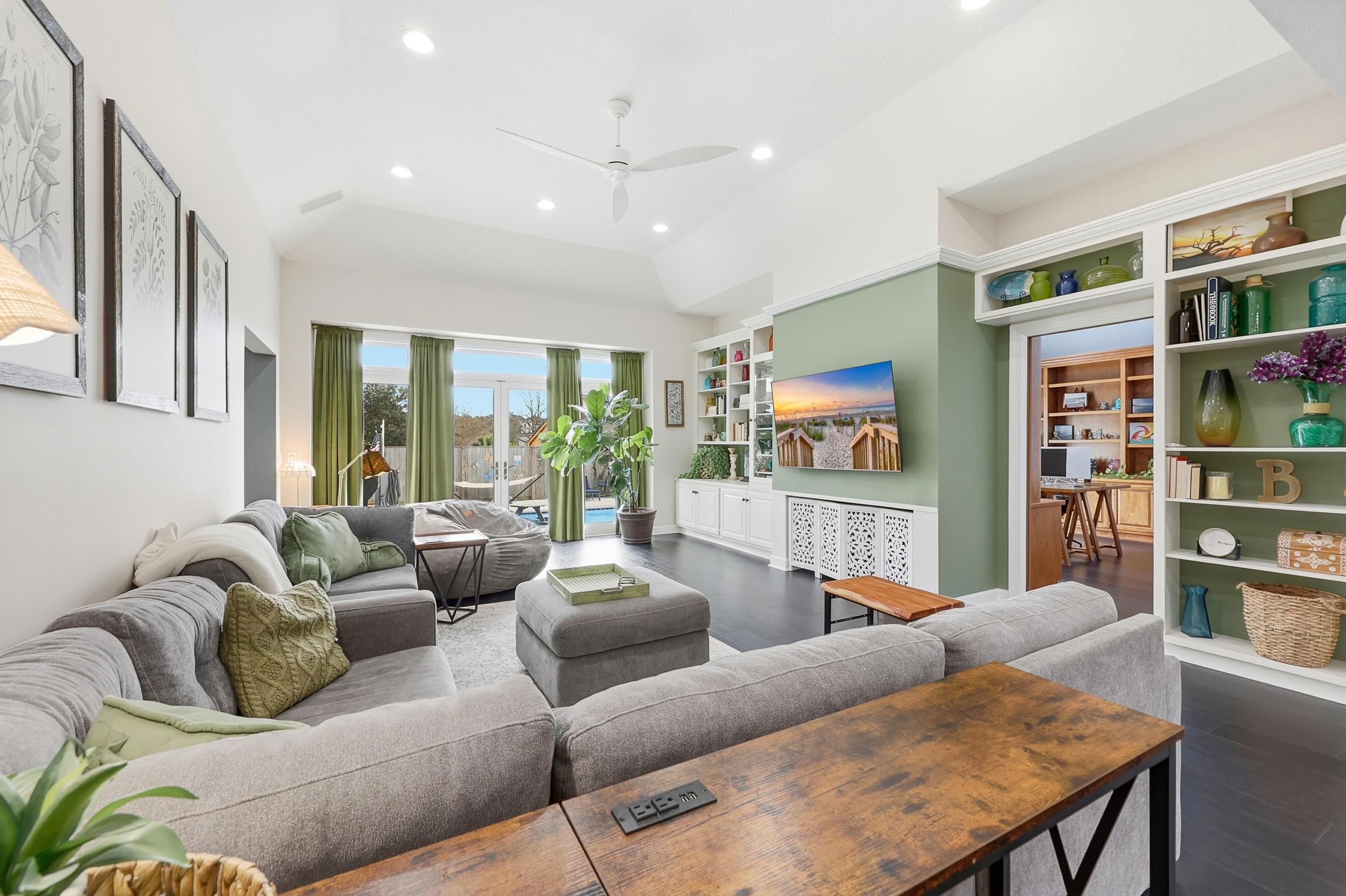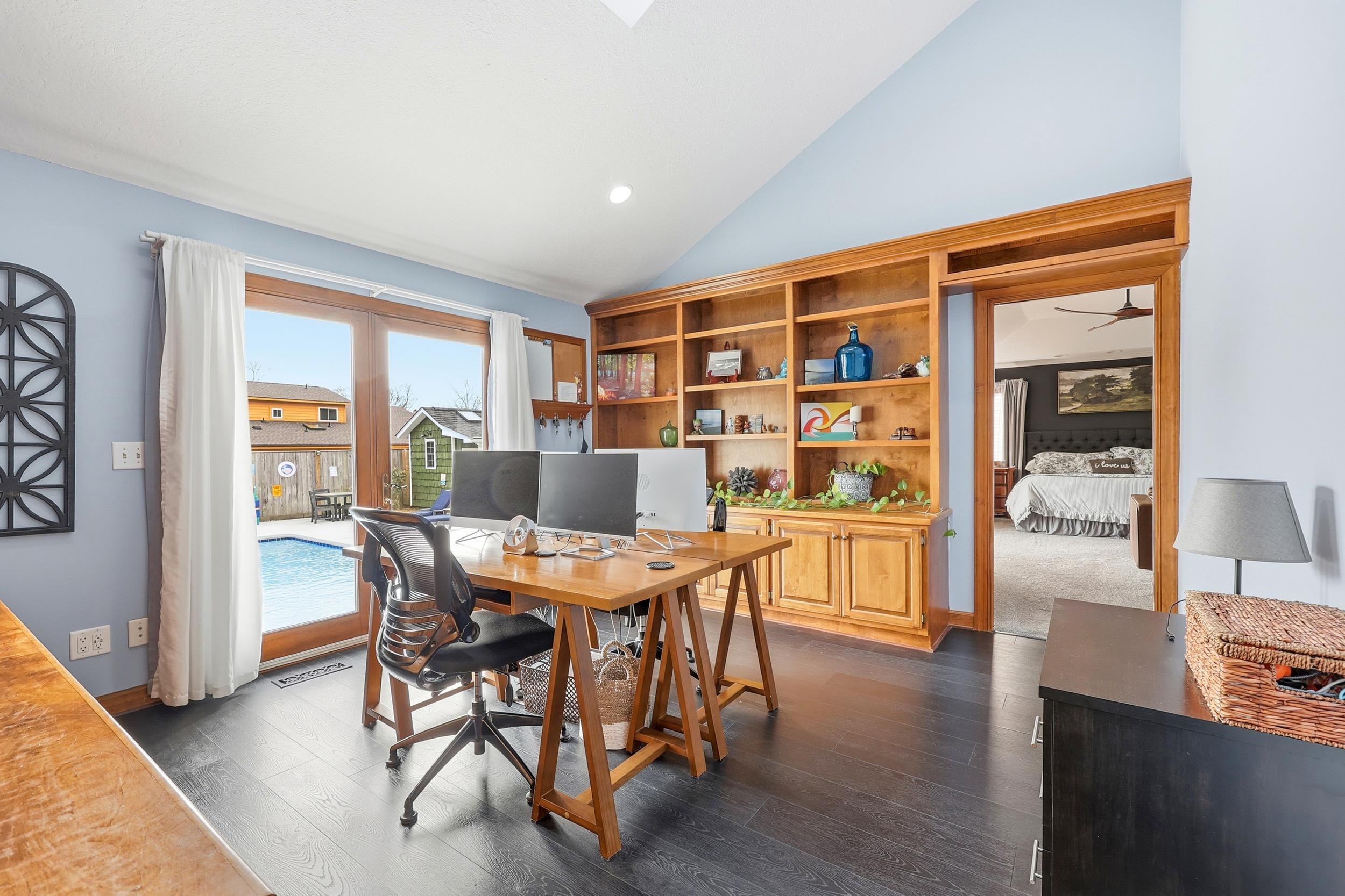 Welcome to 4496 Wedgewood Dr. in the highly desired Cedar Creek waterway community. This impressive 3-bedroom, 3.5-bath home features two primary suites. The main-floor suite includes dual walk-in closets and a spacious bath, while the upstairs suite features a sitting area, custom cabinetry, and walk-in attic storage. A loft area provides additional living space and could serve as a fourth bedroom or office. The home offers a large kitchen with all new appliances, quartz countertops, a pantry, and spacious laundry room. Enjoy the living room with built-ins, whole-house surround sound audio, plus a sunroom and workshop. Step outside to a private backyard retreat with a 16,000 gallon saltwater pool (updated in 2022), deck (which was updated in 2025), outdoor bath, storage shed, and irrigation system. Additional highlights include a two-car garage with overhead storage. Additional upgrades include an added EV charger outlet, privacy fencing for the entire backyard, a garden shed & pool shed, and more! (See Features sheet in Documents)