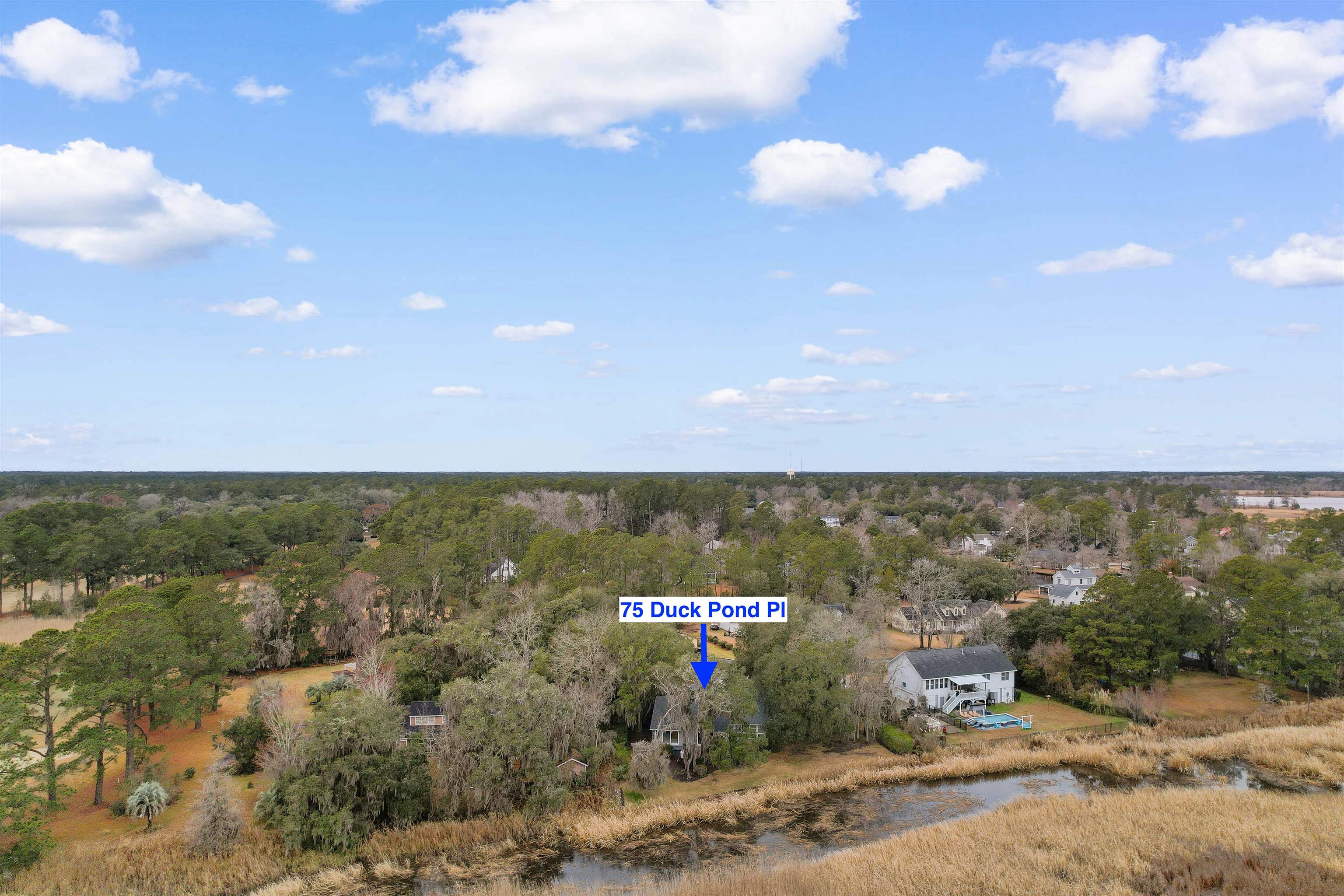 AMAZING MARSH VIEWS! Lovely contemporary style home here at 75 Duckpond Place in coastal Georgetown, South Carolina. This impressive home is located in popular Wedgefield Country Club and is situated at the end of the cul-de-sac on a .60 acre lot with incredible panoramic marsh views, circular driveway and just seconds from the community boat ramp. The yard is breath taking and has been beautifully maintained showcasing live oaks, azaleas, magnolias and so much more, plus offers an extended driveway for guest parking, two car garage and a rear deck perfect for grilling/relaxing in the sunshine. When you enter the front door your eyes will immediately be drawn out to the wall of windows and the marsh view beyond. The spacious great room has vaulted/beamed ceilings, two sided fireplace and opens to the dining area and large kitchen with granite countertops, custom cabinets, breakfast bar, nook, pantry, wet bar, stainless appliances and six burner gas cooktop. Duckpond is a split bedroom floorplan and features three bedrooms, two baths, a potential office space, and a cozy sun room. The owners suite looks directly out over the marsh - imagine waking up to this view everyday! Also featuring a fireplace, double closets and ensuite with large tiled shower, garden tub, vanity, double sinks, built-ins, sky light, and water closet with it's own bidet. Also very important to note is the brand new roof, freshly painted great room and bedrooms, and new fans throughout! Wedgefield is an active community lined with amazing moss draped live oaks and designed with it's very own public 18 hole golf course and a boat landing into the Black River. Enjoy entertainment and a burger at the onsite Brick House Pub, an easy golf cart ride from home. Close to historic downtown Georgetown waterfront Harbor Walk, shopping, wonderful restaurants, fresh seafood vendors, and access to five rivers that surround the area with an easy drive to Pawleys Island, the closest beach access. *Buyer is responsible for verifying square footage of home, lot size and HOA information.