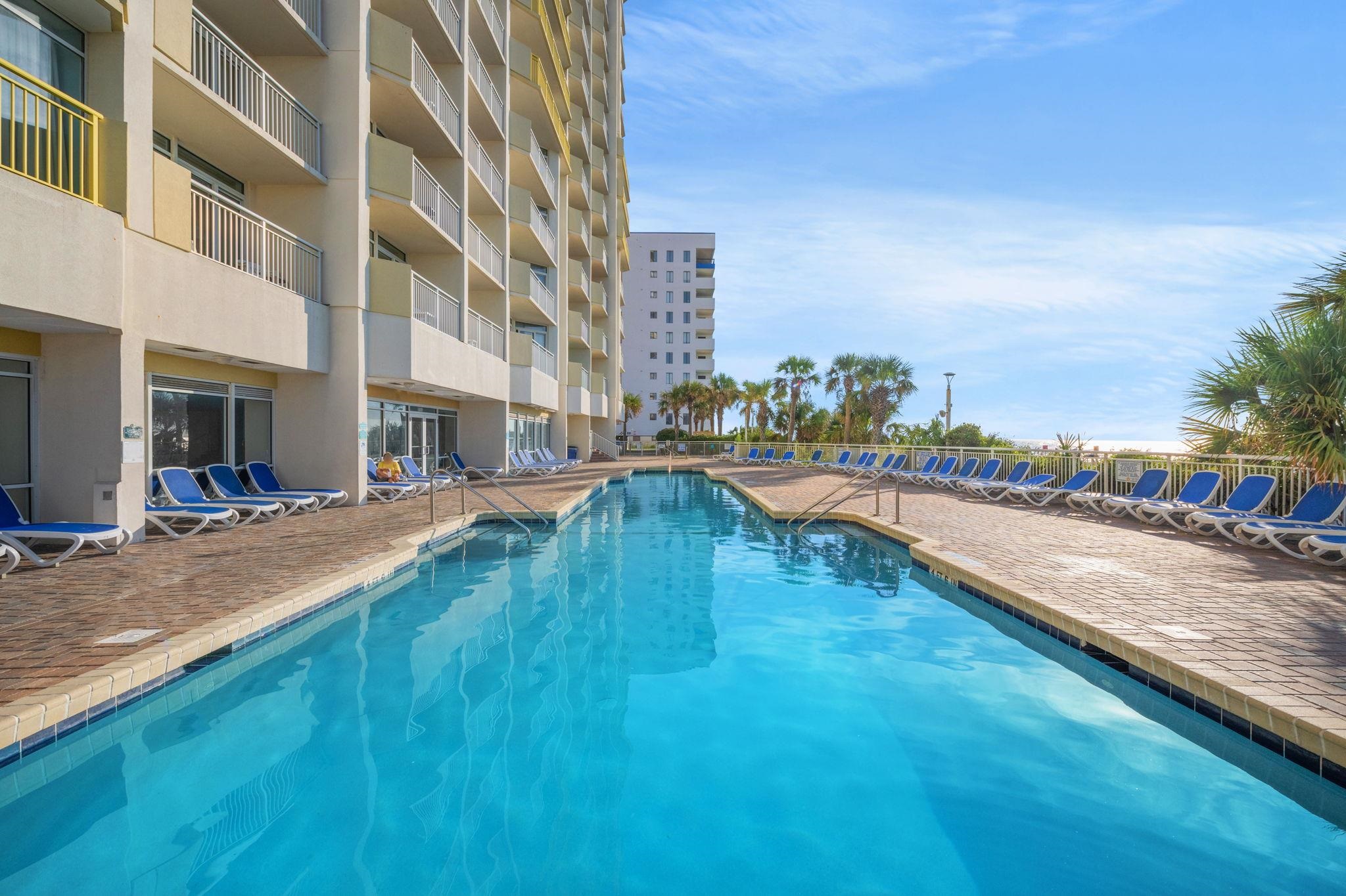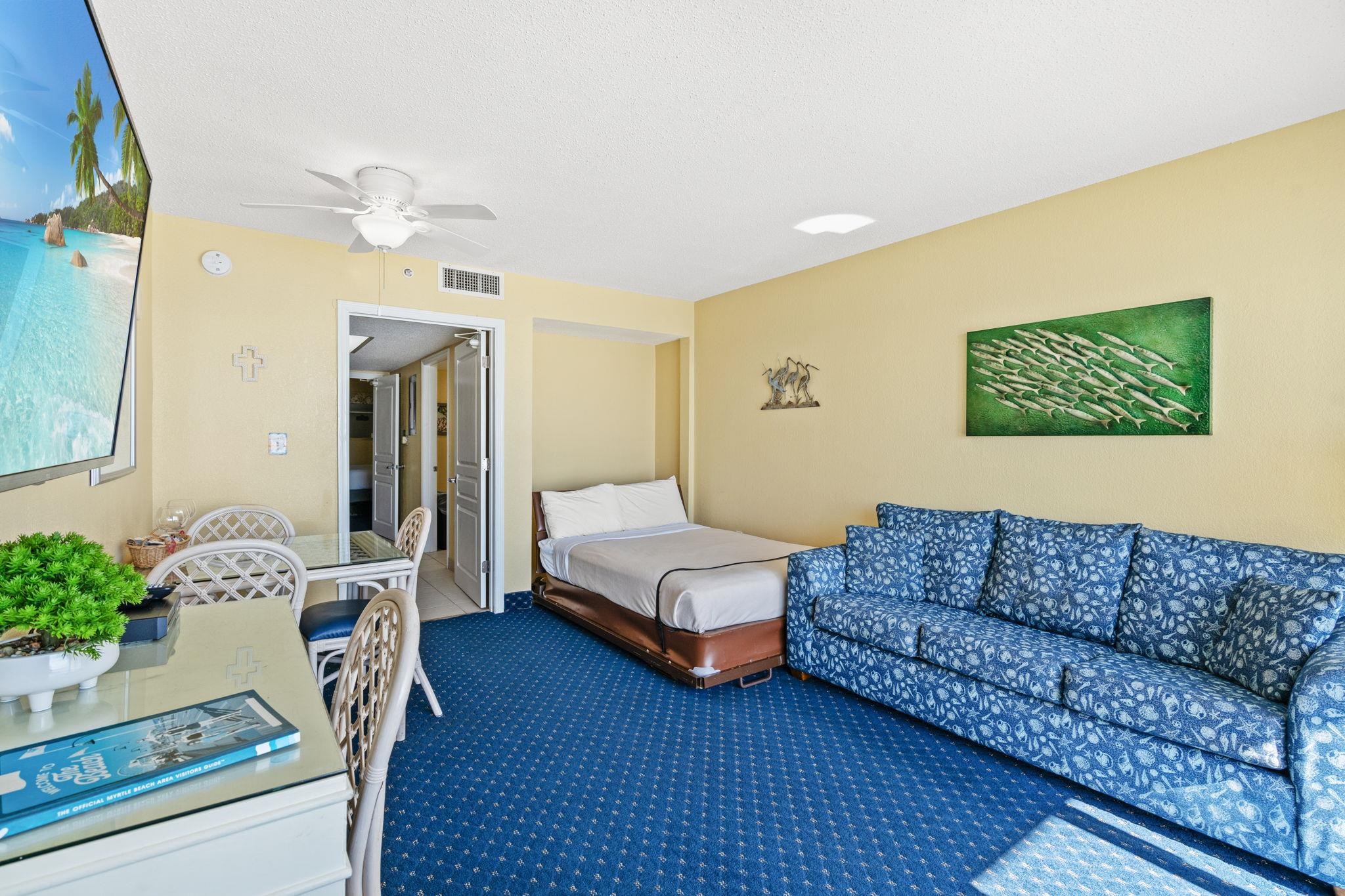 This Floorplan offers 2 separate bedroom/sleeping areas - a King bed in one and a Queen sleeper and Full Murphy Bed on the oceanfront! PLUS UPDATES GALORE!!! Brand NEW HVAC - READY to be Registered to the new owner for a full 10 year warranty if you act FAST! Recently replaced living/dining furnishings, decor, draperies, bedding - this unit has SO Much Space Including a Custom Owners Closet which most units don't have! Refreshed cabinetry, butcher block kitchen counters and hardware, new faucet and all black recently replaced appliances complete the look! Superb Rental Investment Potential! This is a great value to be able to own an oceanfront unit in the North Tower of Baywatch Resort! Don't delay! It is definitely time to come and enjoy sitting on your balcony for the morning coffee and/or the evening cocktail! Relax and spend your time sunbathing or swimming in one of the many Baywatch oceanfront pools! Take a stroll on the beach and enjoy the fresh air and balmy breezes! Baywatch is a much sought after high rise resort with indoor and outdoor pools, exercise room, lazy rivers, hot tubs, tiki bar, sports bar, and full service restaurant! Stay and Play! Perfect for families, friends, golf groups! Oceanfront Luxury, Utilities Included, and Incredible Amenities! This is a Must See!!