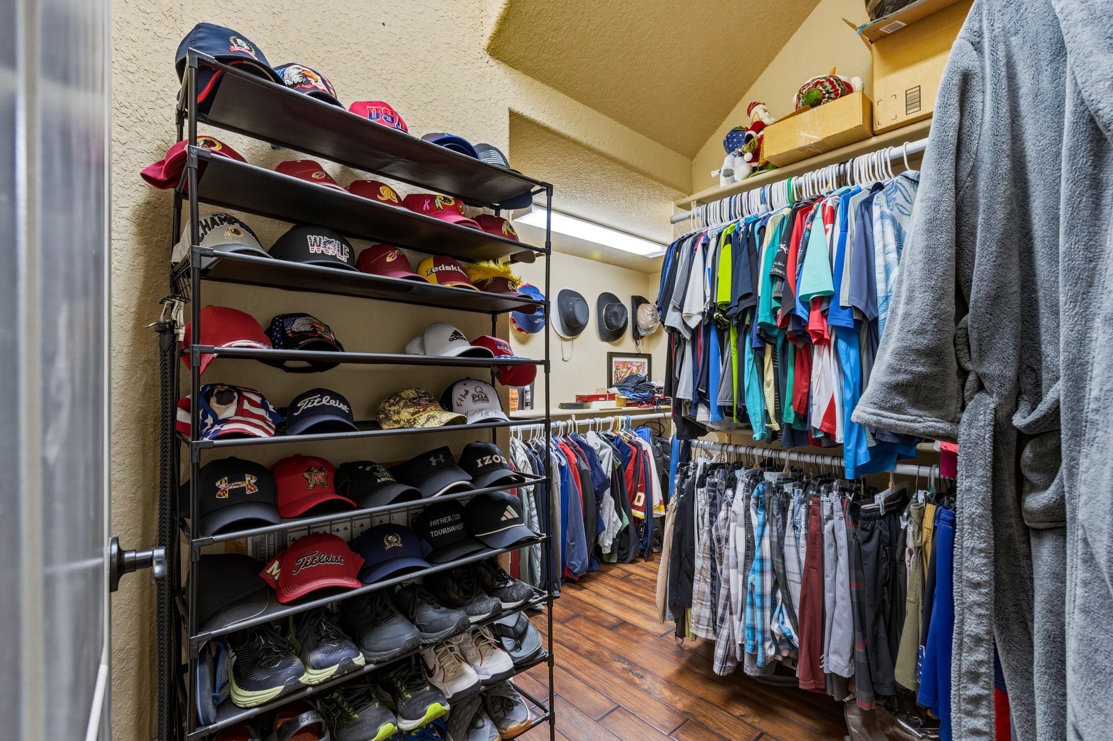 PrimaryBedroom: TrayCeilings, CeilingFans, MainLevelPrimary, WalkInClosets