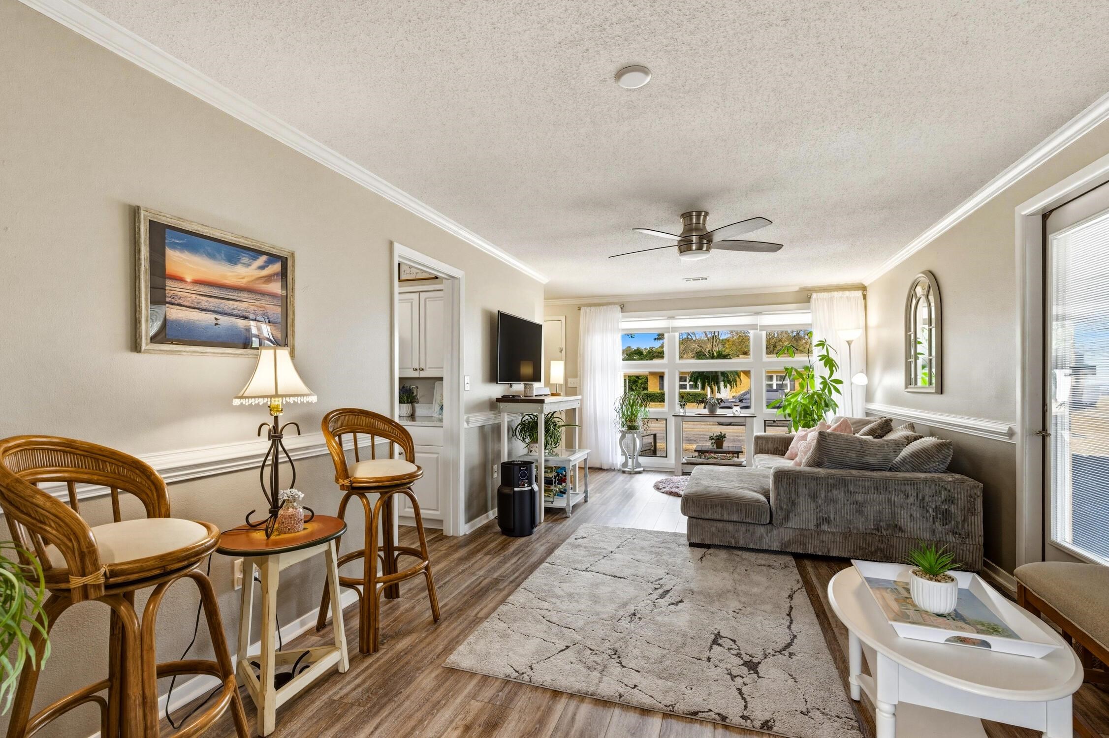 Dont let the exterior fool you.This is not your typical Seagate Village house. Nestled in a quaint tree lined neighborhood just steps from the beach and across from Myrtle Beach State Park, this charming residence shows a perfect blend of coastal living and low maintenance ease. From the moment you arrive, youll sense theres something special here. Inside the home features three well appointed bedrooms, including a spacious primary suite with sliding glass doors that open to a beautifully landscaped community lawn-HOA takes care of all landscaping as well as outside of your home. Virtually maintainence free. The interior has been totally renovated making it move in ready.The open layout bathes the home with plenty of natural light. The updated kitchen has expansive natural stone countertops and abundant cabinetry with stainless appliances great for everyday living and entertaining. Crown molding throughout adds timeless detail.All custom window treatments come with the house. A double wide driveway for plenty of parking as well as a carport with ceiling fan and attached storage shed. Located just down the street fron a large dog park and moments from the sand and scenic walking trails, this home has an unbeatable location paired with comfort , character and convenience. This is a hidden gem that must be seen to be appreciated.