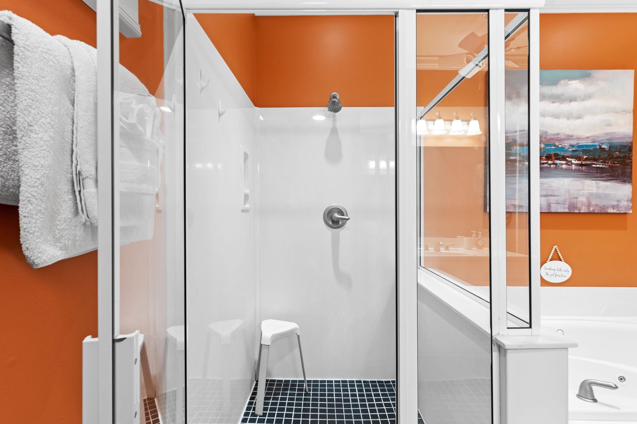 PrimaryBathroom: GardenTubRomanTub, SeparateShower, Vanity