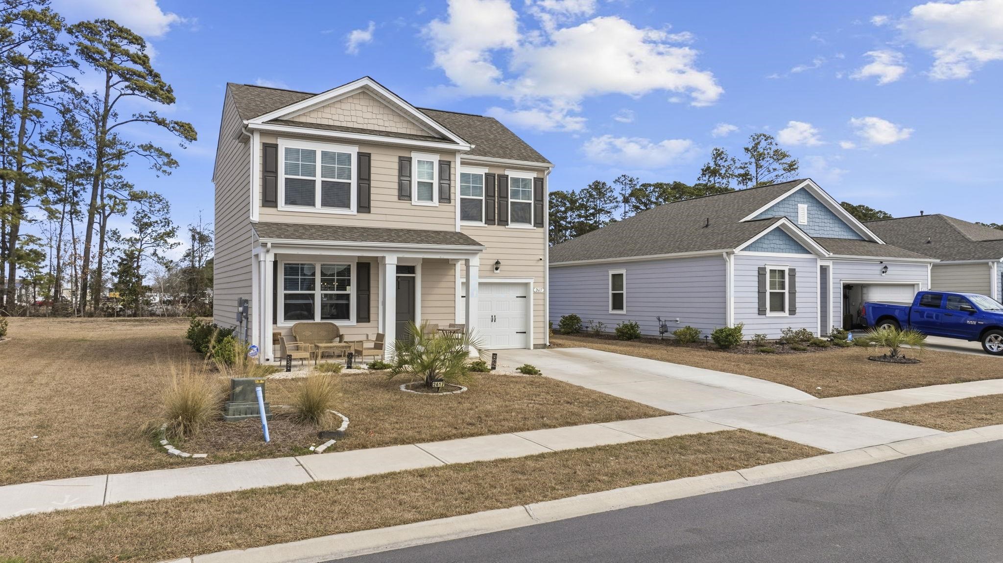 Open House April 16th 11am-1pm. Rare opportunity to own one of the few Rachel floor plans in the natural gas community of Summit at Meridian, located in the desirable Market Common area. Step inside this 3-bedroom, 2.5-bath home and find luxury vinyl plank flooring throughout. You will be greeted by a welcoming entry featuring a built-in hall tree, perfect for dropping bags and shoes after a day out. The living room draws you in with a custom accent wall, creating a warm and stylish space to relax with friends and family. This home was designed with everyday living in mind. The custom pantry with a charming barn door makes organizing groceries simple, while the semi-custom laundry cabinetry with upgraded backsplash and countertop creates a more functional space. Smart home features add convenience and modern functionality, allowing you to easily control key elements of the home from your phone or smart device. Upstairs, three spacious bedrooms offer flexibility for guests, a home office, or extra living area. The primary suite feels like a retreat, with vaulted ceilings and an ensuite bathroom that includes a large custom linen closet for added storage. Outdoors, you will enjoy the large rear patio with hot tub hookup that is perfect for entertaining or unwinding after a day at the beach. The extended front patio adds a cozy seating area for additional outdoor living space. A widened driveway and spacious 1.5-car garage provide extra parking and storage for bikes, a golf cart, or beach gear. Living in Summit at Meridian means enjoying resort-style amenities including a pool, hot tub, pickleball court, fire pit, and more. When you want to explore, youre just minutes from Market Commons dining, shopping, parks, walking trails, Myrtle Beach State Park, and even a short golf cart ride to the beach. Home warranty is included for peace of mind. Some photos have been virtually staged. Seller is a licensed South Carolina real estate agent.