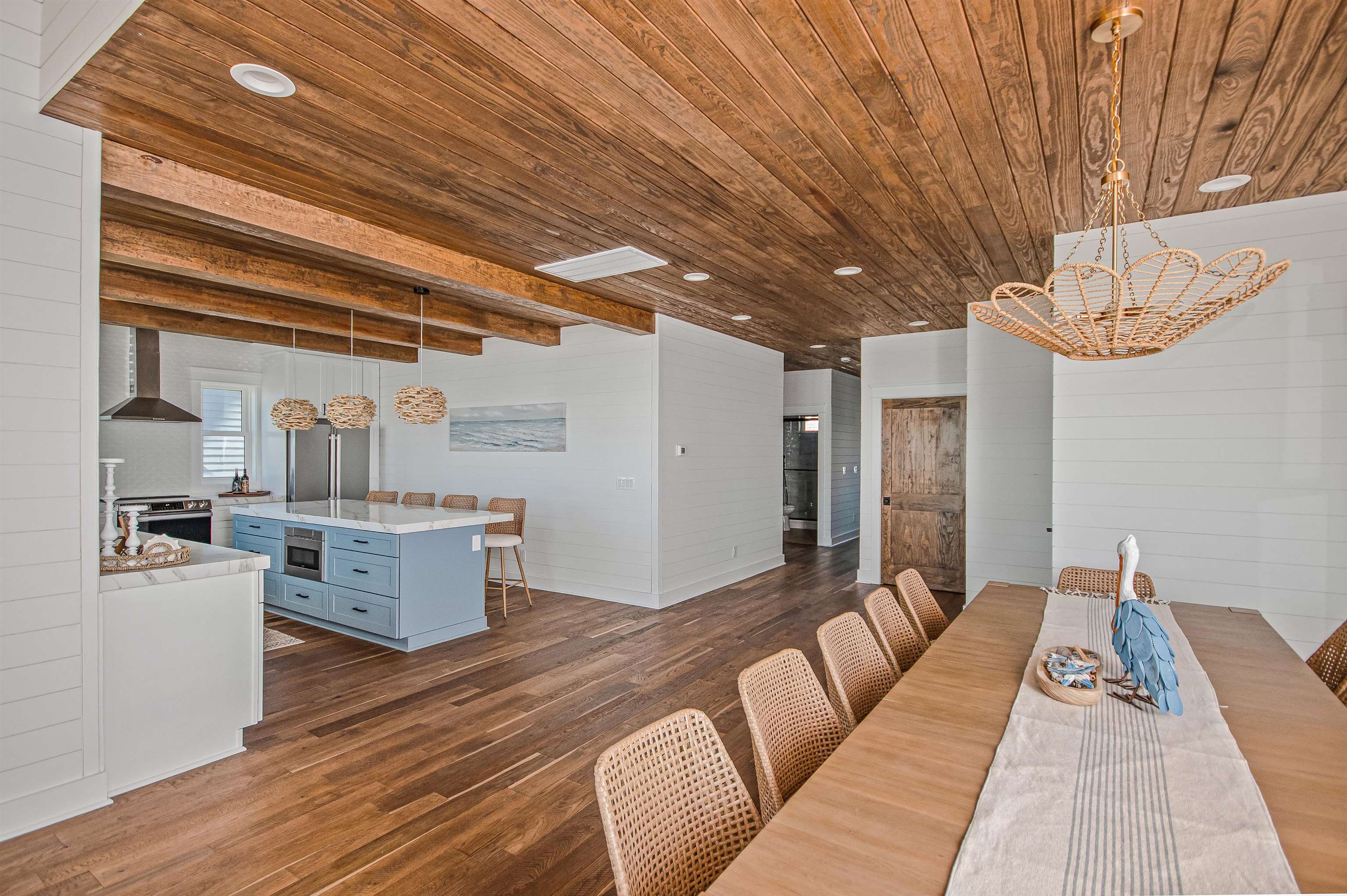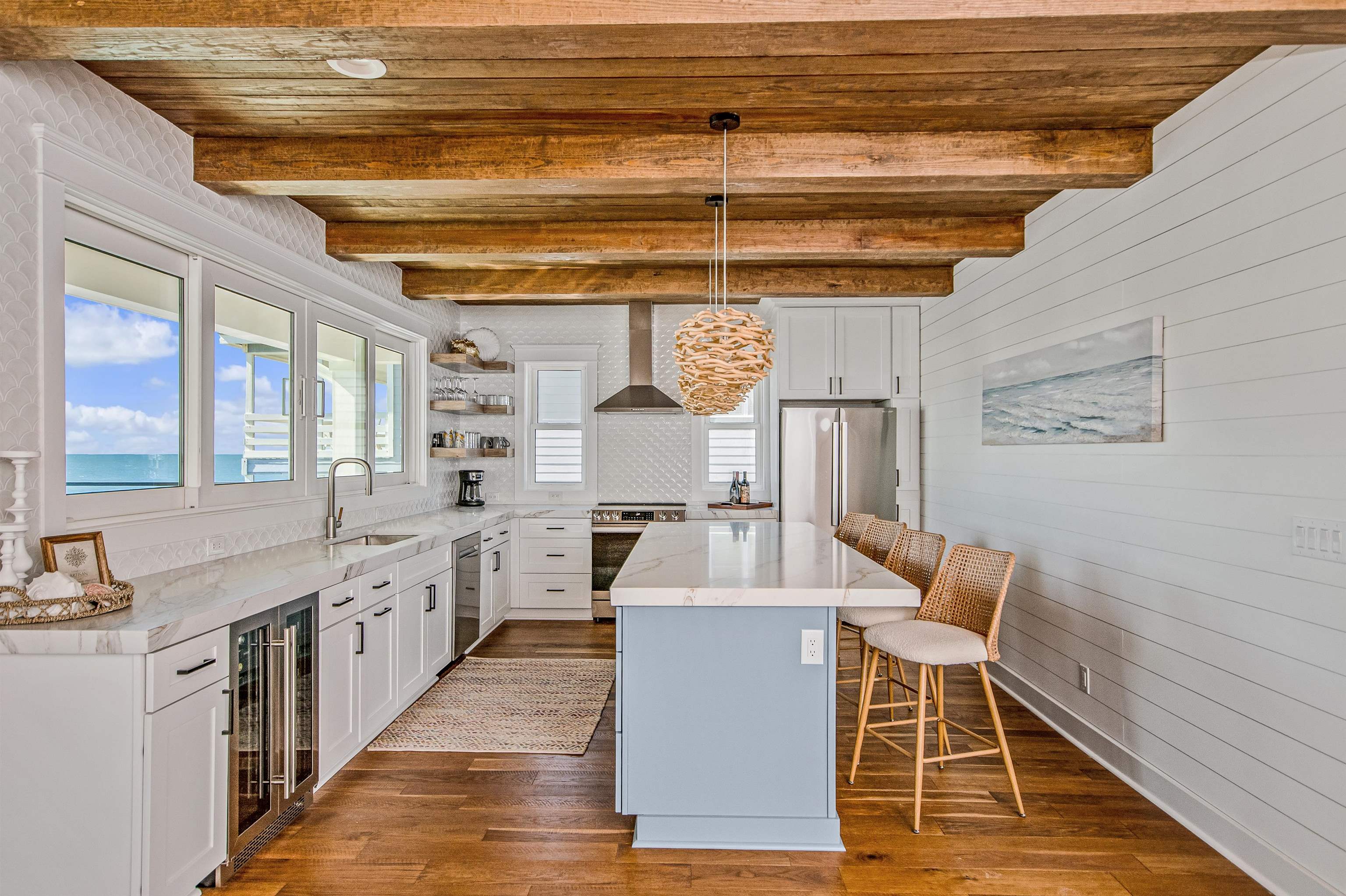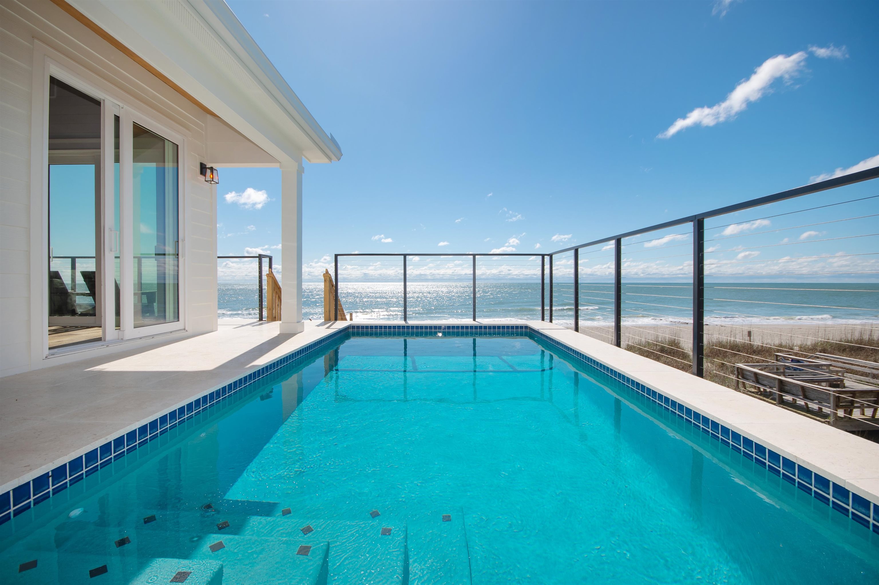 Amazing opportunity for exquisite island living! Located in the charming Birds Nest section on the south end of Pawleys Island, this newly constructed home boasts contemporary charm, stunning oceanfront views, and elevated saltwater pool. Home features include a great room with panoramic ocean view, vaulted wood-inlaid ceiling and electric fireplace, an oceanfront open concept kitchen, beautiful hardwood floors throughout, ocean-side deck with private beach boardwalk, and covered parking. Notably, this raised two-story home comes with a single-level living option. All the common areas, including the screened porch and pool plus two bedrooms and two full baths, are located on the first floor - all accessible by elevator (to first floor only) or by a covered exterior stairway. Four more bedrooms and two baths are located on the top floor. Two bedrooms currently have a king bed in each and enjoy an oceanfront balcony in one and peek-a-boo creek view from the other. In between these bedrooms are mirror-image bathrooms with combination walk-in shower/garden tub - one en suite, one in the hallway. Additional attributes include high impact storm windows, seamless metal roof, concrete fiber siding, central fire alarm control panel, and travertine encased pool with heating option. Home to be sold fully furnished. A shared, right-of-way, gated beach boardwalk with keyless lock is located on the north side of the home. Public creek access is a short walk away. Primary residence or second home with excellent rental potential. No HOA. Myrtle Beach International Airport is 25 miles north. Historic Charleston SC is 75 miles south.