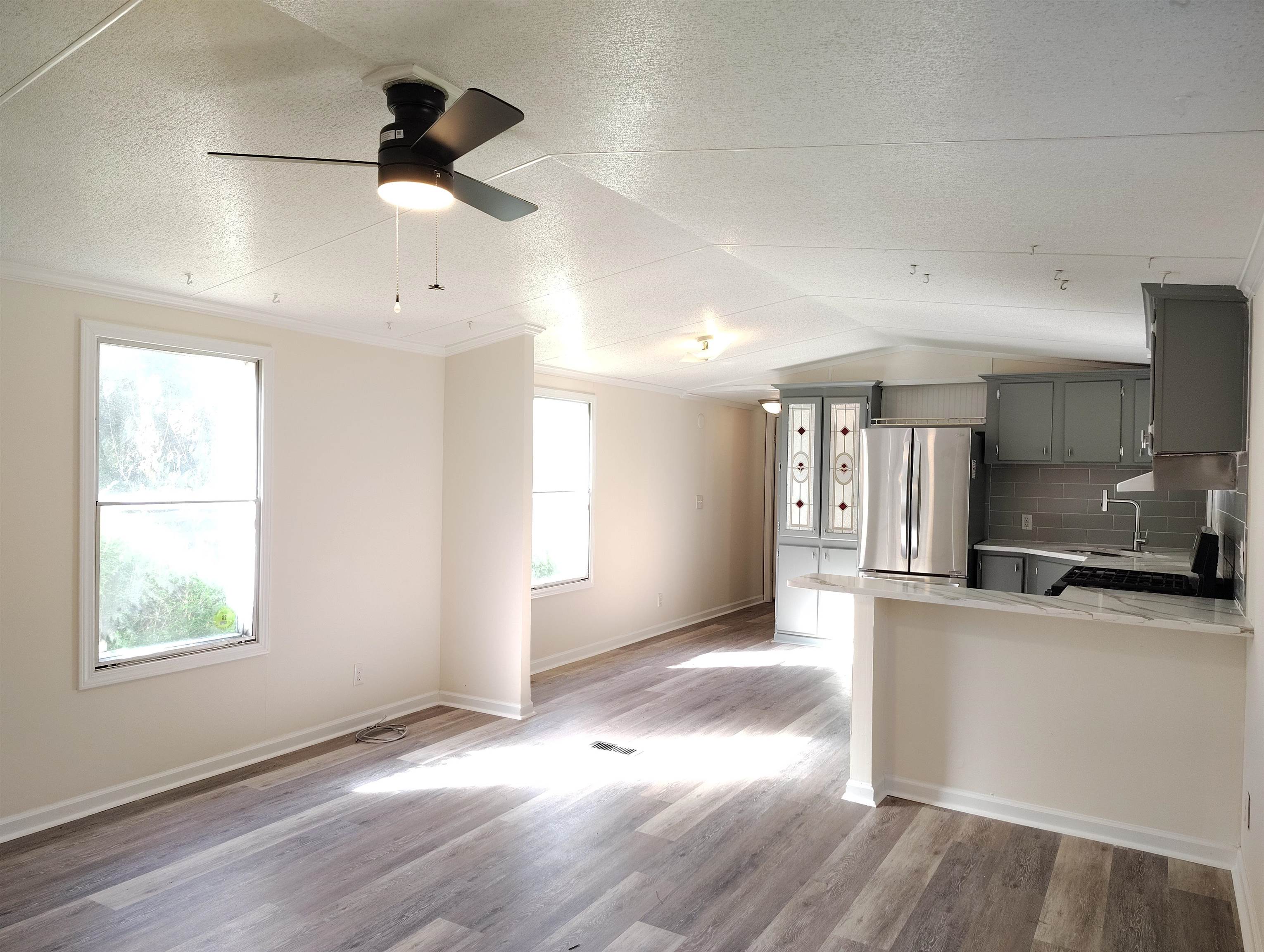 Charming 3 bedroom/2 bathroom single wide mobile home on leased land, in Conway ready for new owners! No HOA! Newly renovated. Kitchen has stainless steel appliances, bathrooms are also newly renovated with beautiful modern touches like tiled shower with smooth pebble flooring. Bedrooms on opposite ends for privacy. New flooring throughout the entire home. New added bedroom and flex room. Enjoy the back patio and screened in back porch outdoor activities. Great starter home! Renovations are still ongoing to make this home even better. Call and set up your showing today!