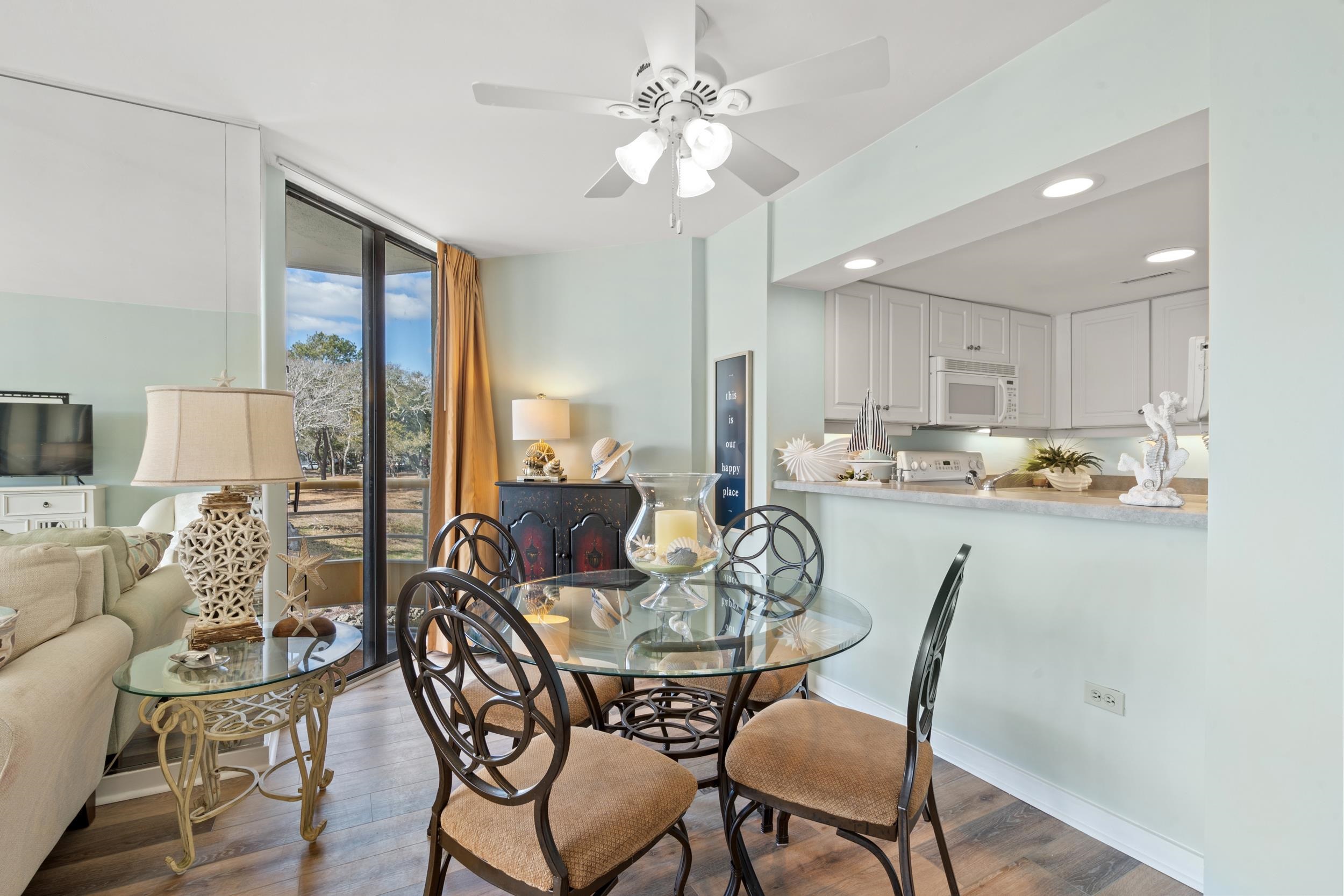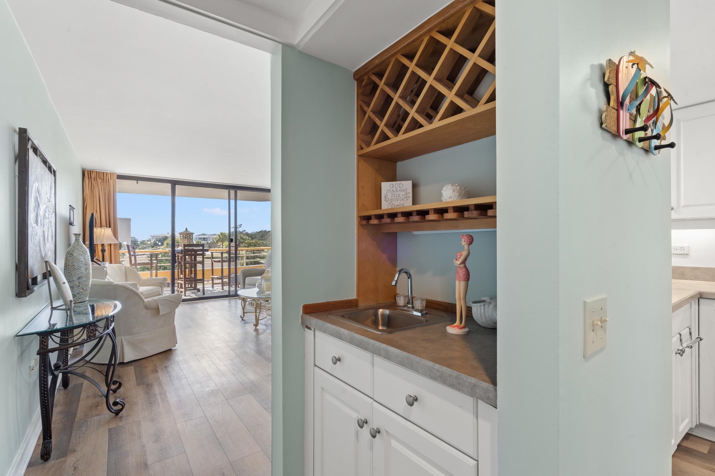 Located at the end of the building, the delightfully large balcony wraps around the condo from the living area sliding doors to the dining area sliding doors. The living area and primary bedroom receive lots of natural light and the balcony has a great southern exposure with views of the ocean, duck pond, paths and beautiful trees. The primary bedroom has two large closets in addition to a small private balcony. This delightful residence has been recently painted throughout and new flooring installed in the bedrooms. Easy to view.