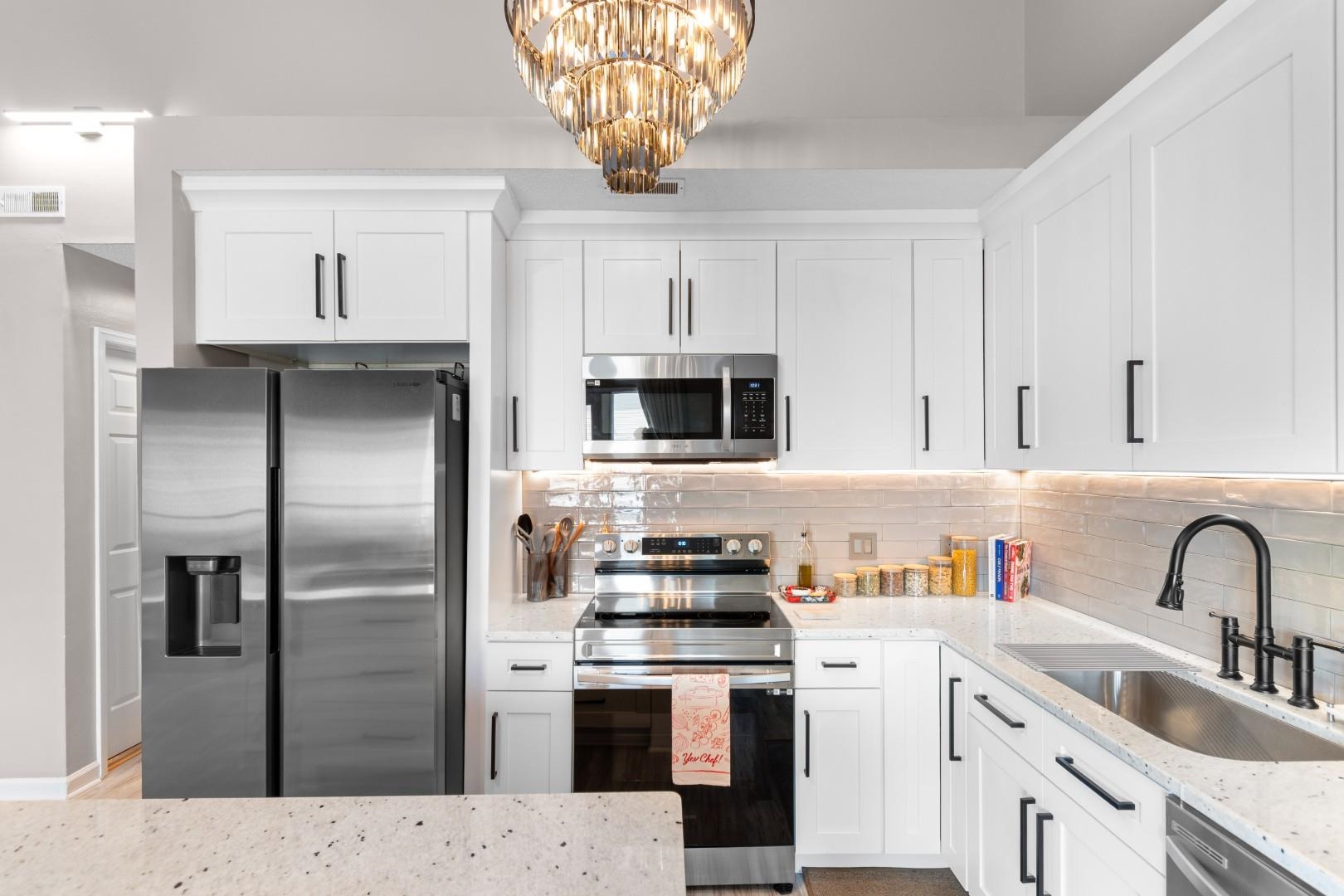Located in the heart of Surfside Beach at Grand Palms Resort, this beautifully updated 3 bedroom, 3 bathroom condo offers a move-in ready coastal retreat with water views from the rear porch. Thoughtfully upgraded and **meticulously** maintained, the home features LVP flooring throughout the main living areas and fresh paint that ties the entire space together. The fully renovated kitchen boasts granite countertops, all new stainless steel appliances, an island perfect for meal prep, stylish backsplash, and new cabinets for ample storage. Each bathroom has been refreshed with new flooring and modern vanities, creating a clean, contemporary feel throughout. A newly replaced HVAC system adds peace of mind and energy efficiency year-round. Upstairs, a spacious bonus living area with an open loft, walk-in closet, and another renovated bathroom offers flexibility for a guest suite, media room, or home office. A custom pantry built under the stairs with shelving and a barn style sliding door maximizes storage and adds a touch of charm. The washer, dryer, and refrigerator all convey, making this an easy turnkey option. Overlooking the water and nestled in a resort-style community, this condo is convenient to shopping, dining, and the airport, and just minutes from the beach, making it an ideal full-time residence, vacation home, or investment property. Schedule your showing today and experience the Grand Palms lifestyle for yourself!