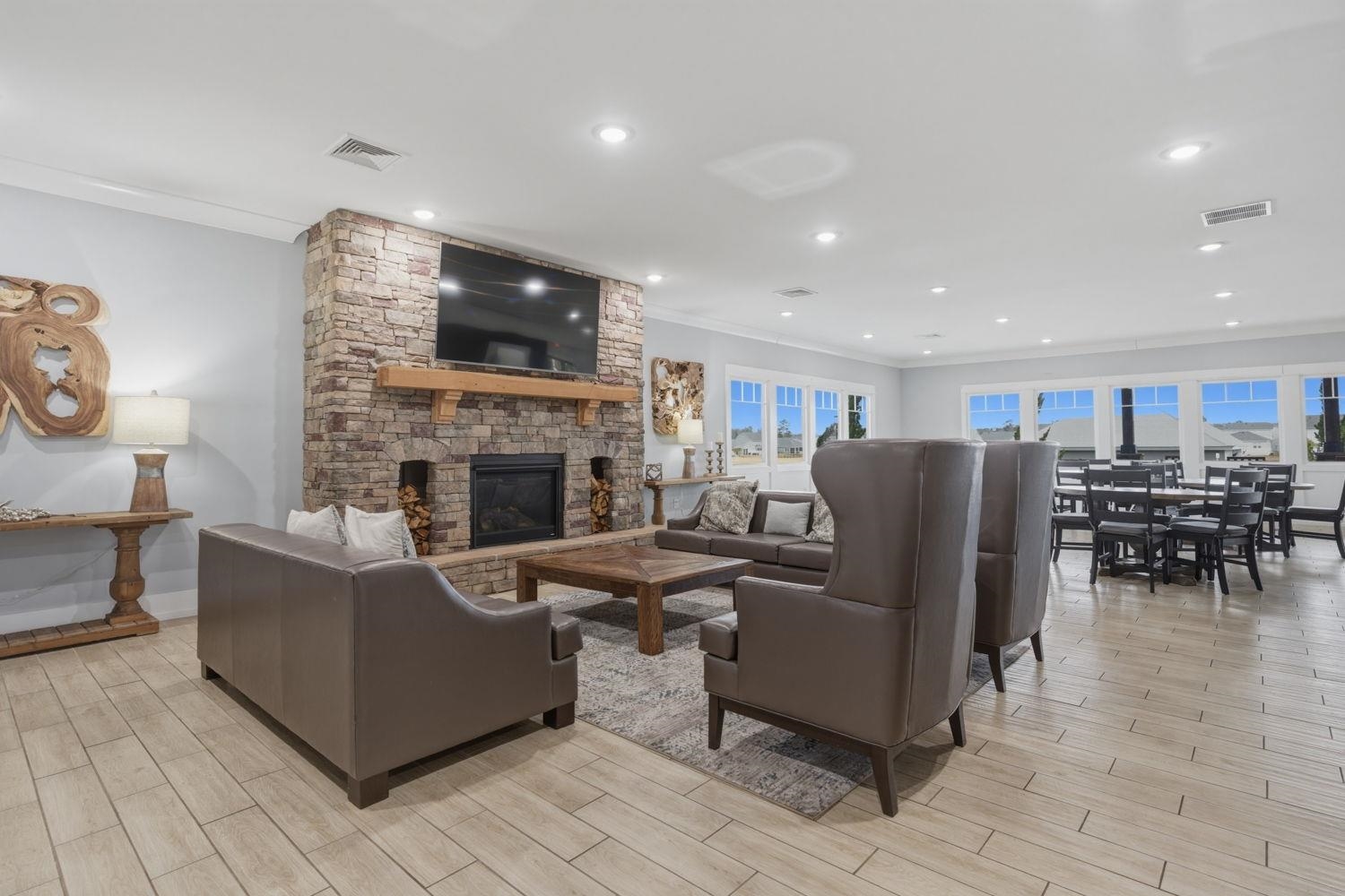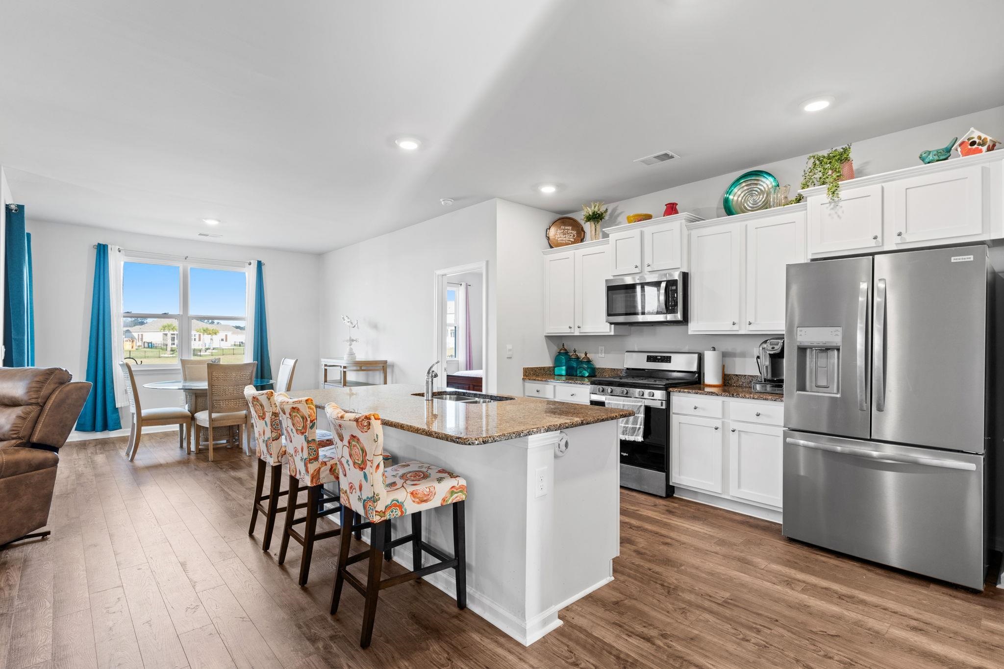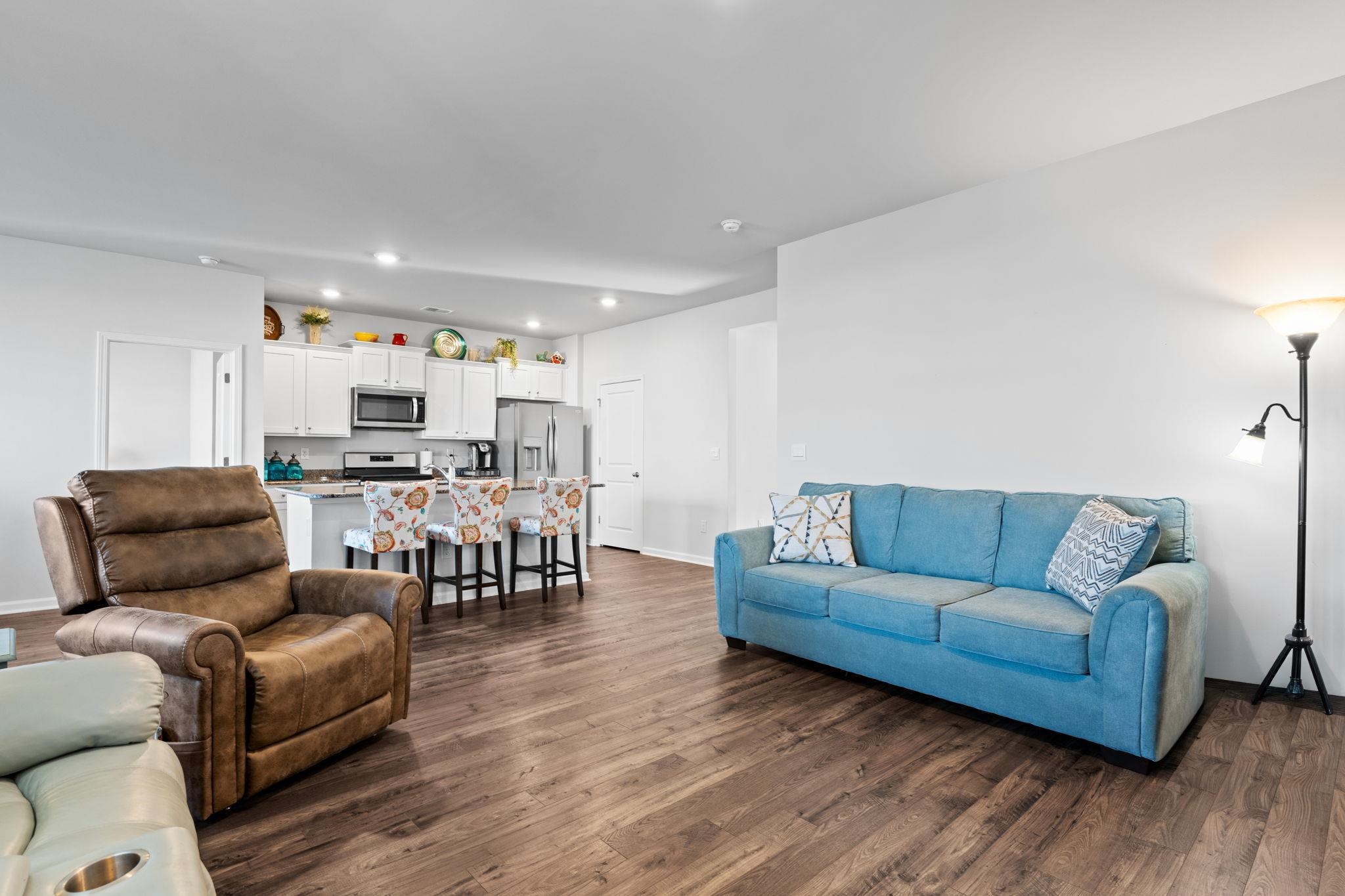 The Aria floor plan offers easy, comfortable living designed to fit every season of life whether youre stepping into homeownership for the first time or looking to simplify with a thoughtfully designed layout. The open living and kitchen area creates a welcoming space thats perfect for hosting friends or enjoying quiet evenings at home. Youll love the stylish finishes, including painted cabinetry, granite countertops, stainless steel appliances, and durable wood-look flooring throughout the main living spaces. Tall ceilings enhance the airy feel, while a spacious pantry provides plenty of storage. The split-bedroom layout offers added privacy, with a serene primary suite tucked away from the secondary bedrooms. Step outside to a covered back porch overlooking a peaceful pond view even better, the yard is fully fenced, making it ideal for pets, play, or simply relaxing and enjoying the scenery. This home is also equipped with smart home technology, allowing you to control features like keyless entry and video doorbell access with ease modern convenience designed to keep up with your lifestyle. Located in a community known for its exceptional amenities, this property truly combines comfort, style, and convenience in one beautiful package.