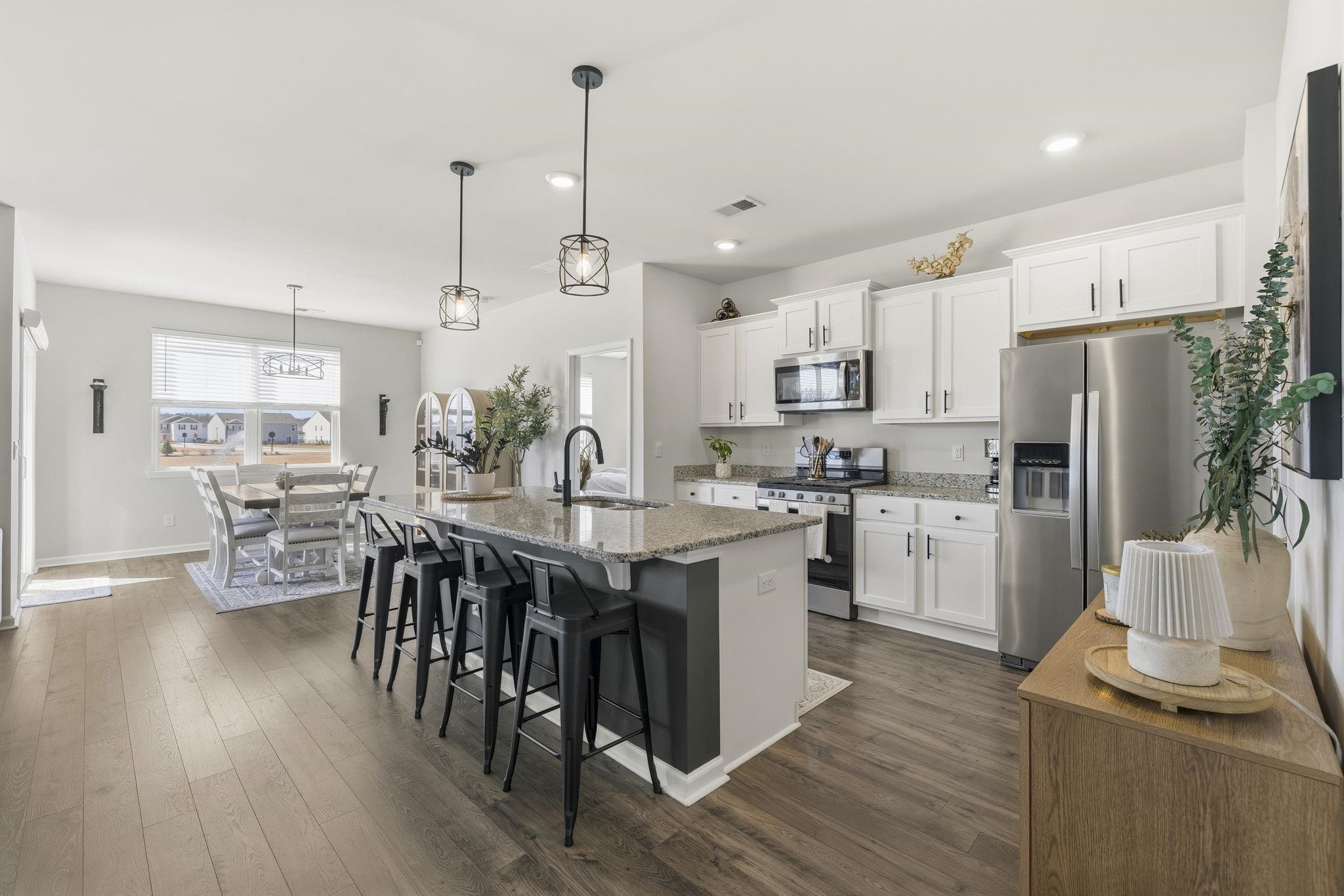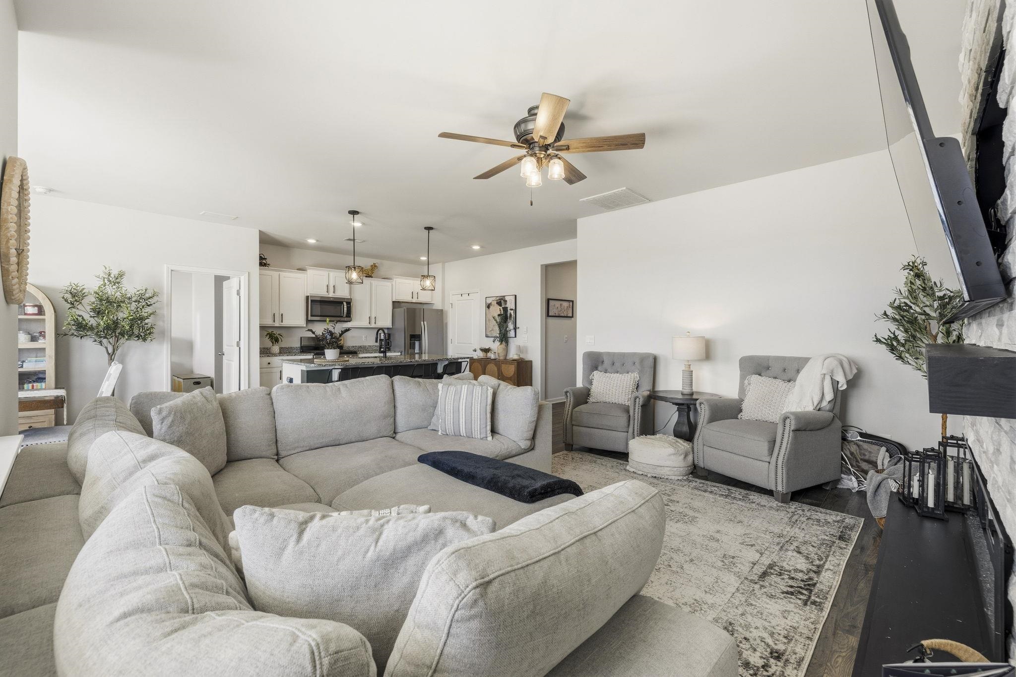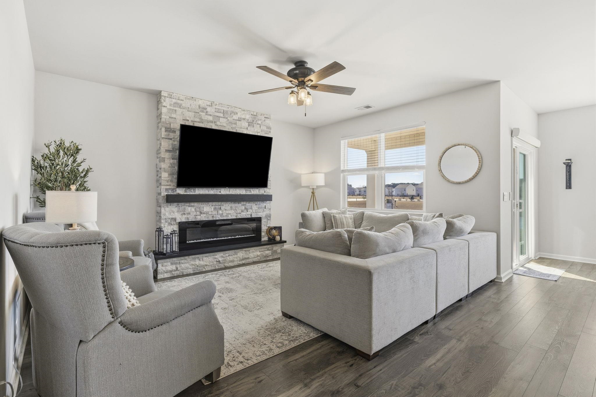 Welcome to this beautifully upgraded 3 bedroom, 2 bath ranch home in the heart of Carolina Forest, located in the Village Oaks community. Situated on a peaceful water lot with a tranquil fountain view and an easement to the left offering additional space and privacy. This popular Aria floor plan offers the perfect combination of modern design, comfort, and thoughtful upgrades. Step inside to an open concept layout featuring 9 foot ceilings and an abundance of windows that flood the home with natural light. The kitchen truly serves as the heart of the home, complete with 36 inch staggered cabinetry, granite countertops, stainless steel appliances, gas cooking, upgraded lighting, and generous prep space. It flows seamlessly into the dining and living areas, creating a warm and inviting space where everyone naturally gathers. This is where memories are made and where you are welcomed home each day. The cozy living area is anchored by a custom electric fireplace, adding warmth and charm. Just off the dining room, the covered rear porch opens to an extended patio overlooking the water, offering peaceful views and effortless indoor-outdoor entertaining. The split bedroom layout provides privacy for the spacious primary suite, while two additional bedrooms offer flexibility for family, guests, or a home office. The secondary bath features a glass shower door for a clean, elevated finish. Additional upgrades include a custom garage door with windows for enhanced curb appeal, upgraded stone landscaping, gutters, a sprinkler system, security system, tankless hot water heater, and an industry leading smart home technology package that allows you to monitor and control your home from anywhere. Located in the center of Carolina Forest, you are just minutes from top rated schools, shopping, dining, and the beach. This home offers not only modern features but a cozy, welcoming layout that has truly been loved and thoughtfully enhanced.
