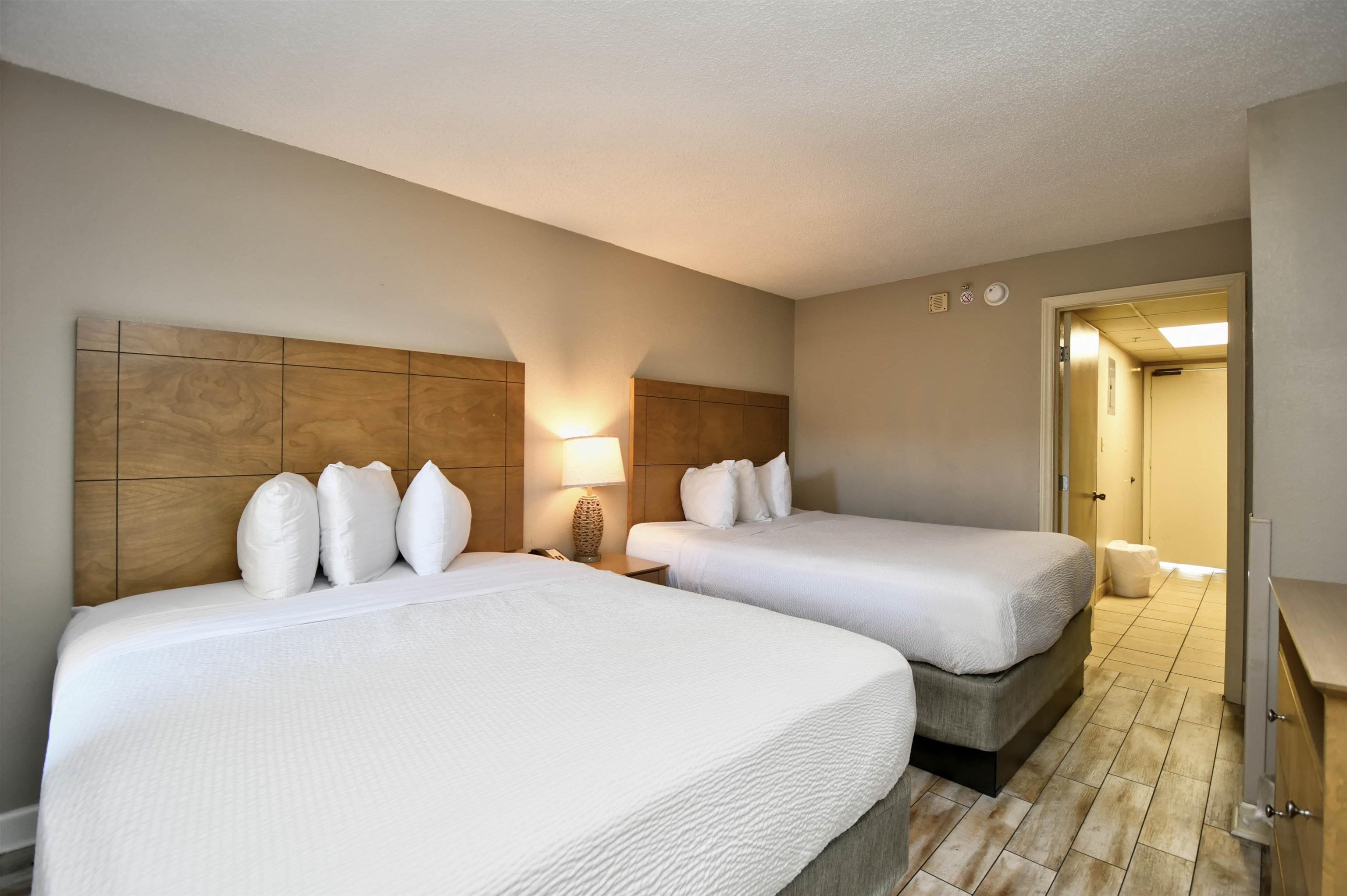 Welcome to your oceanfront retreat at the Landmark Resort! This beautifully updated 1-bedroom, 1-bath condo is designed for the ultimate beachside lifestyle and offers strong potential as both a personal getaway and an income-producing rental. Perfectly situated on the 4th floor, the unit is a prime location with the convenient direct crosswalk access from the parking garage-park on the 3rd floor and walk straight to your door. Inside, every detail has been refreshed with comfort and style in mind. Recent upgrades include two completely brand-new queen beds, a brand-new sleeper sofa, and a matching chair, ensuring plenty of seating and sleeping space for family, friends, or rental guests. The living space also features new wood-look ceramic tile flooring, a Murphy bed for added guest capacity, and tasteful touches like updated lamps, drapes, and cornices. A brand-new AC system provides year-round comfort, while the fully equipped kitchen makes dining- in simple and convenient. Step out onto your private balcony and enjoy panoramic views of the Atlantic Ocean, perfect for morning coffee at sunrise or relaxing evenings with the sound of the waves as your backdrop. Beyond your door, Landmark Resort offers an unmatched lineup of amenities: multiple indoor and outdoor pools, a lazy river, hot tubs, a fitness center, arcade, on-site dining, a coffee shop, and even a gift shop for last-minute essentials. Whether you're seeking a turnkey vacation home or a proven rental property, this oceanfront condo delivers the perfect combination of comfort, convenience, and coastal charm. Your beach life starts here!