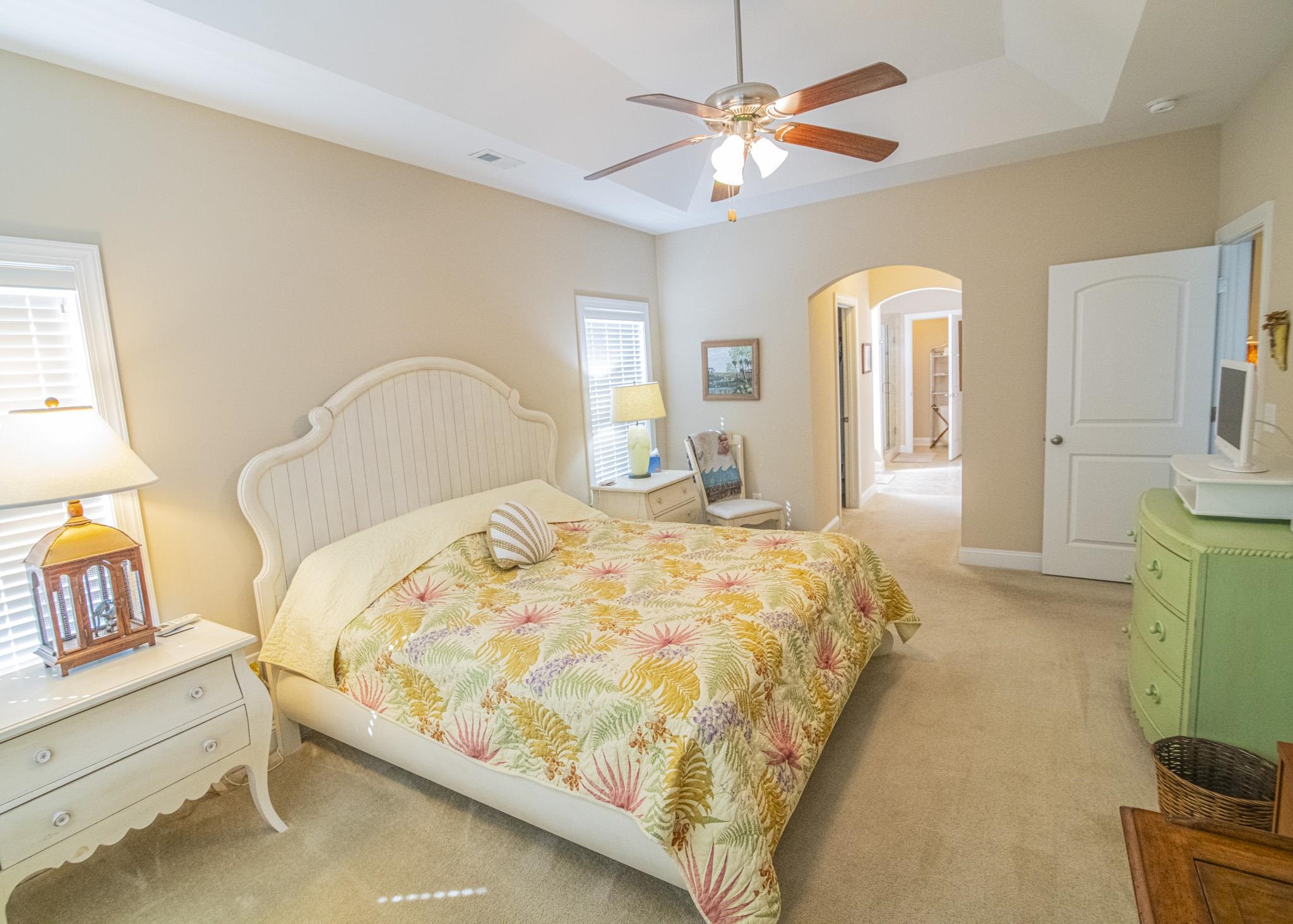 Welcome to this beautifully maintained ranch-style home offering spacious one-level living with exceptional natural light throughout. This 3-bedroom, 2-bath property features an inviting family room complete with a gas-log fireplace and ceiling fan, perfect for cozy evenings at home. A separate dining room with an elegant, coffered ceiling provides an ideal setting for gatherings and entertaining. The kitchen is designed for both functionality and style, showcasing stainless steel appliances, a work island, custom cabinetry, granite countertops, a large pantry, and a dedicated coffee barperfect for morning routines. Just off the main living area, the bright and airy Carolina room provides a relaxing space with abundant windows, a ceiling fan, and views of the backyard. The owners suite is thoughtfully positioned for privacy and includes a tray ceiling, two spacious closets, and an en-suite bath featuring a garden tub, tile shower, double-sink vanity, and generous natural light. The two additional bedrooms are located on the opposite side of the home and include ceiling fans, large closets, and easy access to the second full bath. A large two-car garage leads into a convenient mud room and laundry area. Enjoy outdoor living with a welcoming front porch ideal for sunset watching and two rear concrete patios perfect for morning coffee or quiet relaxation. Monthly HOA dues include trash pick-up, landscape maintenance, and access to community recreational facilities, offering low-maintenance living and excellent amenities. This homes location provides easy access to championship golf courses, dining, shopping, healthcare, and the beacheverything you need to enjoy the best of the area. Filled with comfort, thoughtful details, and natural light throughout, this home is ready to welcome its next owners.