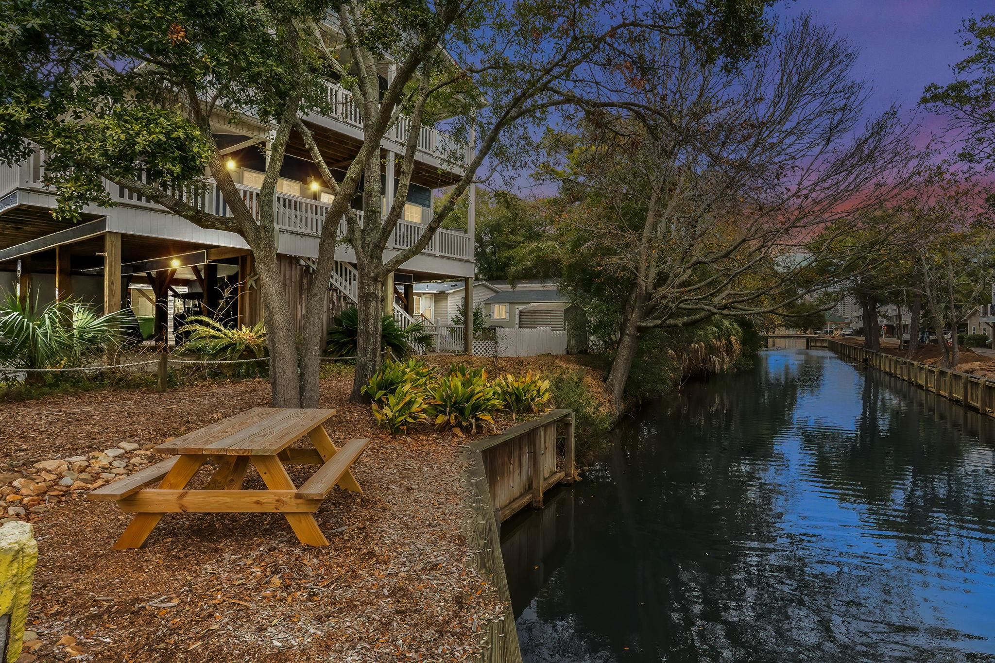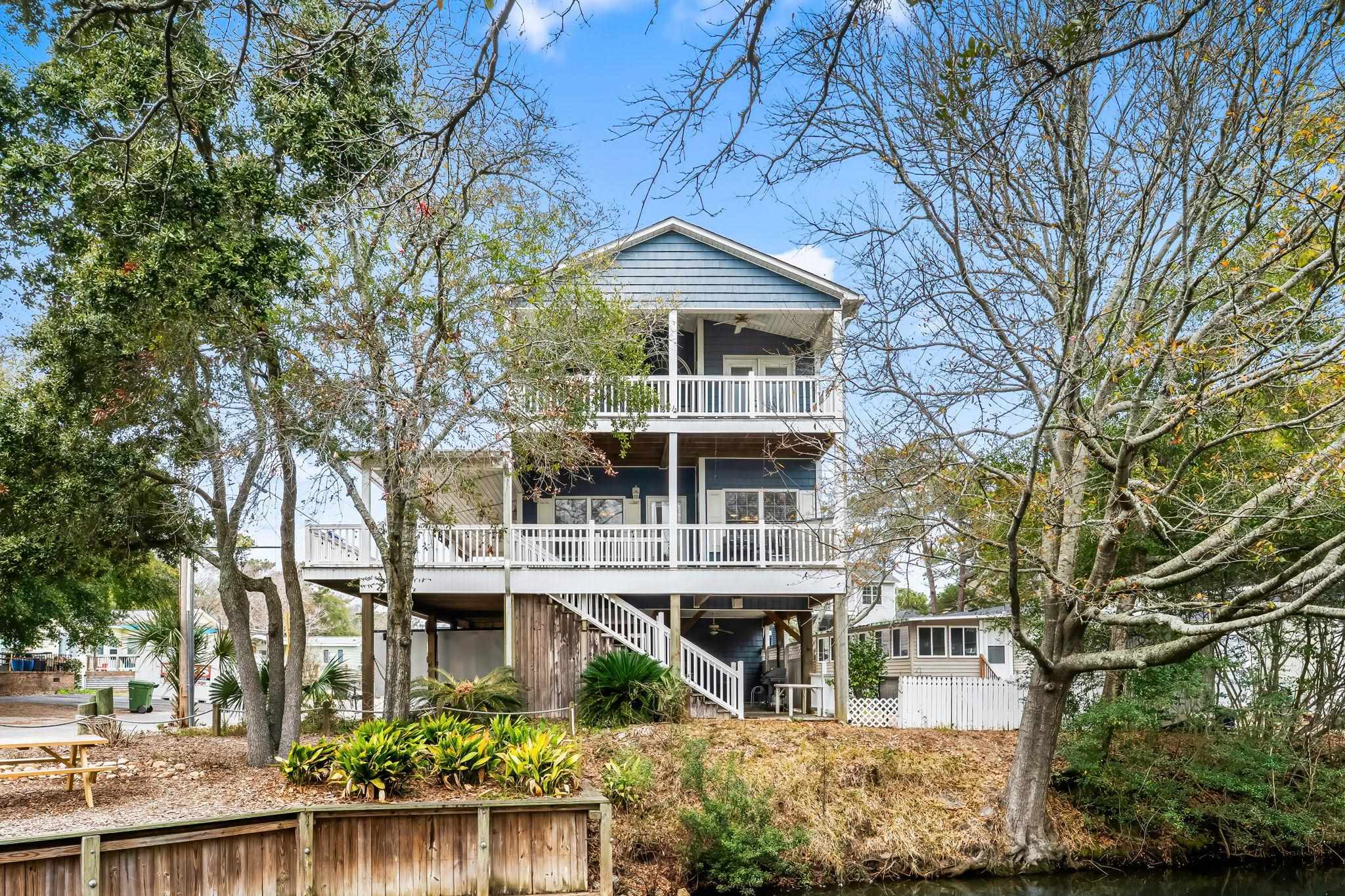 Located in the desirable MH section of Ocean Lakes, site MH28B is a furnished 4-bedroom, 3-bath two-story raised beach house situated on a canal and within walking distance to the beach. This spacious layout offers multiple levels of living, providing flexibility for personal use or rental opportunities. The elevated design allows for covered parking and storage below, while the main living areas are positioned to take advantage of the waterfront setting. The interior features an open living and kitchen area with ample natural light and crown molding throughout the main living spaces. The kitchen includes granite countertops, tile backsplash, stainless steel appliances, and a center island for additional prep space and seating. Well-sized bedrooms and three full bathrooms provide comfortable accommodations for family and guests. Being sold furnished, this property is ready for immediate enjoyment or continued rental use. Canal frontage enhances the outdoor setting while remaining just a short walk to beach access. Located within Ocean Lakes Family Campground, owners and guests enjoy access to the beach, pools, water park, recreational facilities, and year-round activities.