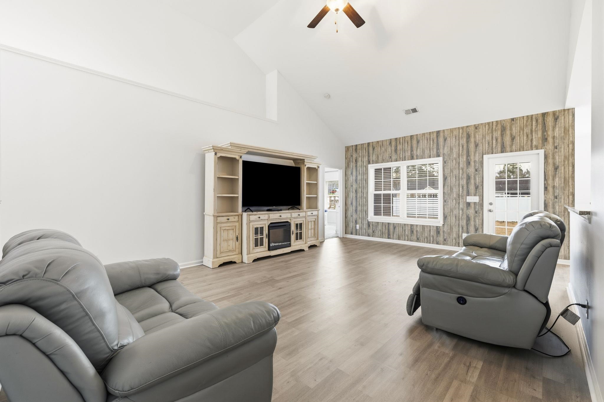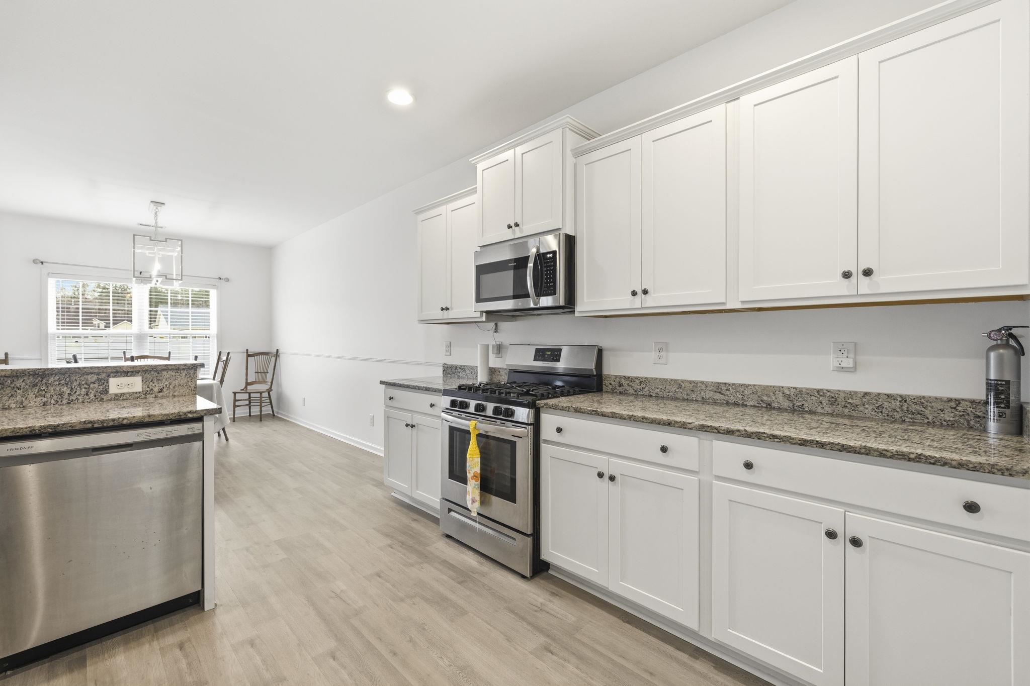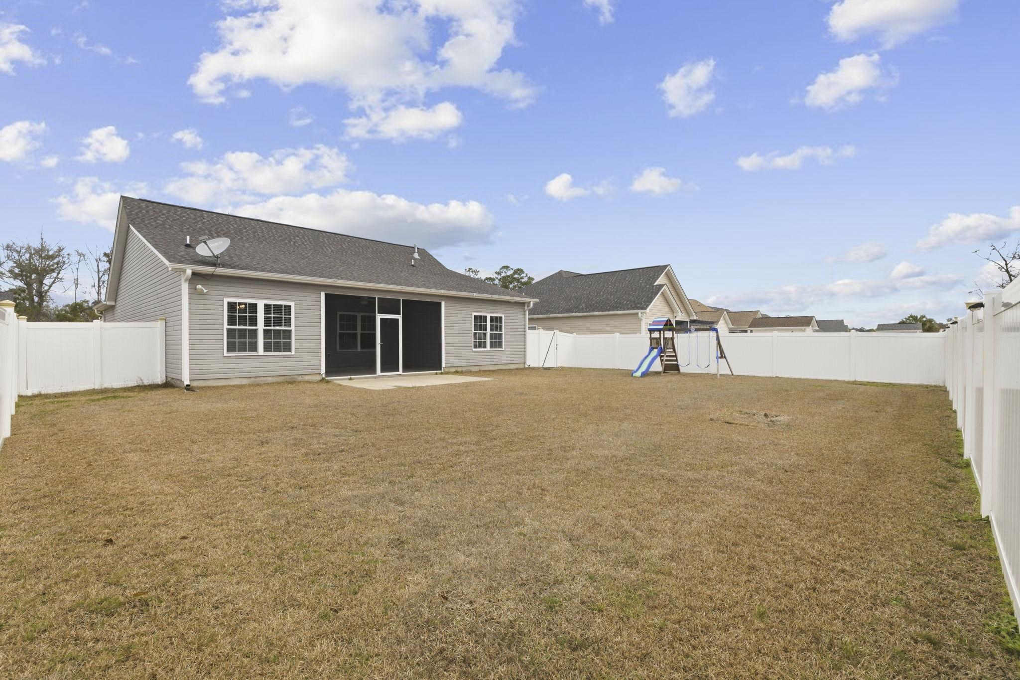 Welcome home to this 4 bedroom, 2 bath home in Barons Bluff North, offering a comfortable layout and space to grow. Step inside to a foyer that brings you to an open and airy living room with vaulted ceilings that create a bright, welcoming feel. The main living areas feature LVP flooring while the bedrooms offer cozy carpet. The kitchen flows easily from the living space and includes granite countertops, stainless steel appliances, a gas stove and oven, a pantry with shelving, and a dedicated dining area, making it easy to gather for weeknight dinners or casual get-togethers. Additional features include a tankless hot water heater and gas heat for added efficiency and comfort. The primary suite is conveniently located on the first floor and features tray ceilings, along with an ensuite bath complete with a walk-in shower. Two additional bedrooms on the main level share a full bath, offering practical space for family, guests, or a home office. Upstairs leads to the fourth bedroom that can flex to fit your needs- playroom, media room, hobby space, or quiet retreat. A separate laundry room with hookups adds convenience, and the attached two-car garage provides additional storage and functionality. Out back, enjoy a screened-in porch that opens to an extended patio and a fenced yard that includes swing set, perfect for pets, kids, or simply relaxing outdoors. Barons Bluff is a beautiful community featuring lakes, street lighting, sidewalks, a pool, and a cabana area while offering both charm and everyday convenience. Residents of Barons Bluff North enjoy convenient proximity to Highway 90 for an easy commute, and is just about 20-25 minutes from the beautiful beaches of Myrtle Beach. This home offers space, character, and the opportunity to make it your own in a neighborhood many buyers love. If youre looking for a solid home with room to personalize and grow, this is the one! Photo (1) edited to remove car from driveway and photo (31) digitally staged to show new flooring that will be added soon.