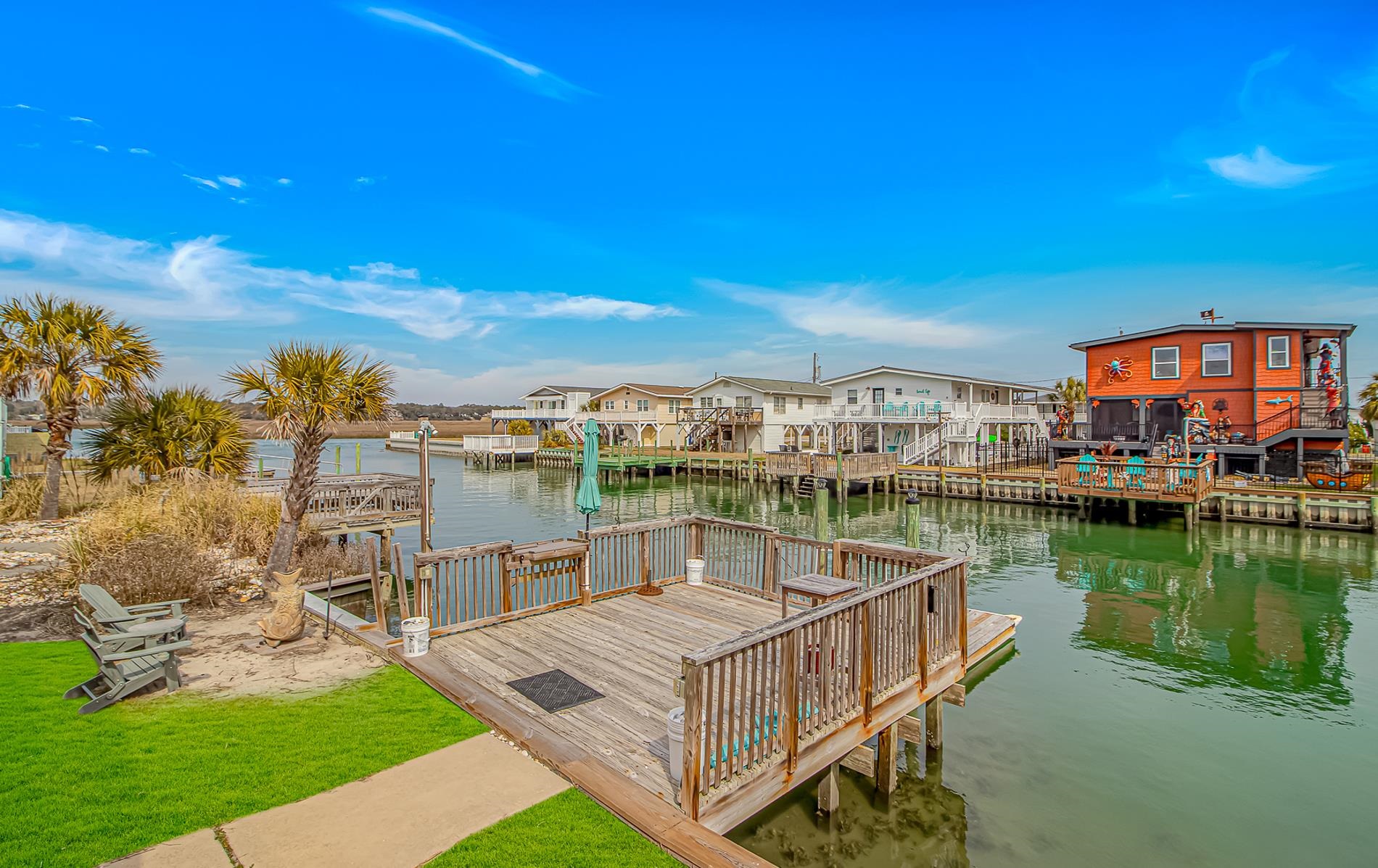 Newly renovated raised beach house located in the highly desirable Cherry Grove area of North Myrtle Beach. Situated on a channel with direct access to House Creek and just one block from the beach with public beach access nearby. This 4 bedroom, 3.5 bathroom home has been thoughtfully updated and is move-in ready. Recent improvements include new concrete fiber siding, fresh interior paint, new decking, updated exterior concrete, and new furnishings. The open living and dining areas provide comfortable space for entertaining and everyday living. Enjoy outdoor coastal living with both a stationary dock and floating dock, offering convenient water access, along with a private hot tub overlooking the channel. Elevated construction provides ample parking and storage underneath. Ideal as a primary residence, second home, or investment property. Prime location close to beach access, boating, dining, shopping, and entertainment in North Myrtle Beach.