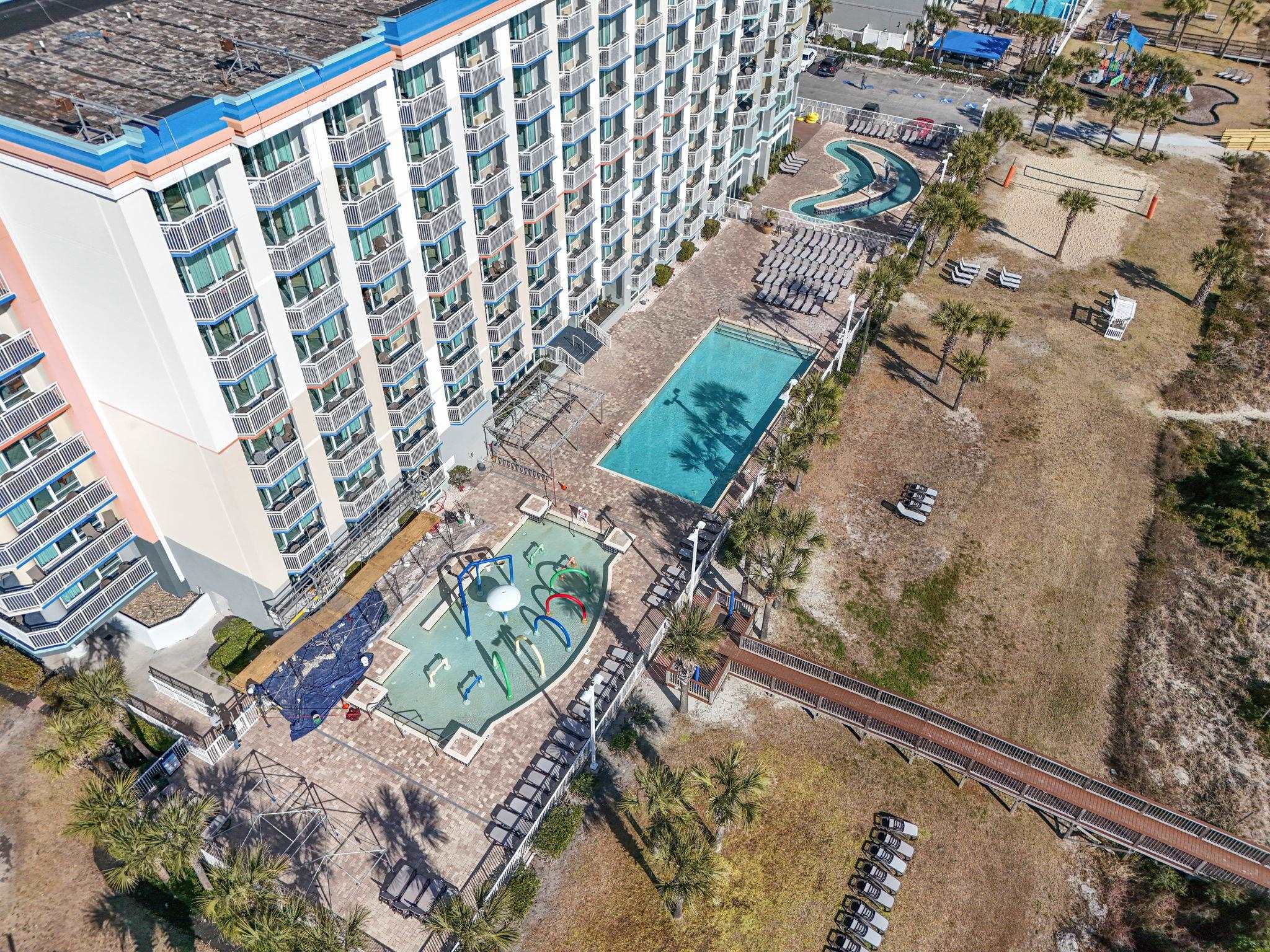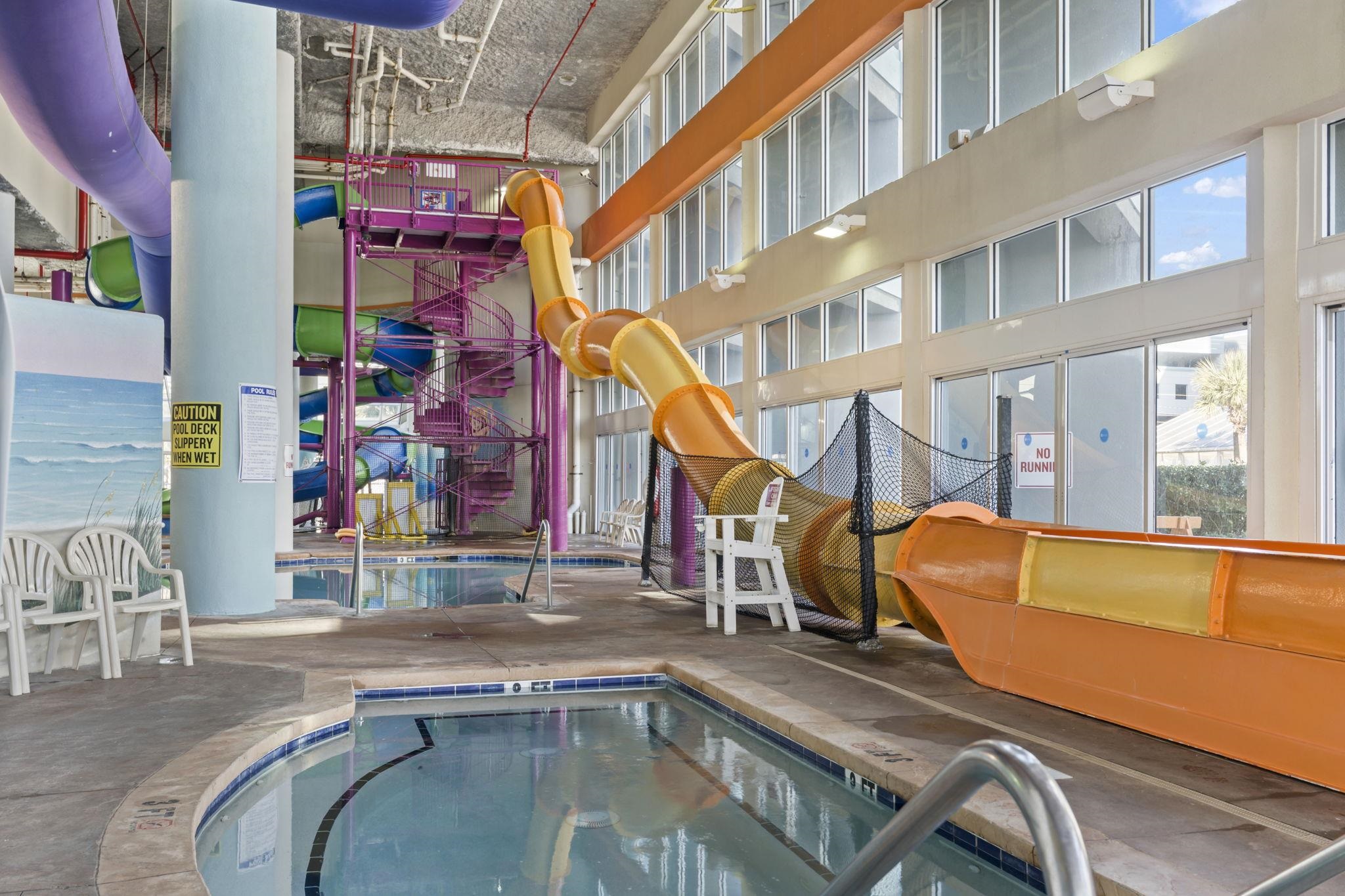 Located in the highly desirable Golden Mile section of Myrtle Beach, this spacious and beautifully appointed 2-bedroom, 2-bath ocean view condo in the award-winning Dunes Village Resort offers the perfect blend of coastal living and strong investment potential. The unit features an oversized wrap-around balcony with three access points - two from the large living room and one from the primary suite - showcasing stunning ocean and city views, along with floor-to-ceiling windows that fill the living area and primary bedroom with natural light. Designed to comfortably sleep eight, the condo includes a king bed in the primary suite, two queen beds in the guest room, and a queen sleeper sofa in the living room. The full kitchen is equipped with granite countertops, full-size stove, microwave, dishwasher, garbage disposal, and ample cabinetry, and the unit also includes an in-unit washer and dryer. Dunes Village Resort offers extensive year-round amenities including two indoor heated water parks with pools, hot tubs, lazy rivers, water slides, and sport pools, as well as outdoor pools, hot tubs, lazy river, fitness center, on-site spa, restaurants, bar/lounge, coffee bar, tennis and basketball courts, beach volleyball, playground, seasonal kids club, and secured gated parking garage. This property has a strong rental history! Conveniently located just minutes from Myrtle Beach International Airport, Broadway at the Beach, Barefoot Landing, Market Common, Myrtle Beach State Park, Coastal Grande Mall, Tanger Outlets, Coastal Carolina University, golf courses, dining, shopping, entertainment, marinas, and public docks, and approximately 90 miles from Charleston, SC. Schedule your showing today.