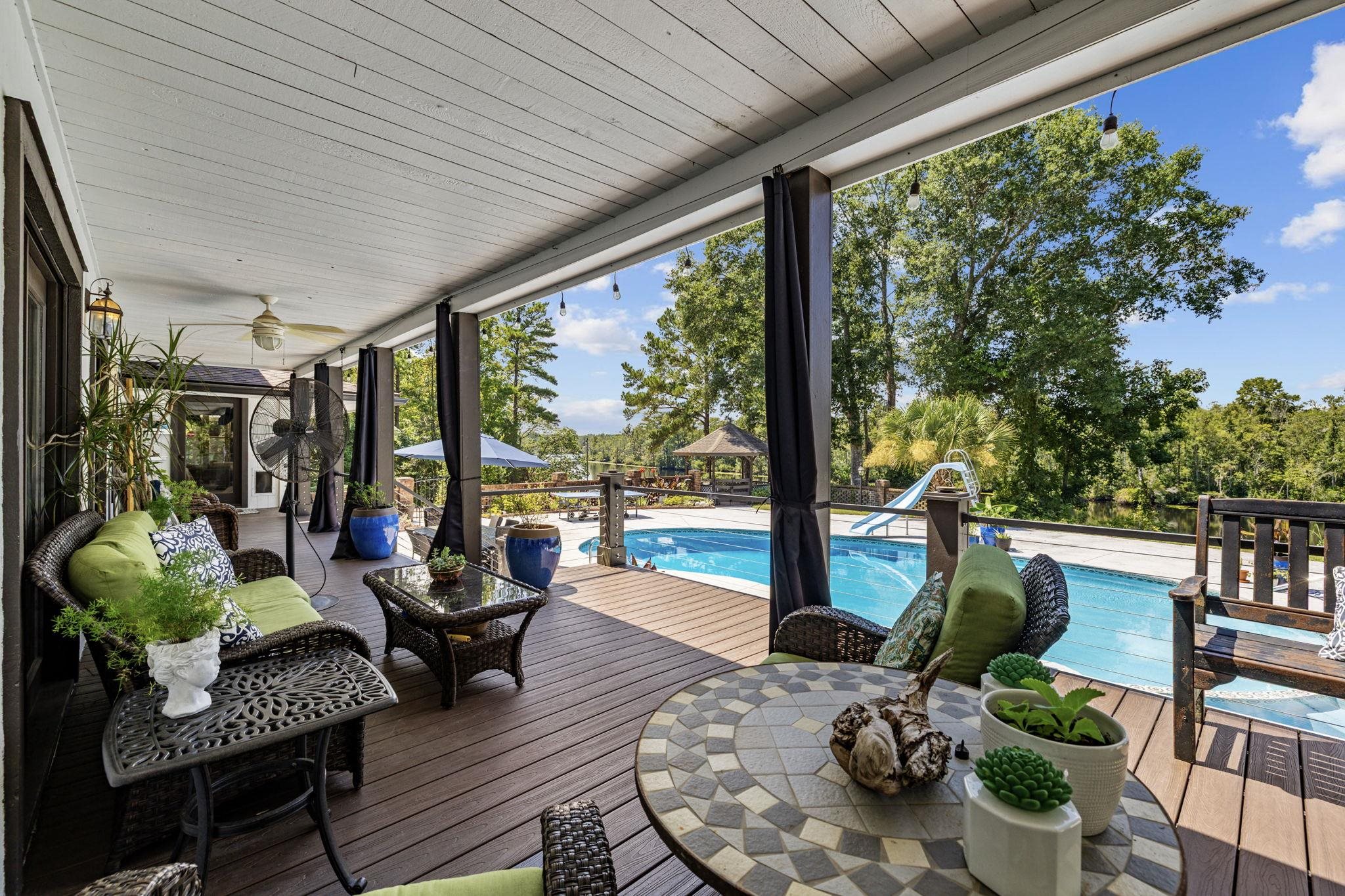 Welcome to Black River Retreat, where timeless design meets modern luxury. Inspired by Frank Lloyd Wrights architectural vision, this extraordinary 8,200 sq. ft. residence sits high on a bluff overlooking the tranquil Black River, with direct access to the Intracoastal Waterway and the Atlantic Ocean. Perfectly positioned on a private two-acre estate, the home has been renovated from top to bottom, with a new roof, whole-house interior and exterior paint, new gutters, and all new flooring throughout- LVP and hardwood in the main areas and carpet in bedrooms. A charming circular driveway welcomes you through the iron gates, leading to the steps of a custom front door and into the grand foyer. Moving into the home, the soaring living room features large windows capturing breathtaking water views, along with newly added columns and a cozy propane fireplace. The state-of-the-art kitchen is a chefs dream, fully reimagined with new tile floors, an oversized gas range with 11 burners, a double oven, new cabinets, a spacious island with granite countertops, custom tile backsplash, under-cabinet lighting, and top of the line stainless steel appliances. This kitchen truly shines with new lighting and fans, and a kitchen and dining room of this caliber can effortlessly accommodate holiday feasts, dinner parties, or casual weekends by the river. The primary suite has been transformed with new LVP flooring, a new custom walk-in closet, new barn doors, and abundant natural light. Its luxurious ensuite boasts dual vanities, a spa-like freestanding tub, and a custom tile shower. Two additional first-floor bedrooms share a Jack-and-Jill bath, while four more bedrooms upstairs provide space for family and guests. A dramatic centerpiece of the home, the custom staircase makes a striking architectural statement. With dual entries, elegant wood railings, and soft carpet inlays, it gracefully connects the main level to the private quarters above. The open design allows light to flow seamlessly throughout the foyer and dining areas, creating a sense of grandeur while still feeling warm and inviting. The third-floor 22x24 retreat offers endless potential as a recreation room, studio, or extra storage. The homes extensive updates include first and second floor porches that were rebuilt with a new foundation and resurfaces with Trex decking, new concrete-wrapped structural columns, and sleek cable railings with aluminum top rails. Additional upgrades include a new whole-house water filtration system, tankless hot water heater, and 250-gallon propane tank. Three bathrooms have been completely remodeled, while the other 1.5 bathrooms have received upgrades. The homes exterior showcases timeless cedar siding for natural beauty and durability. Outdoor living here is truly unmatched! The saltwater pool has been completely resurfaced, upgraded, and surrounded by inviting spaces for relaxation. A brand-new walkway leads to the river, where a new floating dock, additional fishing dock, and private gazebo provide endless opportunities to enjoy the water. A new 12x16 shed with large custom smoker adds function, while the expansive grounds offer both privacy and recreation while combining craftsmanship and riverfront serenity. From its modern upgrades and breathtaking setting, this residence represents the ultimate blend of luxury, comfort, and waterfront living. Click on the unbranded video tour link above to view all 137 photos. See the 2nd Unbranded Virtual Tour for a stunning video tour of this property!