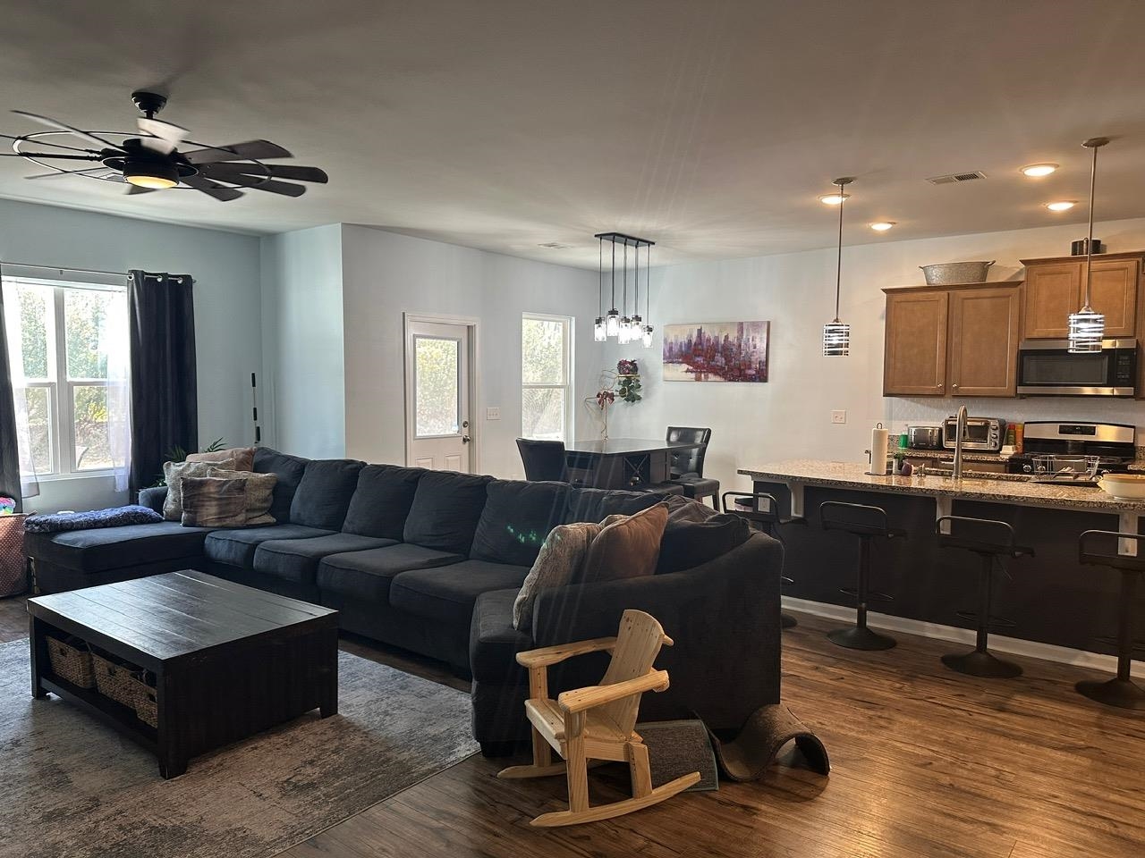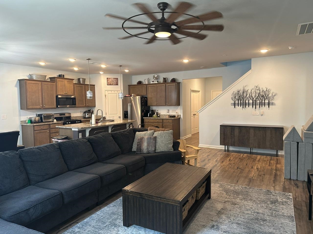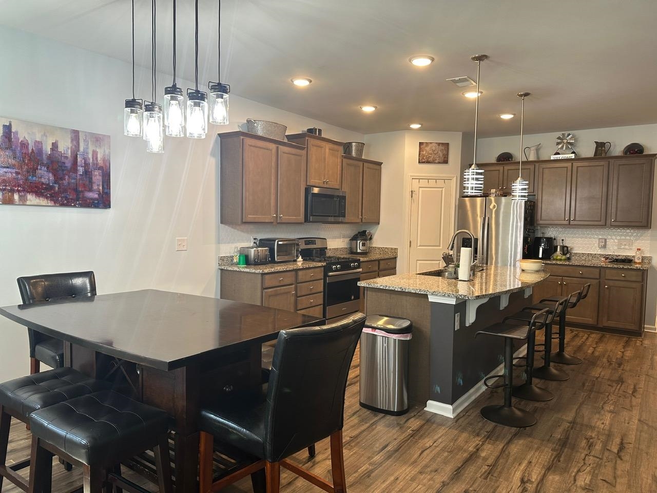 Welcome to this beautifully designed 4-bedroom, 3.5-bath home located in the desirable Clear Pond at Myrtle Beach National community in Carolina Forest. Built in 2020. Featuring the popular Hartwell floor plan, this spacious residence offers approximately 2,452 heated square feet with a functional layout ideal for both everyday living and entertaining. The open-concept main level showcases a well-appointed kitchen with a large granite island, stainless steel appliances, corner pantry, and abundant cabinet space, flowing seamlessly into the main living and dining areas. The owners suite, study, and laundry room are conveniently located on the first floor, providing comfort and flexibility for modern lifestyles. Enjoy the screened-in porch and the back yard that backs up to the woods. Upstairs, youll find three additional bedrooms, a versatile loft area, and 2 bathroomsperfect for guests, family, or a media/play space. Situated in a tucked-away section of the community, residents enjoy access to resort-style amenities including swimming pools, clubhouse, fitness center, playground, walking paths, and scenic green spaces. Conveniently located near shopping, dining, medical facilities, Coastal Carolina University, and just a short drive to the beaches of the Grand Strand. A wonderful opportunity to enjoy comfort, community, and coastal convenience in one of Myrtle Beachs most sought-after neighborhoods.