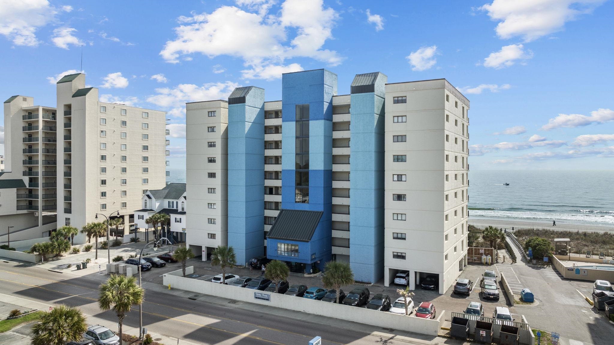 Welcome home to your oceanfront gem at Water Pointe I, a beautifully maintained 3-bedroom, 2-bath second-floor end unit in the coveted Windy Hill section of North Myrtle Beach. Fully furnished and move-in ready, this coastal retreat features brand new LVP flooring, fresh paint throughout, and new window blinds, creating a bright and updated feel from the moment you step inside. In the heart of the home you'll find the kitchen that offers plenty of cabinetry, a brand-new stove and dishwasher, and a washer and dryer that convey, making everyday living and guest stays effortless. The spacious living room opens through sliding glass doors to your private oceanfront balcony, the perfect spot to enjoy morning coffee or unwind with the sound of the waves. The thoughtful layout includes comfortable bedrooms and a convenient Jack-and-Jill bathroom, while the primary suite features its own ensuite bath complete with a new toilet, vanity, and light fixture. Tile flooring in both bathrooms adds durability and coastal style. An additional private balcony storage area provides ideal space for beach gear and outdoor essentials. Residents of Water Pointe I enjoy resort-style amenities including an indoor pool, outdoor pool, hot tub, and direct beach access just steps away. Located close to Barefoot Landing, golf courses, dining, and entertainment, this property is ideal as a primary residence, second home, or investment opportunity, book your showing today!