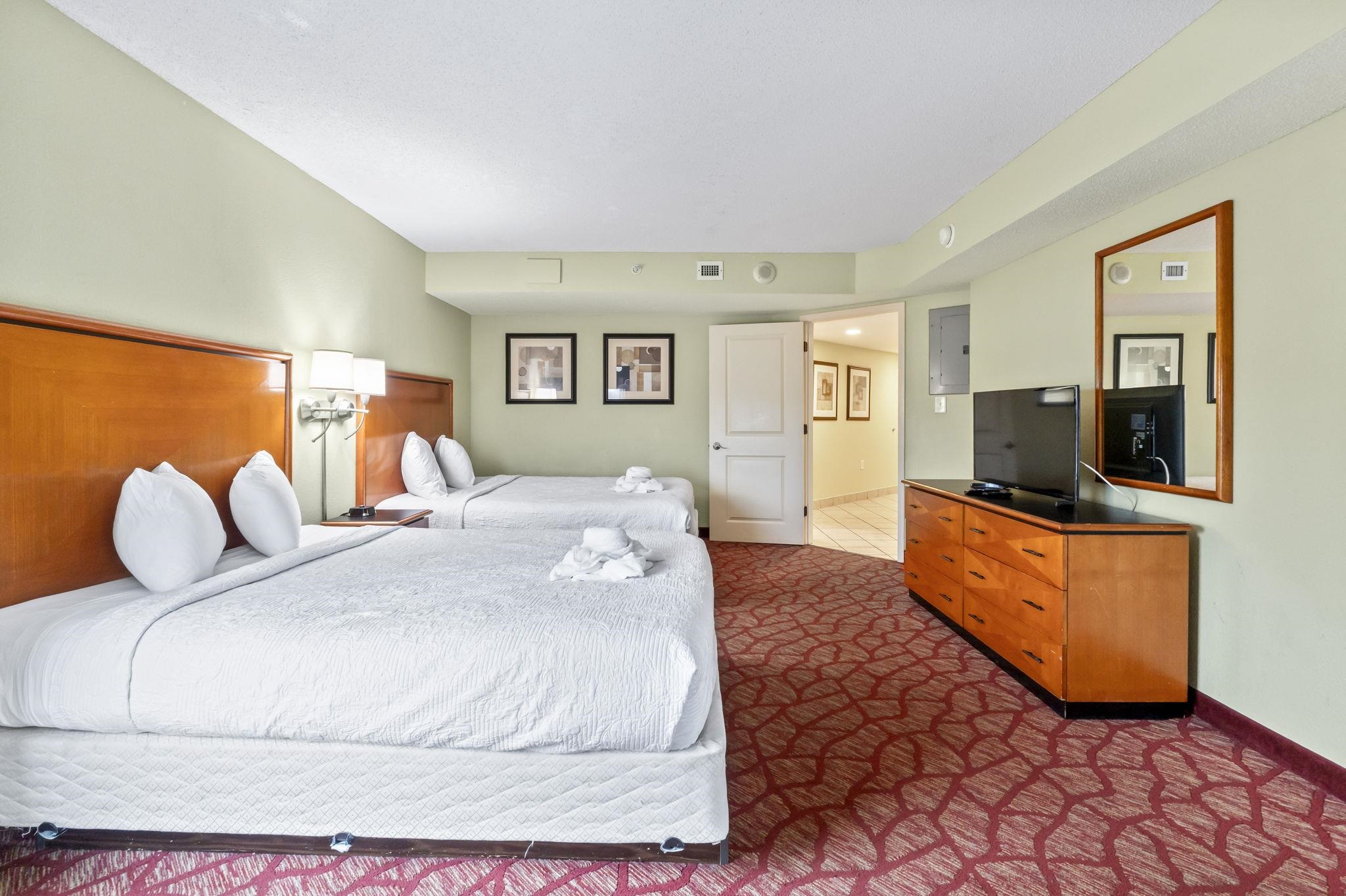 Experience the pinnacle of Myrtle Beach living in this stunning one-bedroom corner condo at Bay View Resort! This rare corner end unit features two private balconies, offering a front-row seat to golden sunrises and vibrant seasonal fireworks. Designed for comfort and versatility, the spacious layout comfortably accommodates up to six guests and features a full kitchen equipped with full-sized appliances and a convenient in-unit washer and dryer. Beyond your front door, you can indulge in luxurious amenities including a heated lazy river, indoor and outdoor pools, and the ultimate morning convenience of an on-site Starbucks. Located directly on the Boardwalk, you are mere steps away from world-class dining and entertainment, making this the perfect choice for a sophisticated personal sanctuary or a high-performing coastal retreat.